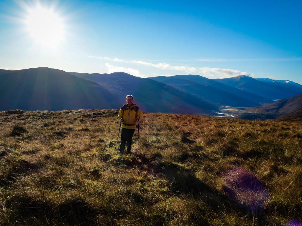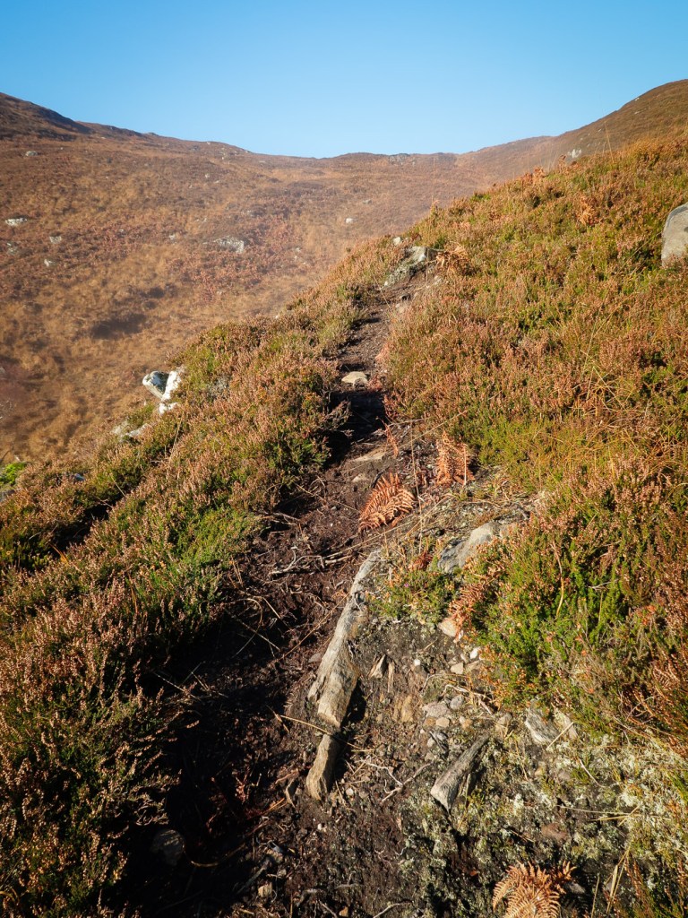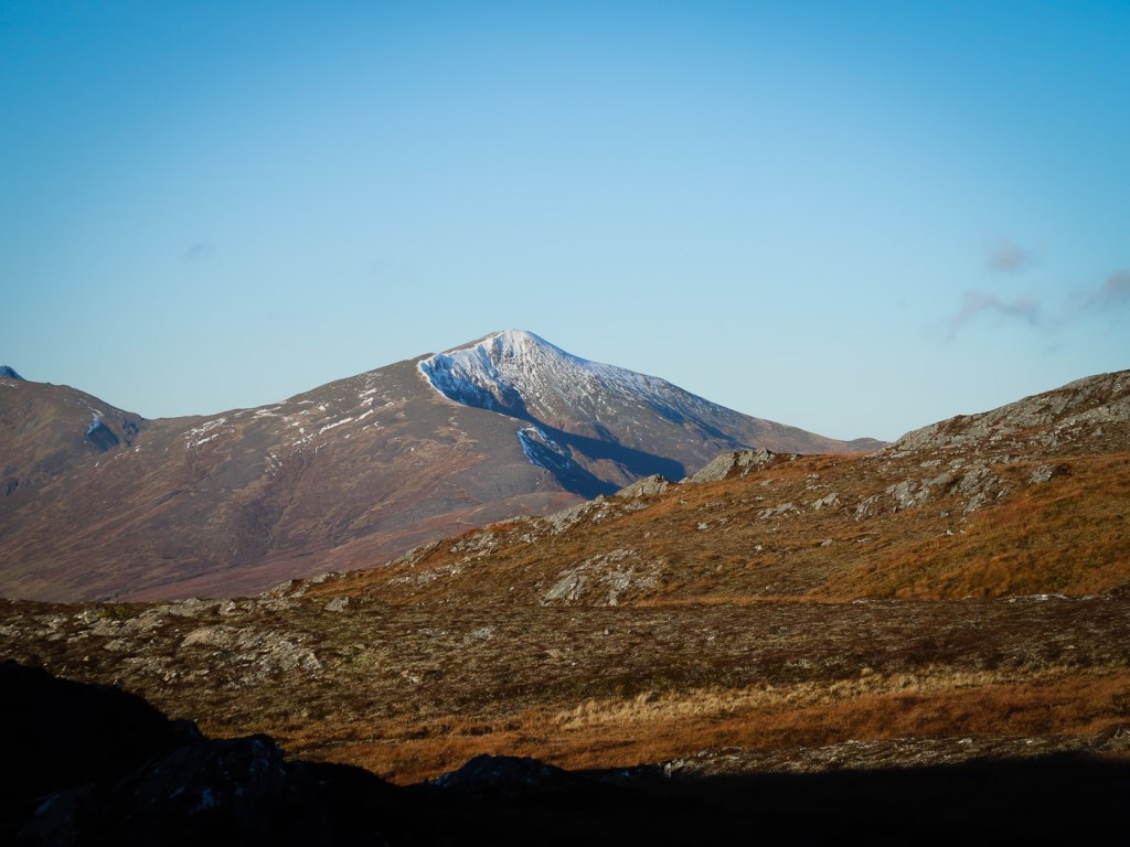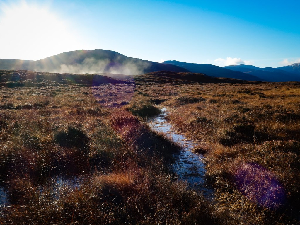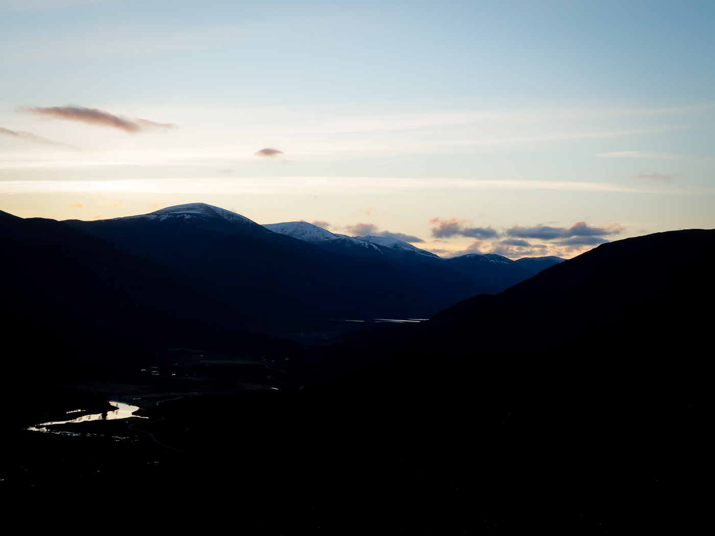 Today we thought the weather would be ok for something slightly higher, in the event the day turned out lovely and we were treated to fantastic views of of the nearby munros. We couldn’t park where we intended as the ground was too sodden so we went back along the road to an alternative start. It was steep and hard going through deep heather and bog. but was worth it! There was two other people walking on the hill but neither went along to the second top. We got back to the van just as the light was fading. The last bit down we found a little path that was most welcome.