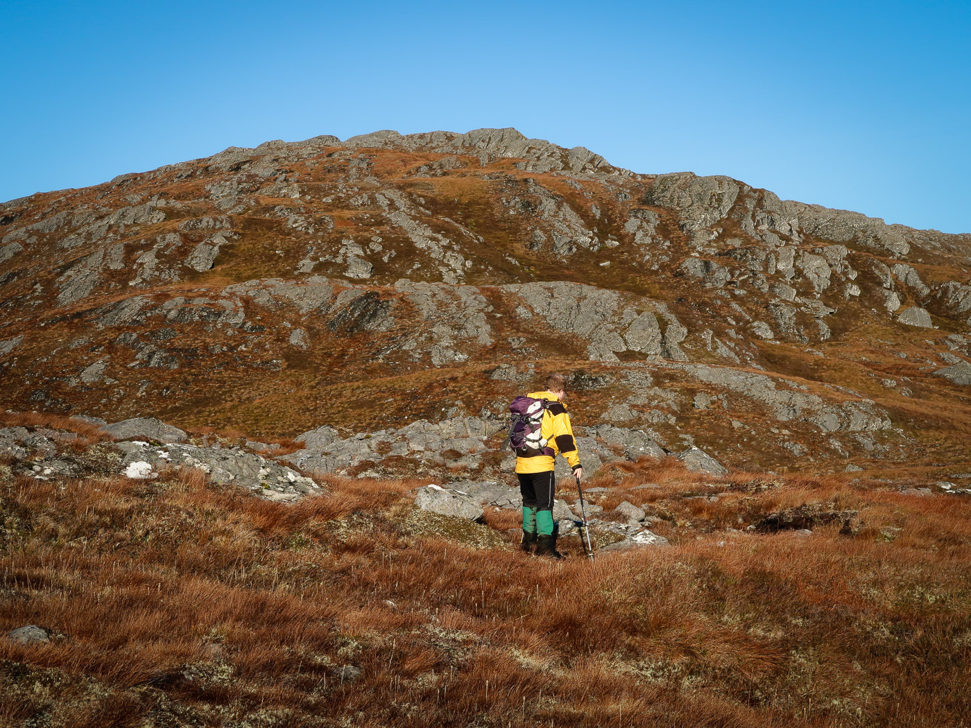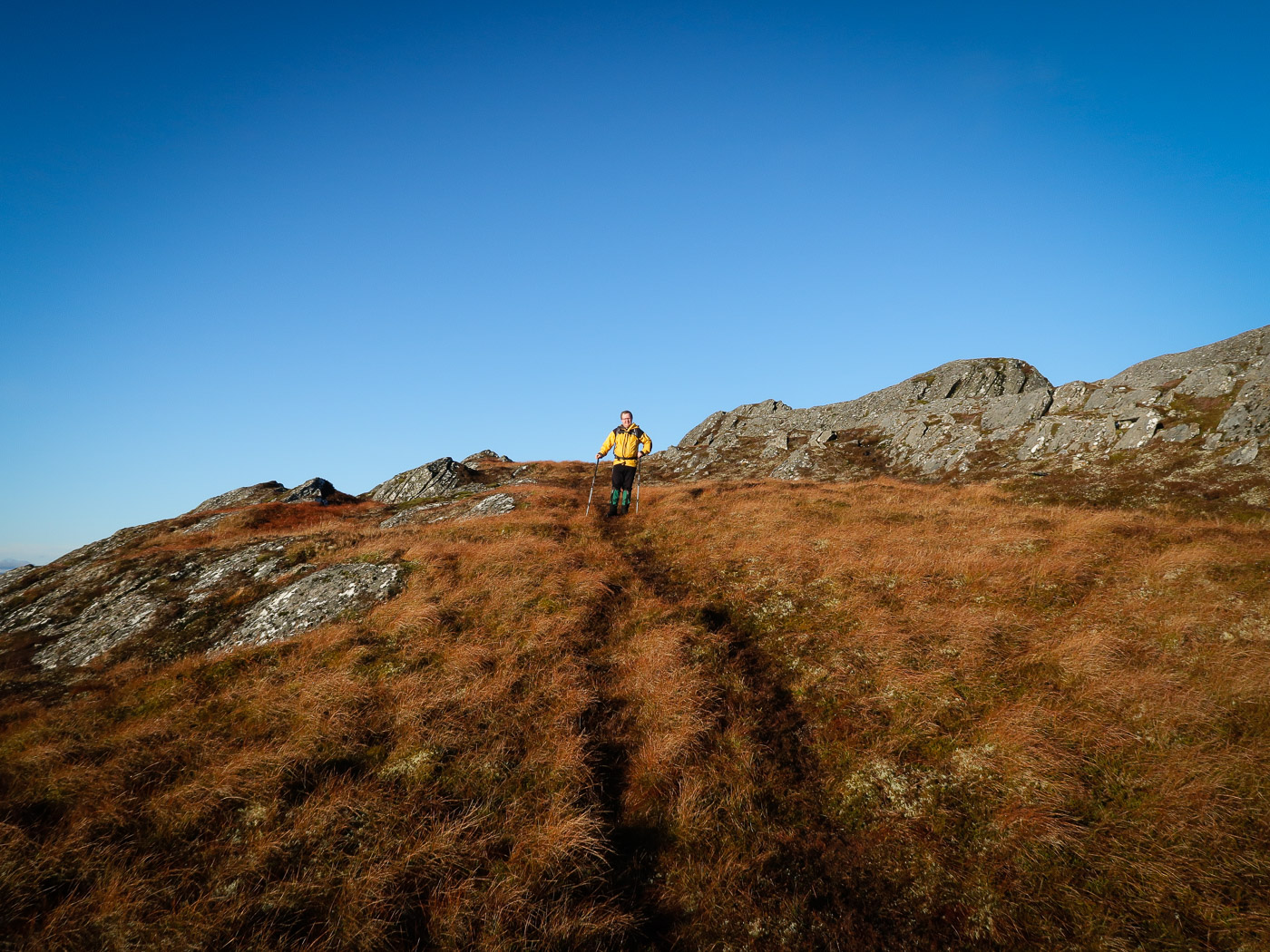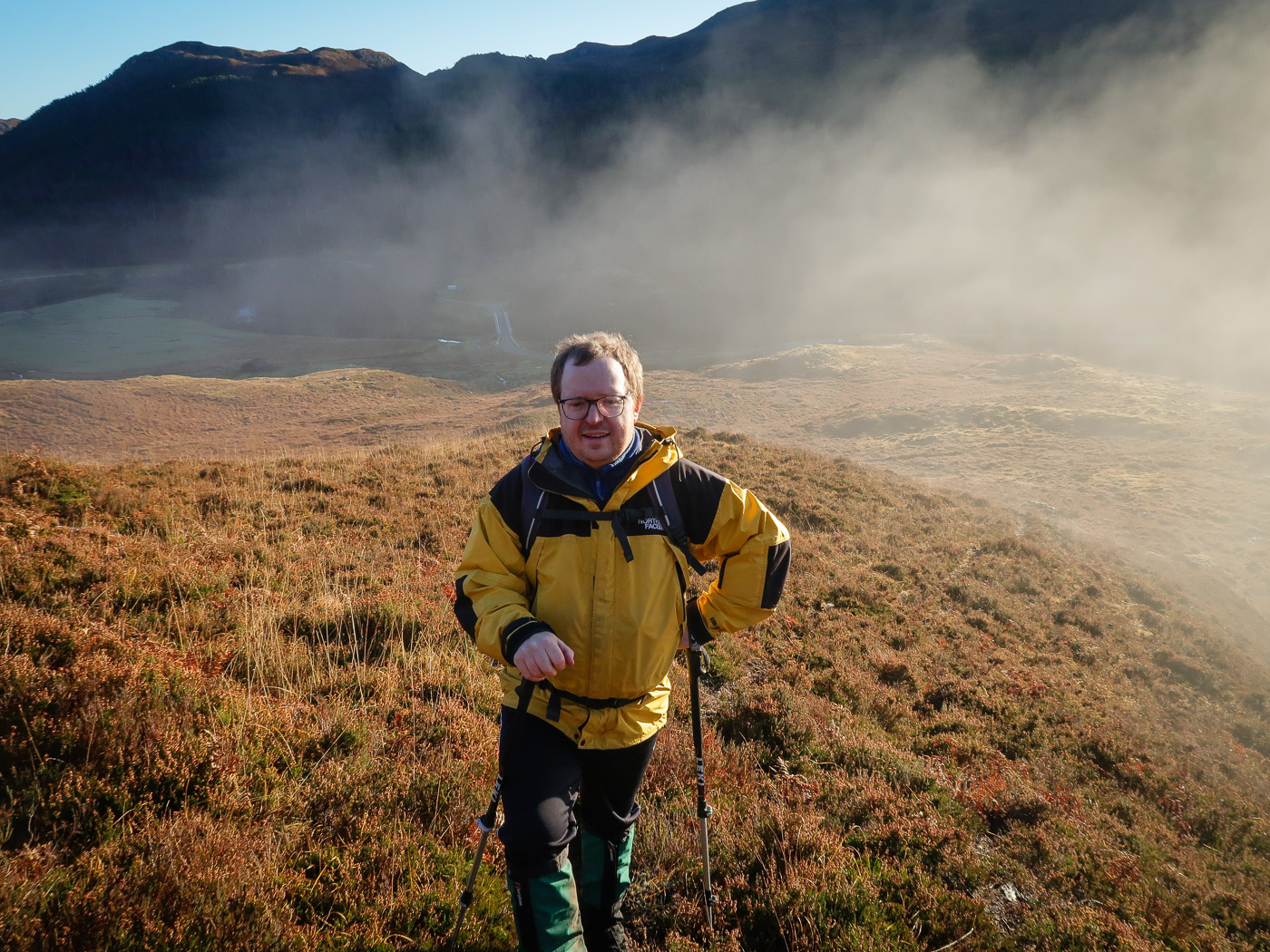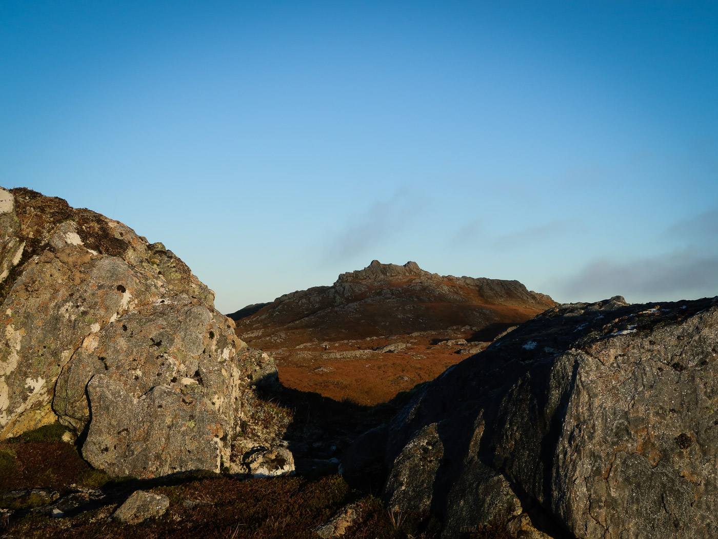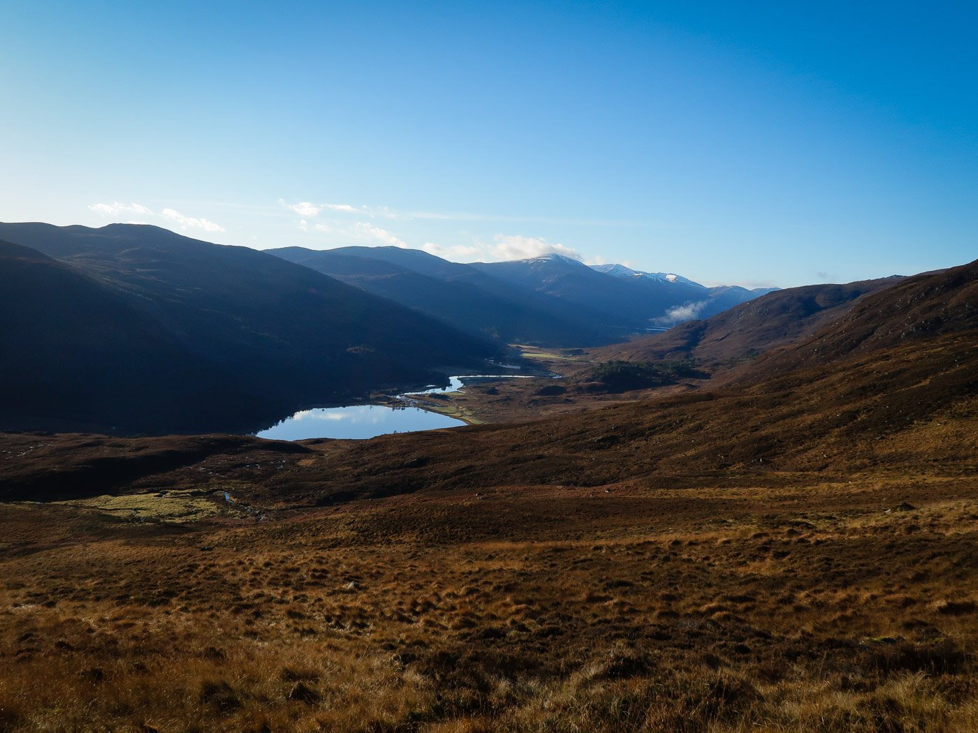 Today we thought the weather would be ok for something slightly higher, in the event the day turned out lovely and we were treated to fantastic views of of the nearby munros. We couldn’t park where we intended as the ground was too sodden so we went back along the road to an alternative start. It was steep and hard going through deep heather and bog. but was worth it! There was two other people walking on the hill but neither went along to the second top. We got back to the van just as the light was fading. The last bit down we found a little path that was most welcome.