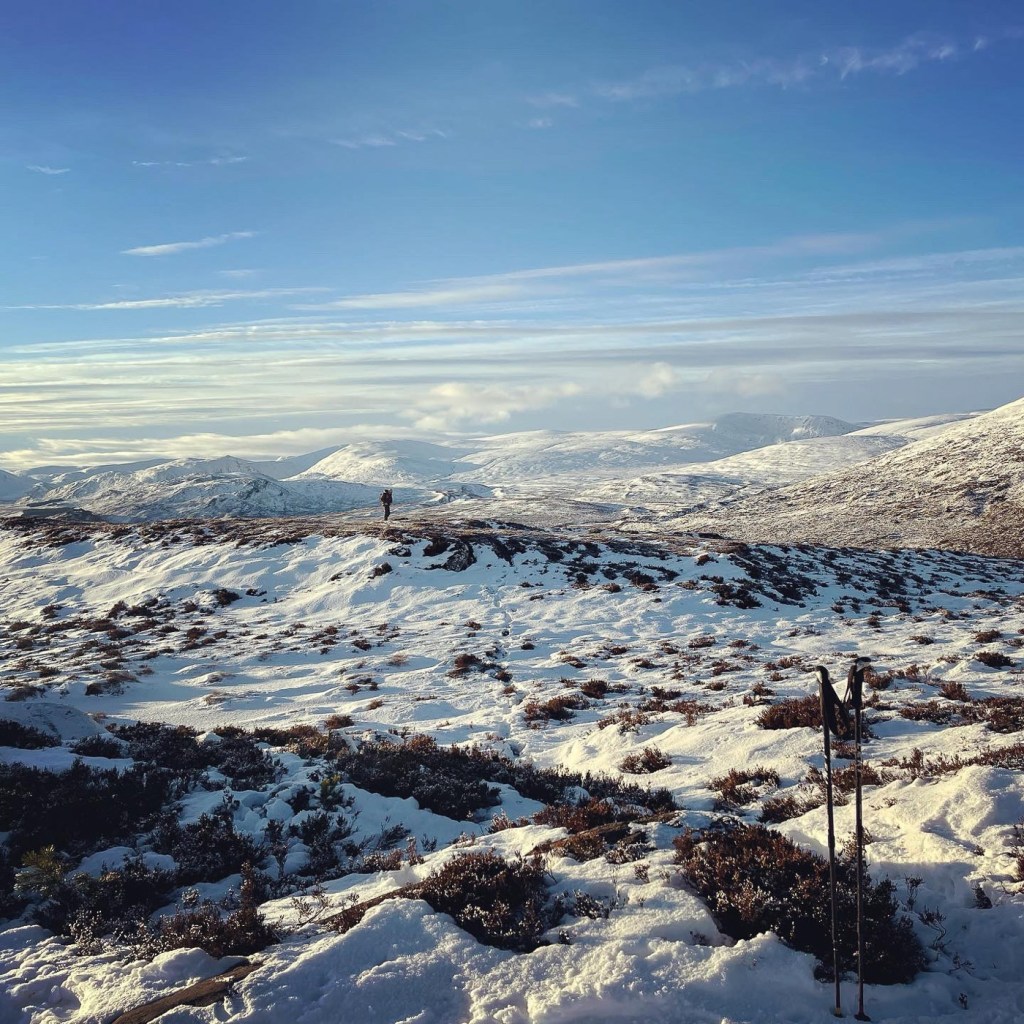 Today was a blue bird forecast and so I had to get out! My arch is still recovering from all the Nordic skiing earlier in the week so I have been trying to rest it! Today I gentle tester was needed. The paths were frozen and the wind was cold but the sunshine was lovely and so were the views. We had our butties on the top. Fifth time up this hill and first in good weather.