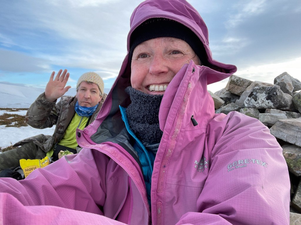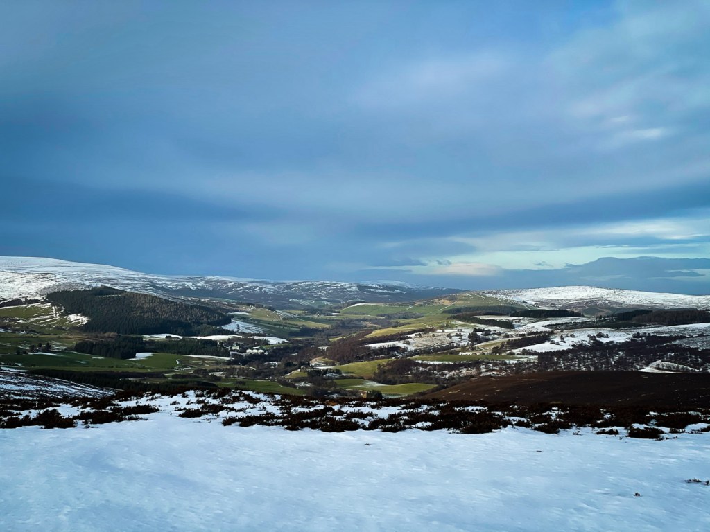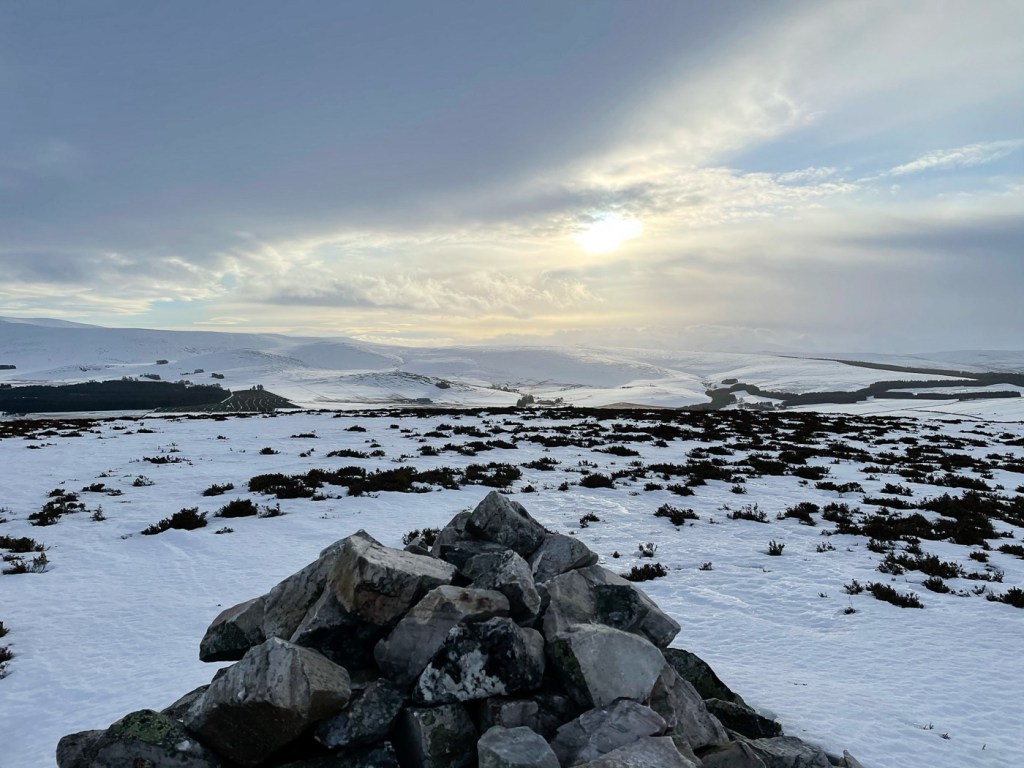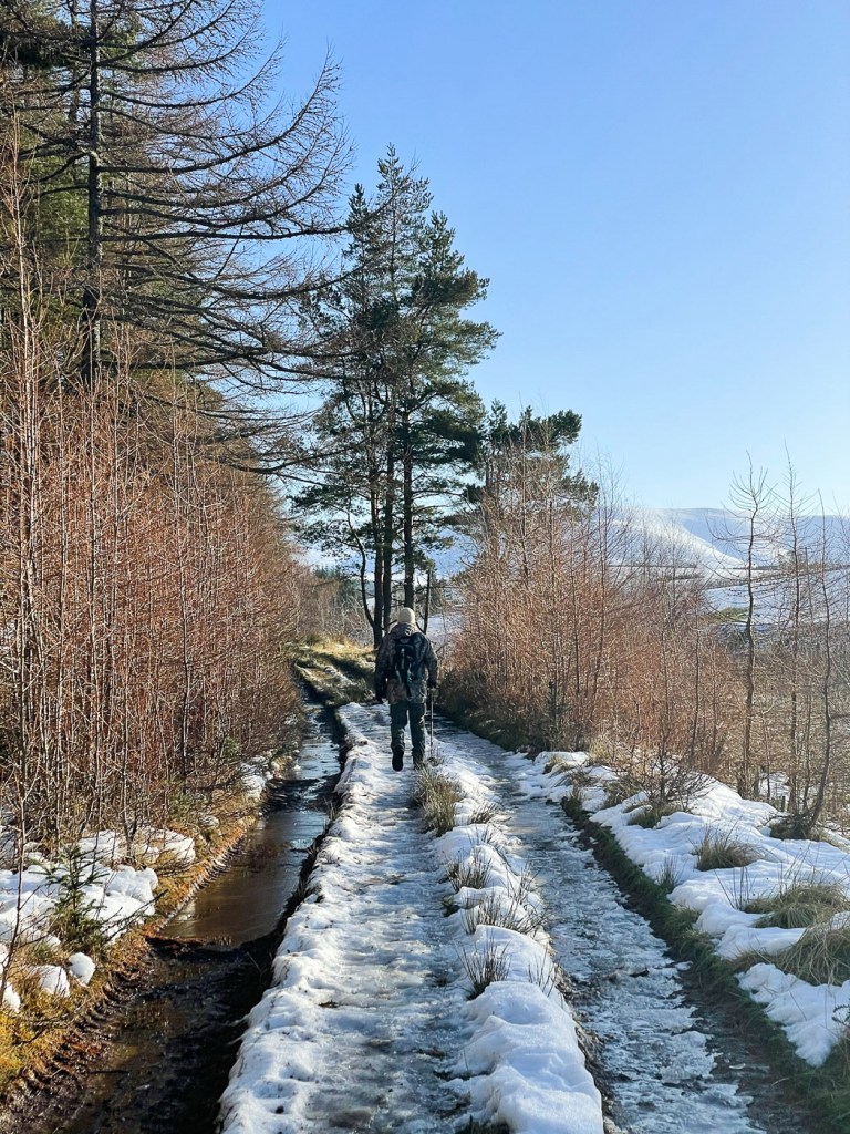 A wee walk with Kenny part of his continued getting fit campaign. The path was icy, then a steep walk up through woods and soft snow . Lovely views at the top but cold!!