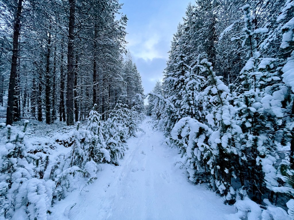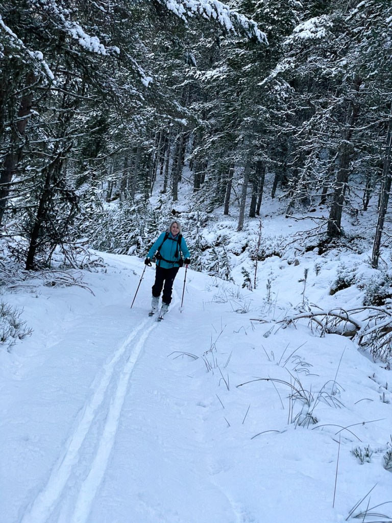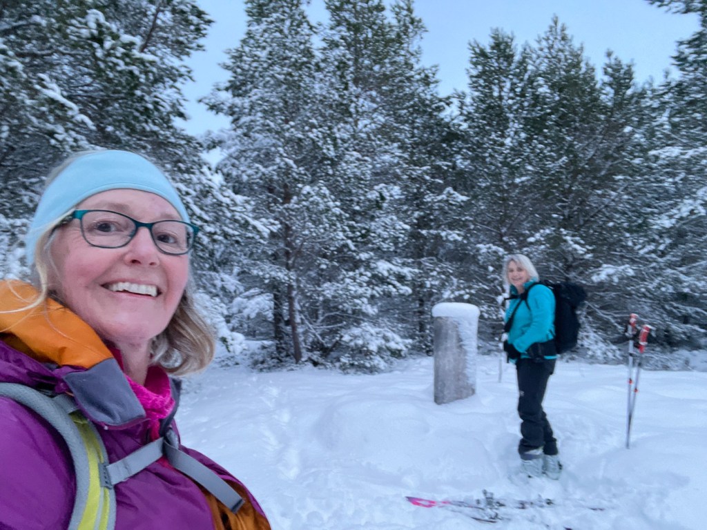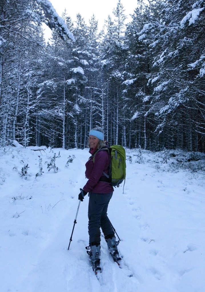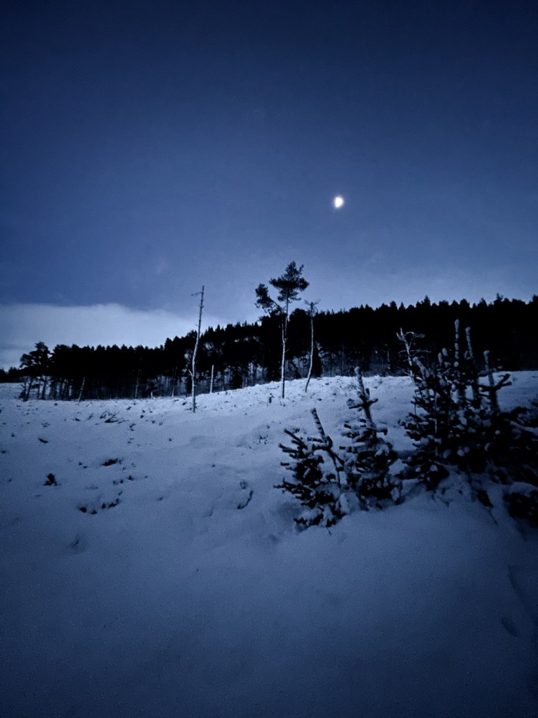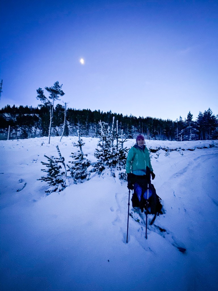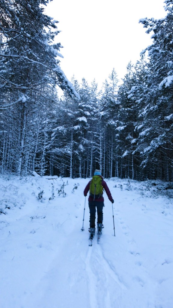 I met up with Chris, we decided that it wasn’t going to be skiing snow but as we walked up the tracks from her house the snow got better and better. So I drove home for my skis and we set back off by now it was getting late. good job i had my head torch with me. an excellent day.
