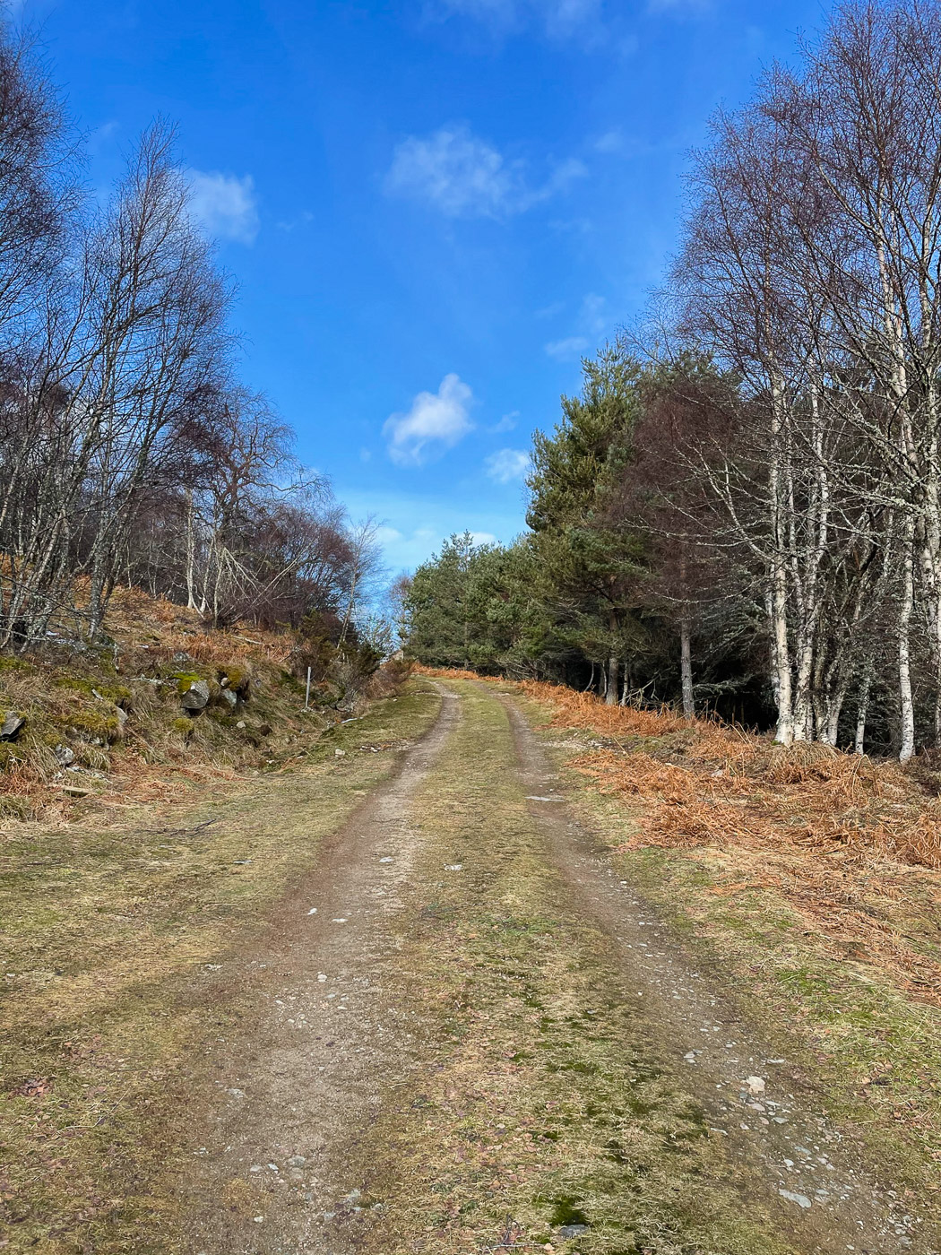 Kenny was going to come with me but had a late night and wasn’t able to drive!!! which was a shame for him as it was a lovely sunny day spring like and so nice to be able to sit and eat your lunch in the warm. I was just intending to go up Beinn Mhor but the day was so lovely a extended it to include Laggan hill. I then discovered an abandoned croft Drumourachie on the way down.