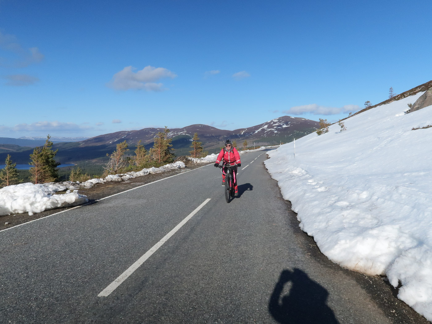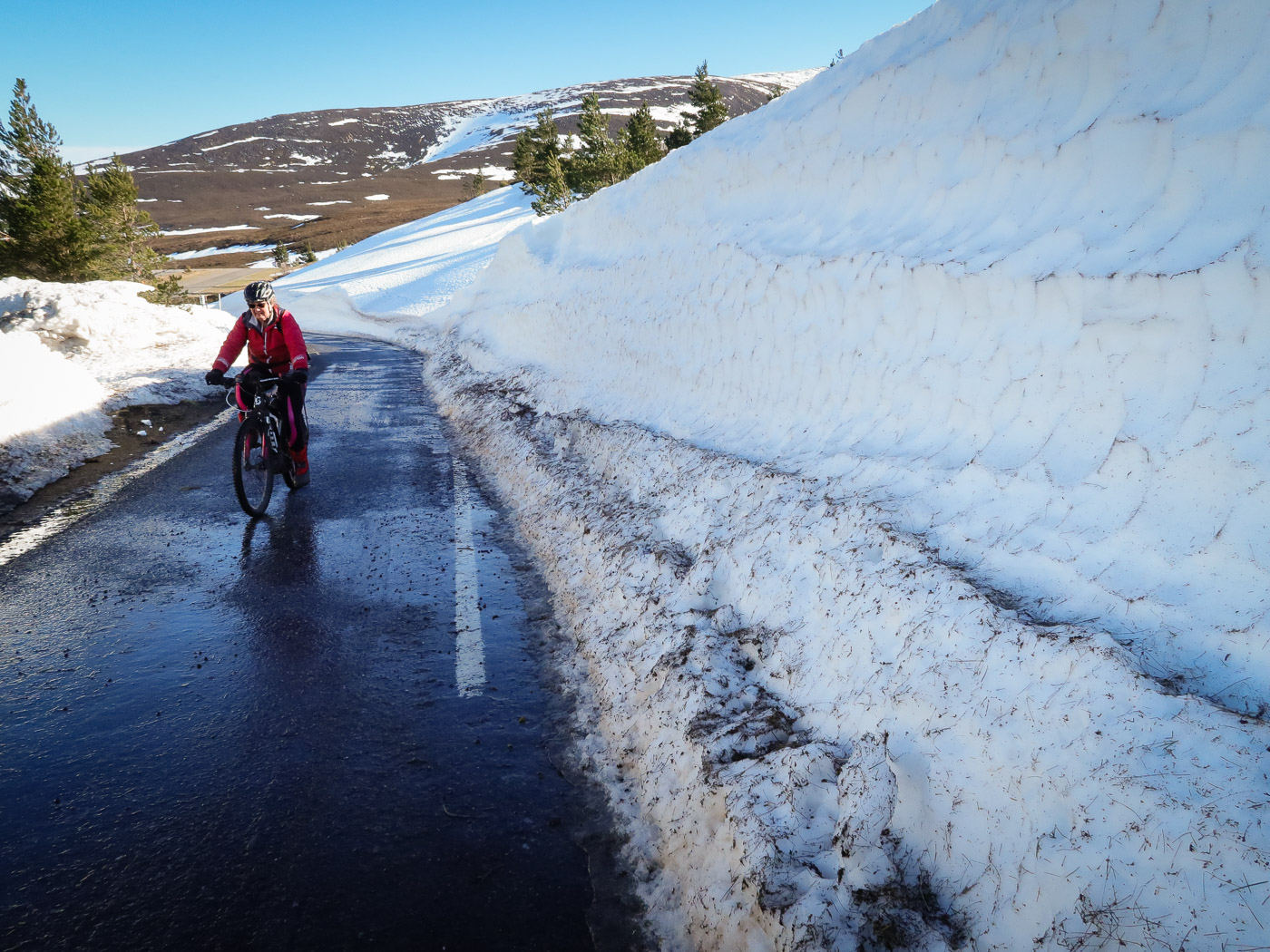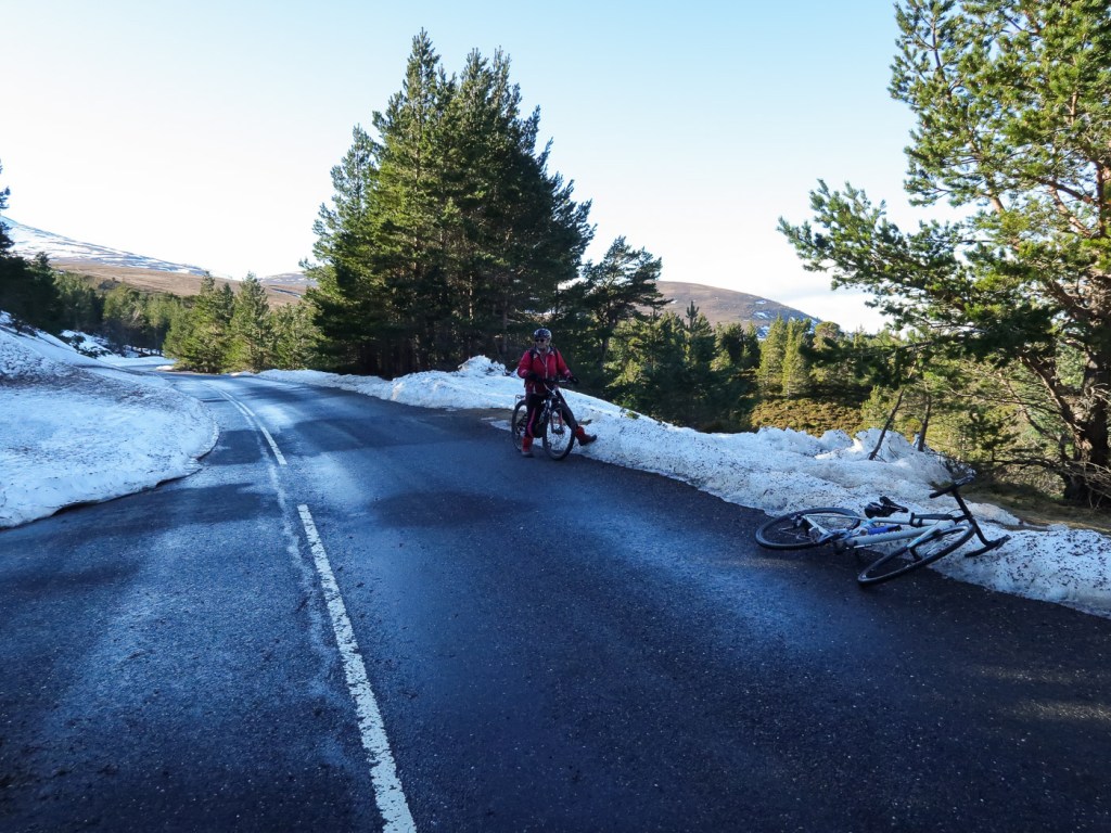 I rode up the hill with Anne to see what the snow was like…it was very icy! We passed a fair few folk coming down with skis on their backs and bikes as we were going up…and even more as we were coming down including Laura – Lis’ daughter. We rode round loch Morlich on the way back….still plenty of ice…foot still a bit sore.