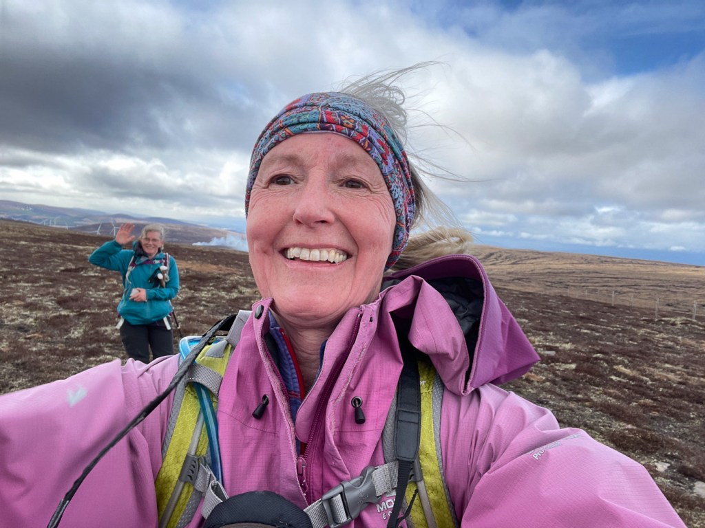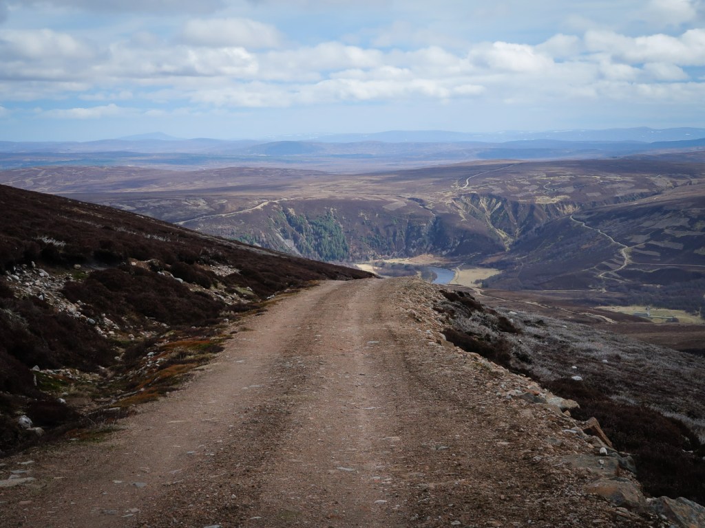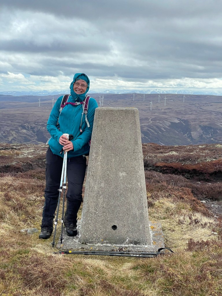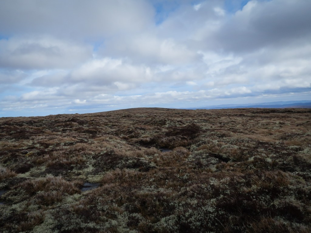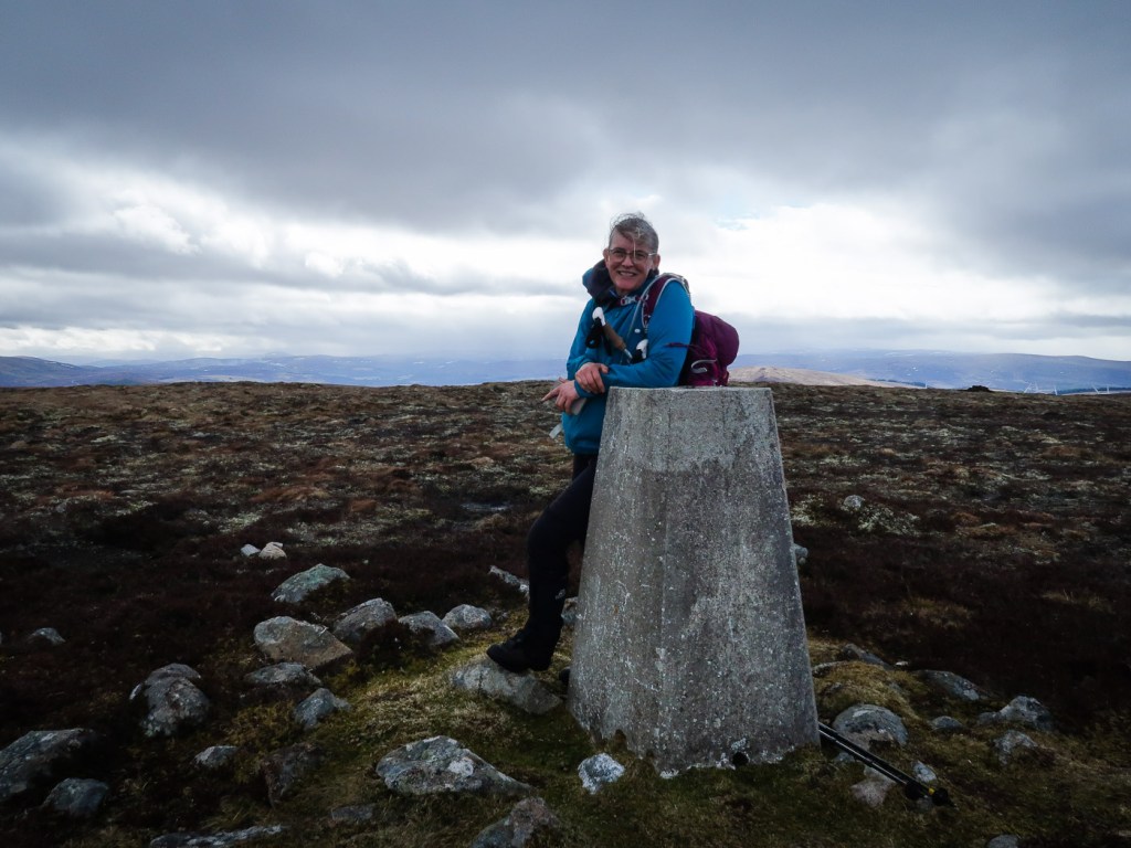I have wanted to walk up this hill for ages, all the descriptions made it sounds terrible. but we actually gained height very quickly on a new landrover track and it was ok going to the top of Carn an Uillt Bhric. Then it did a get a bit peat haggy but still not so bad. From the top of Carn nan Tri-tighearnan it is get a bit challenging. then down a gentle ridge to another track. A splendid very windy day!!