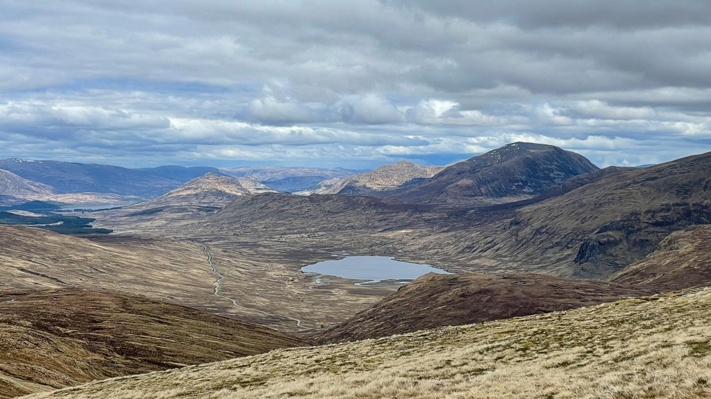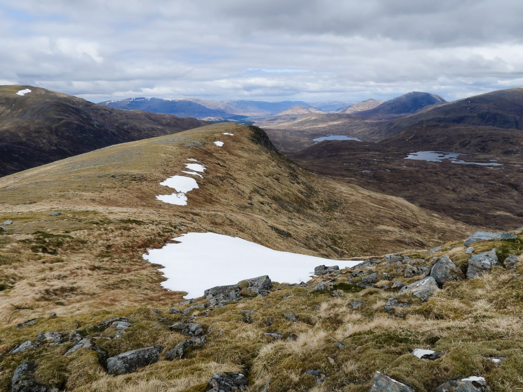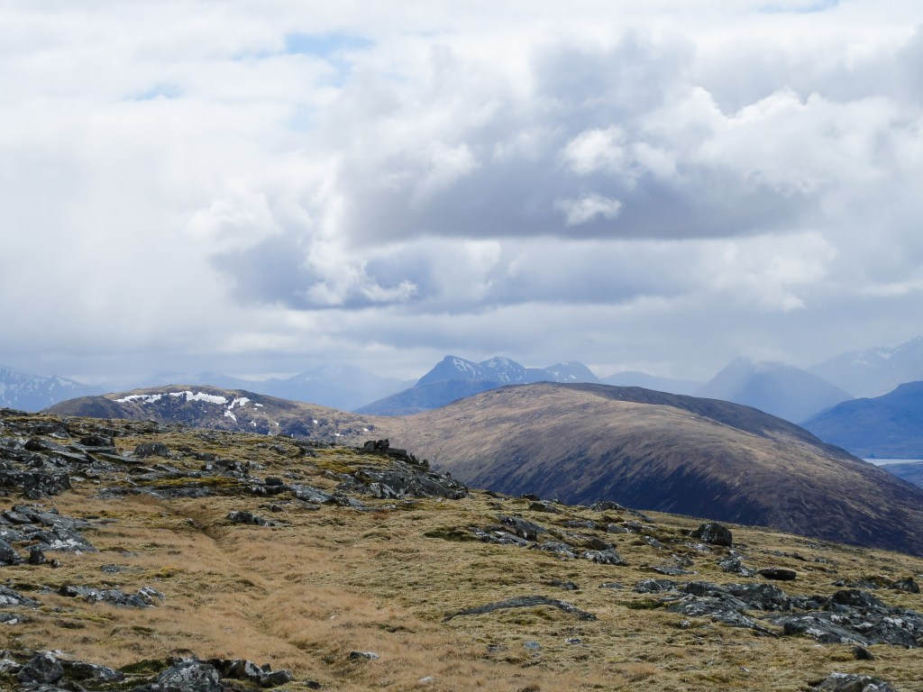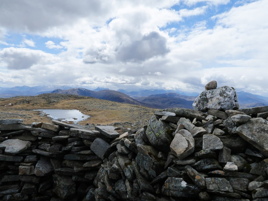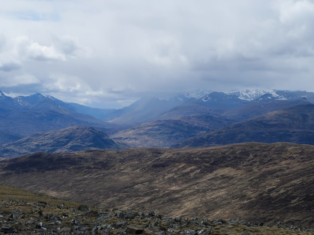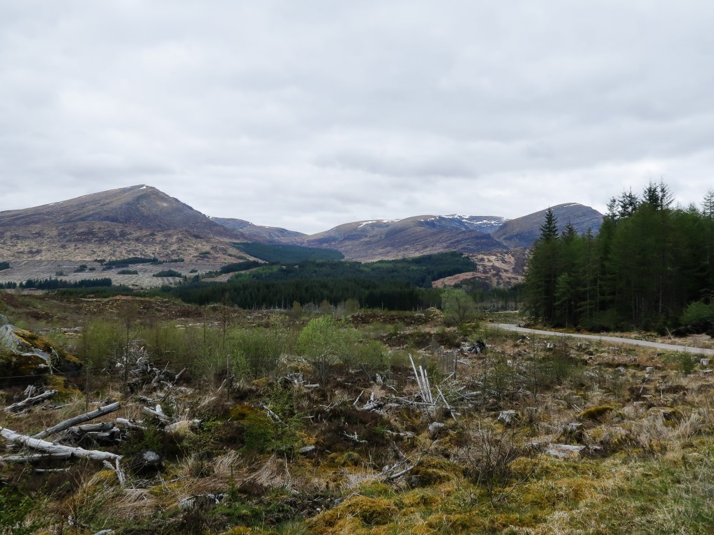 It was dry by then! The bike was on a good forest land rover track but there was a fair bit of down which hurt on the return journey. The views were stunning. I saw many hills that i have been up with Joe and Roger. So lots of memories. After ditching the bike i set of over rough boggy heathery ground until the start of the ridge it was steep but only for a couple of hundred meters. The a mostly pathless broad ridge was followed to the top. fantastic views. So glad I made the effort. I was a little weary on the ride back to the van but great to be able to have a brew before heading home.