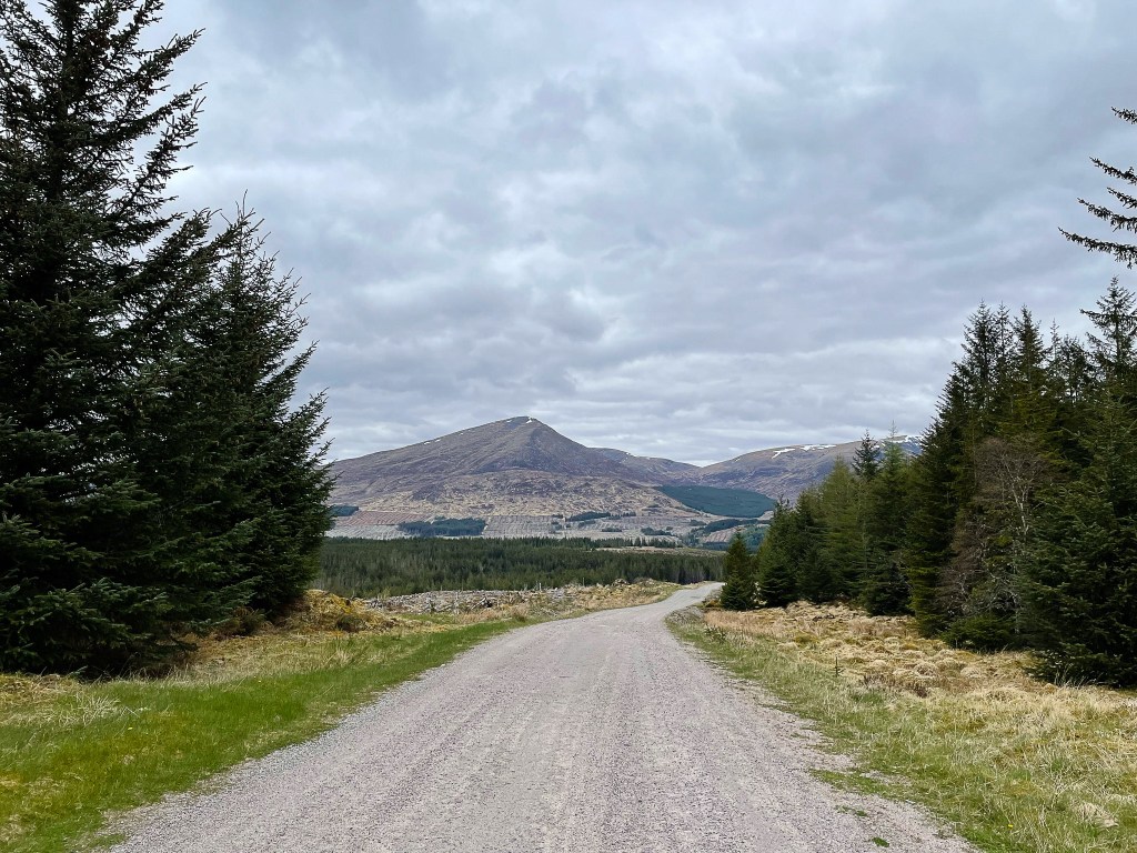 The road I rode in on with Creag Pitridh the only Munro besides Cairngorm that i have been up twice, first time we aborted after roger twisted his angle