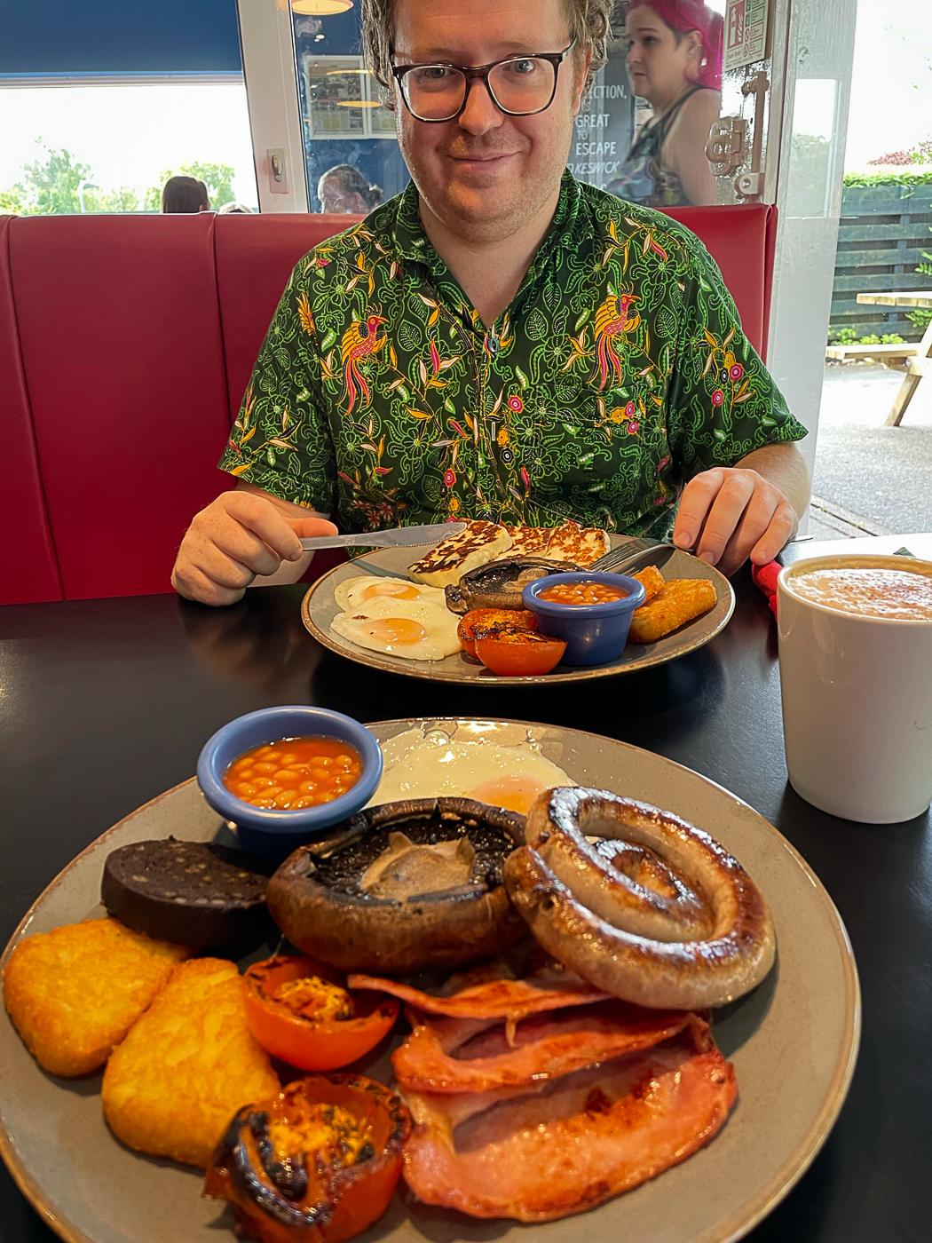 This was one of the wettest days ever! and the walk back along the screes along the edge of waswater was really really hard work. We were shattered at the end. It would have been more fun on dry rock. We got back to a wet camp but luckily nothing was too wet. The next day we had the best breakfast ever. Only two more wainwrights to go. Tops for 2021 number 80 and 81