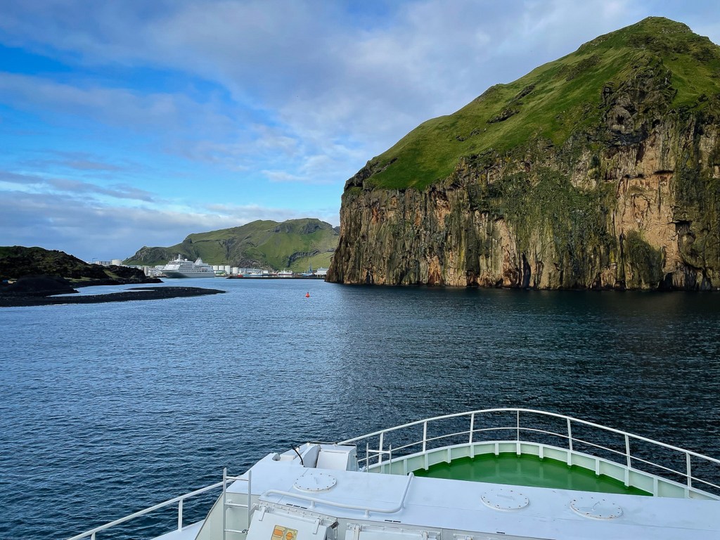 It was our last day and we decided to visit the island of Heimaey where there was last an eruption in the 1970’s we walked up the volcano that erupted then and another that had erupted 100 years earlier. We vivited a very interesting exhibition and the local baths and hot springs.
