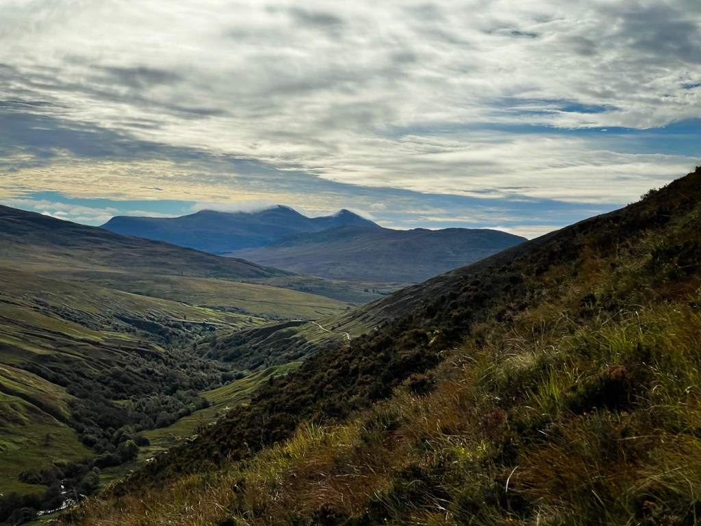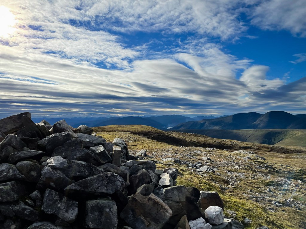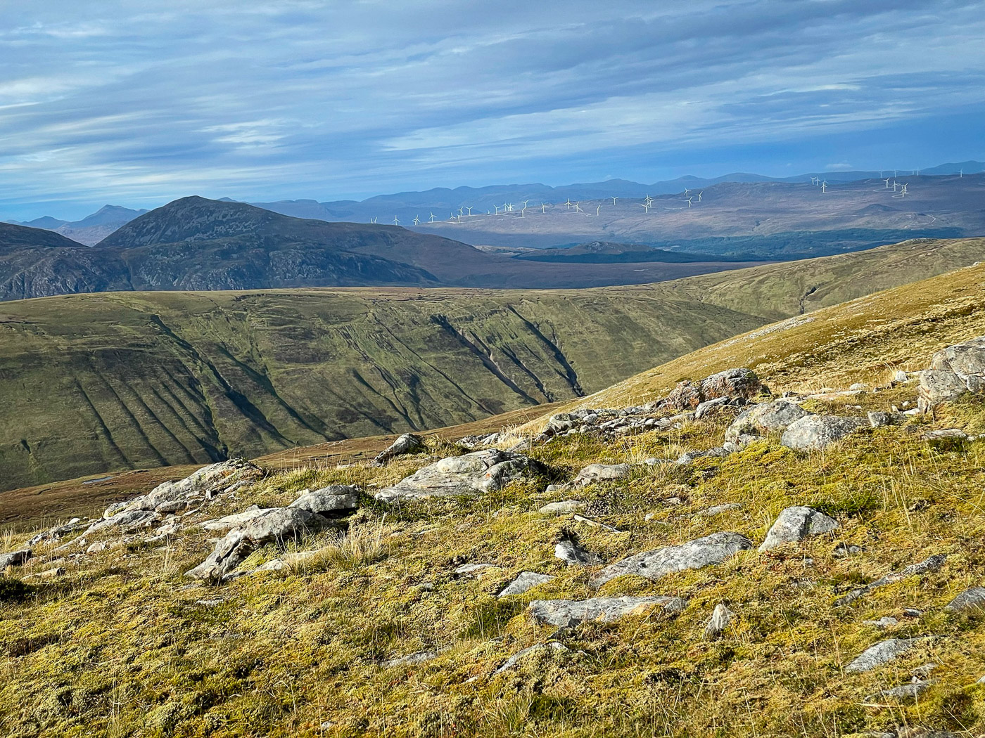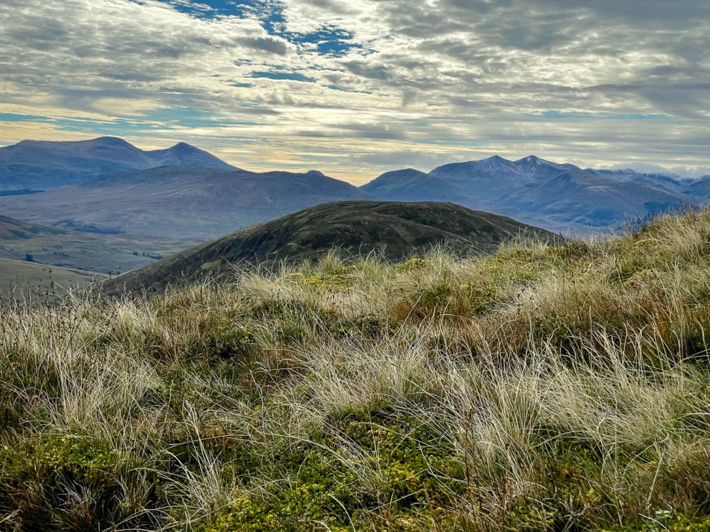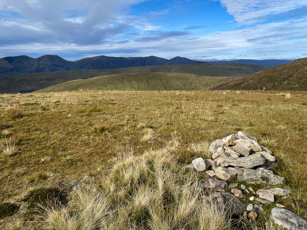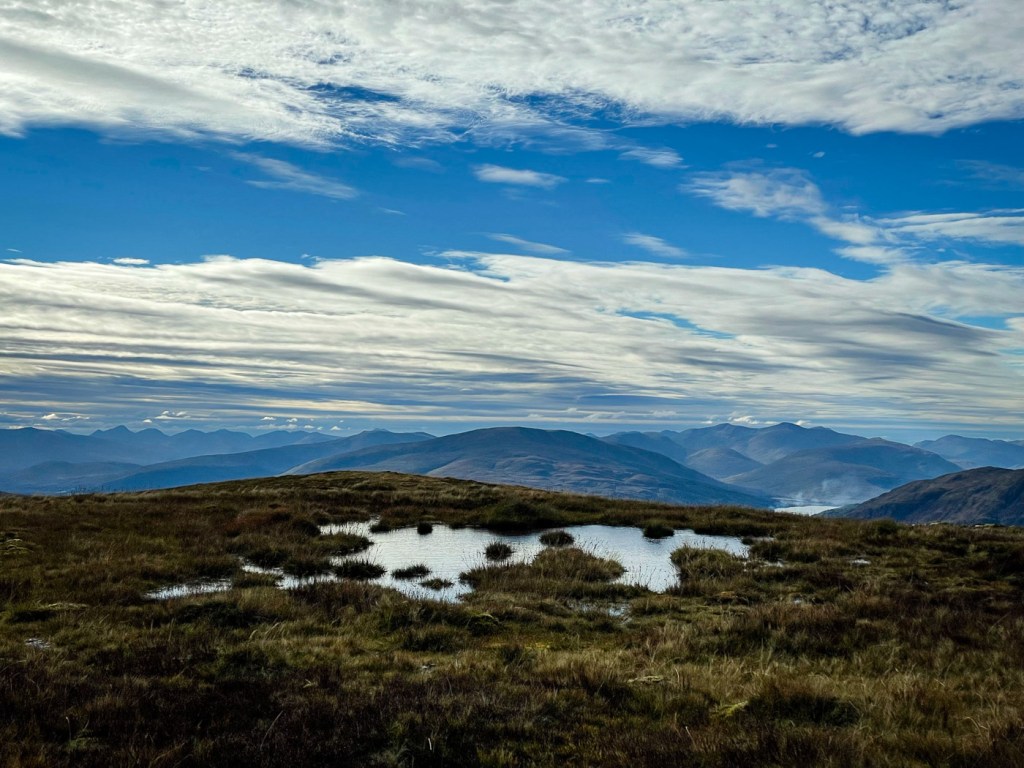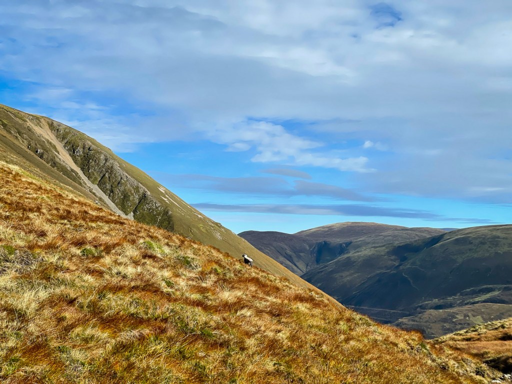 Lovely views from the top of Leana Mhor and this time we dropped down top the Col to find a sheep stuck in the bog. After much effort we managed to get it out!! We then carried on over to Beinn Laruinn.