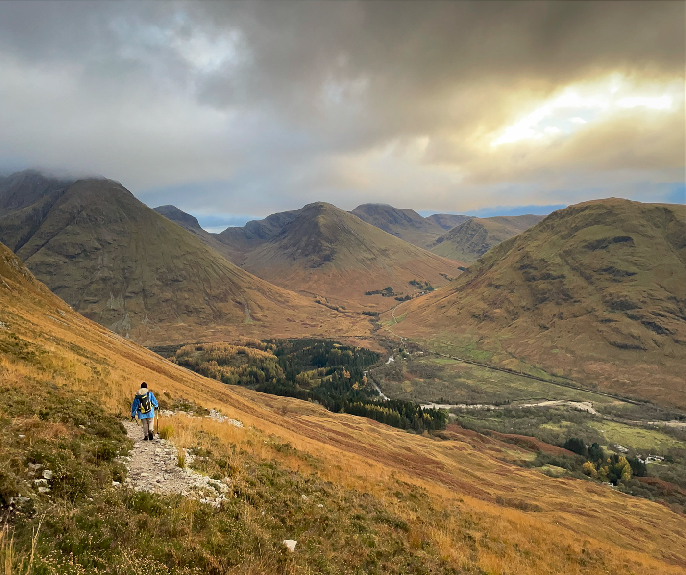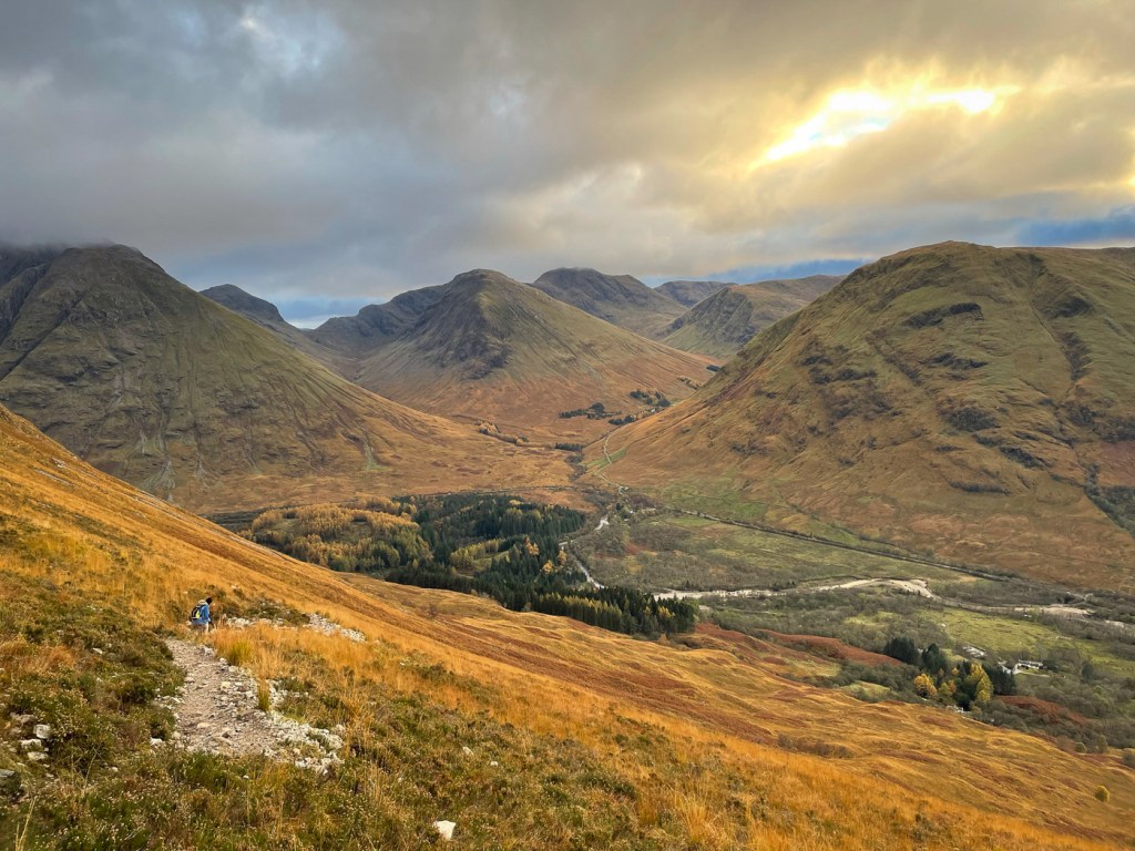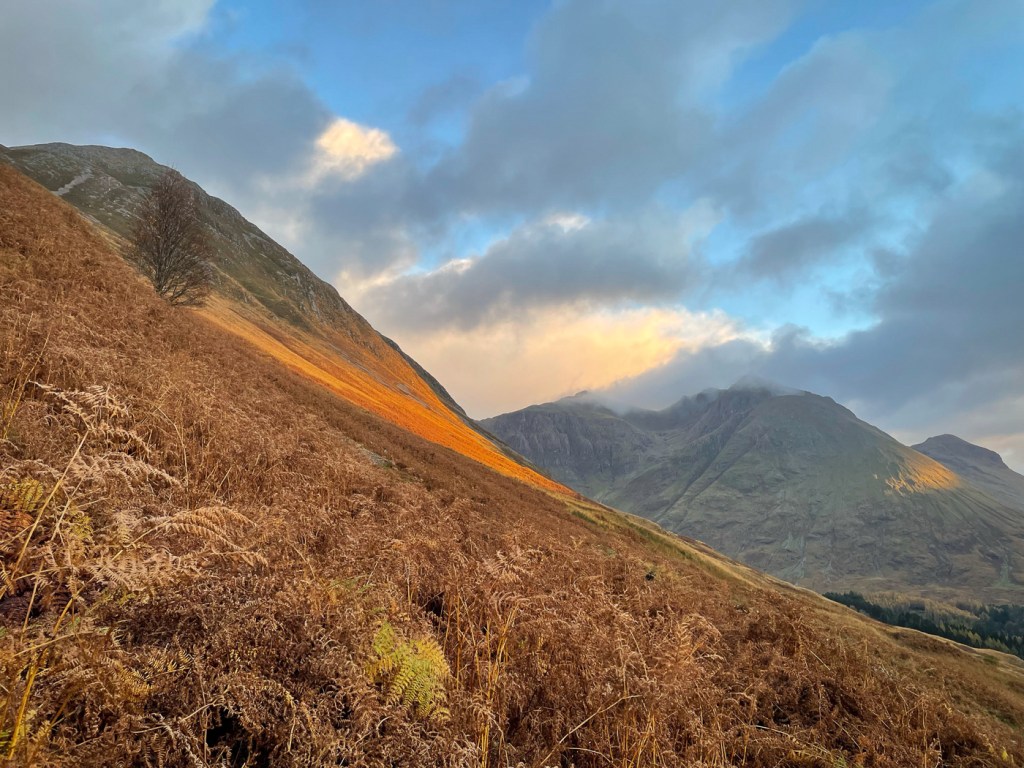 Today was the day of Jimmy’s funeral but as I was excluded due to the toxic dynamics of the strange people of Taynailt I headed for the hills in the van and met up with Anne for a couple of fantastic days in the hills. Today our goal was the pap of Glencoe a hill i have fancied for a while. We took a scrambley path up the front of the hill – a smaller one than the main path, which we came down. I left my camera on the top and had to go back for it. I couldn’t find it but a lovely French couple did find it and rang me to tell me. we met up for a swap in the village. A bar meal with Ian and Anne made a fine end to the day.