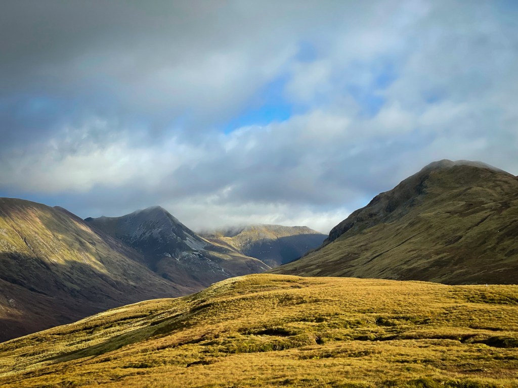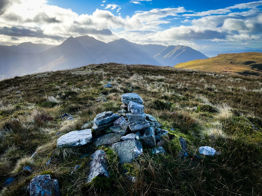 It is funny how sometimes you don’t fancy a hill but a friend is keen so you go with it. This was the case with Tom Meadhoin in this case it turned out to be a splendid hill with staggering views over to the Mamores and over loch Linnie to Ardgour.