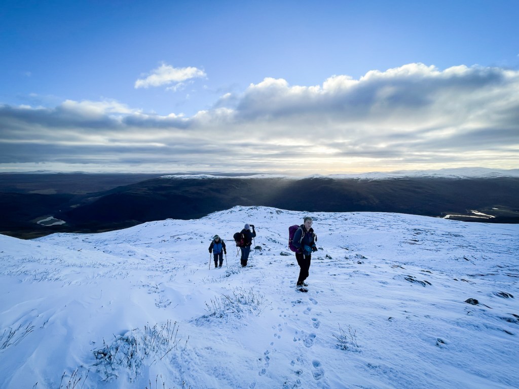 I had been unwell since coming home from my visit down to Cumbria and Haddington. A combination of the booster jag and a cold. So I was very glad that Anne Marie tempted me out for this walk. I had been up a year ago with joe but that time there was no snow. This time is was very snowy and what a wonderful day. So glad I went but also glad that Anne Marie drove. Dot and Helen (from the SLCC) came too.
