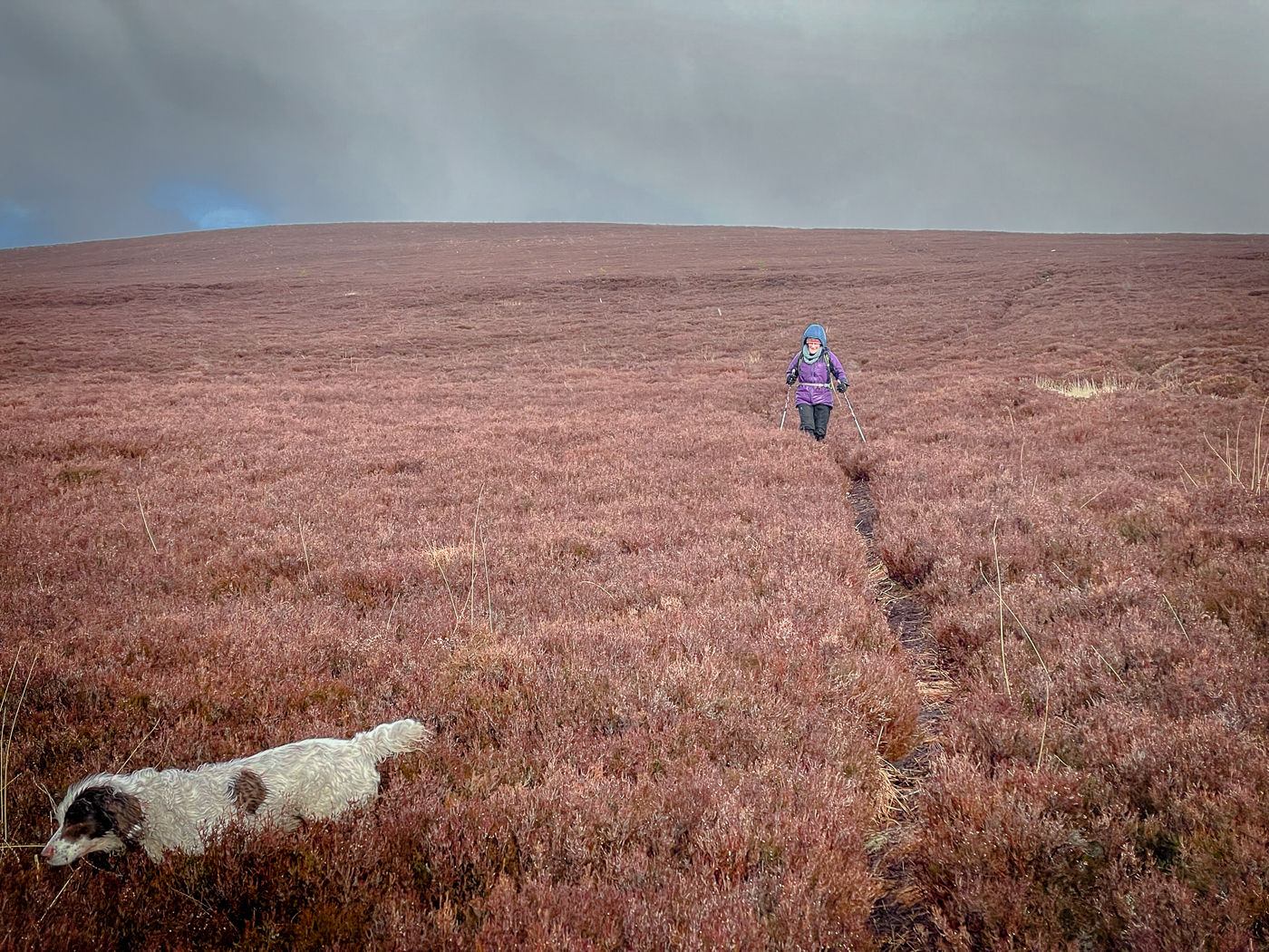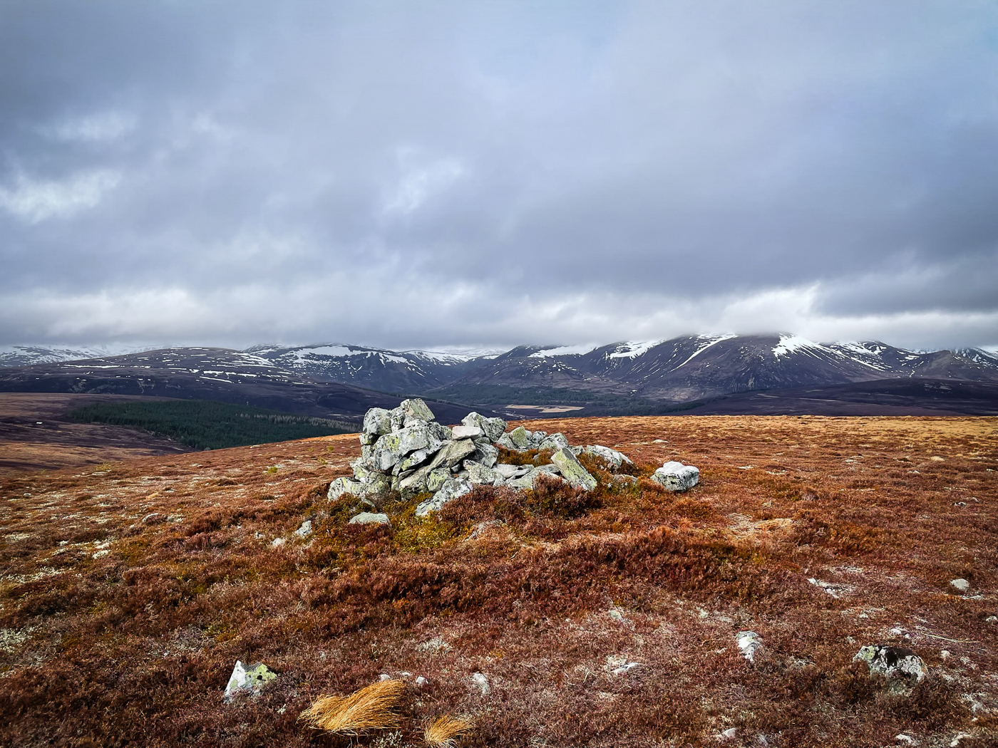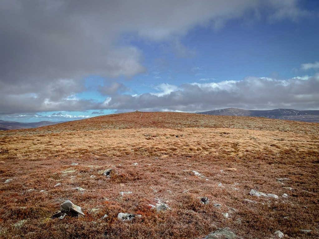 I drove over and met up with Janet at the Falls of Moy car park which was to be our sleep spot for the night. We set off up Creag Bhalg at mid morning, a lovely little path along the river turned in knee deep heather nightmare but eventually we found a track and the rest was easier going. Nice veiws from the top of other hills – some climbed and some not.