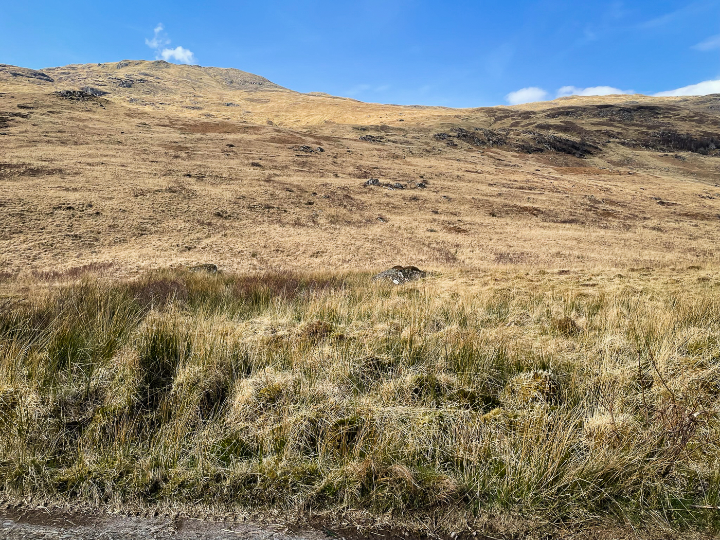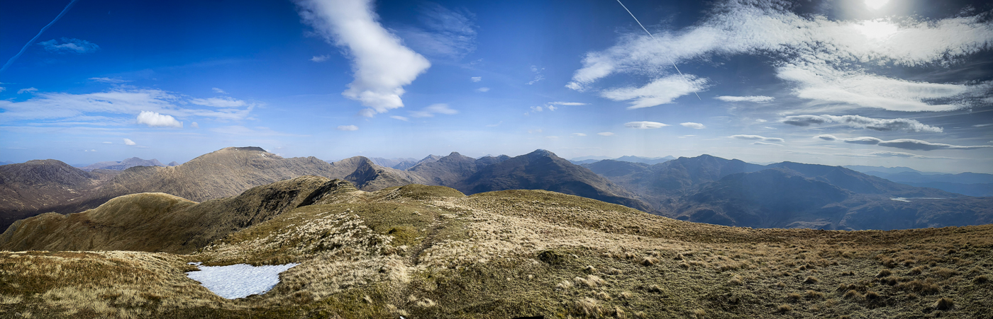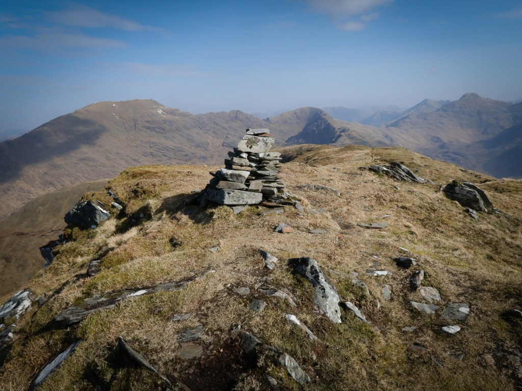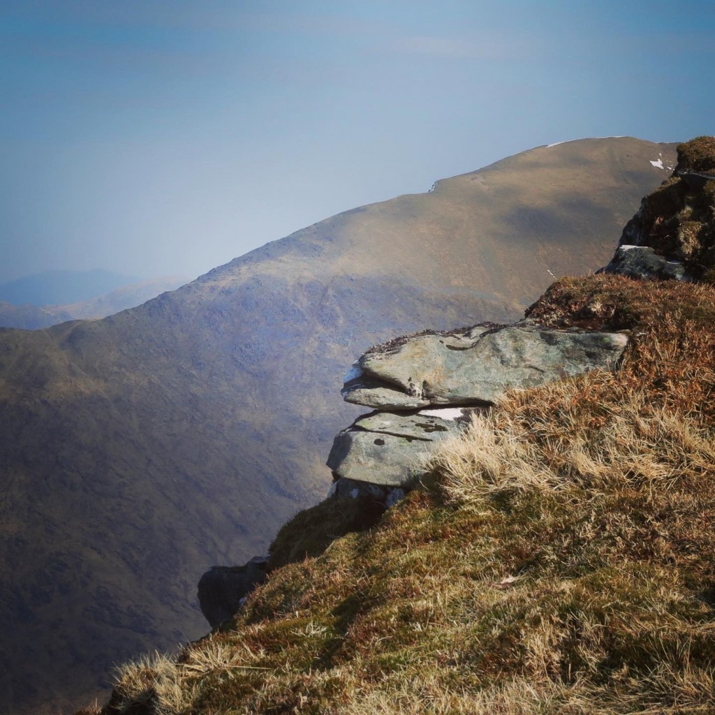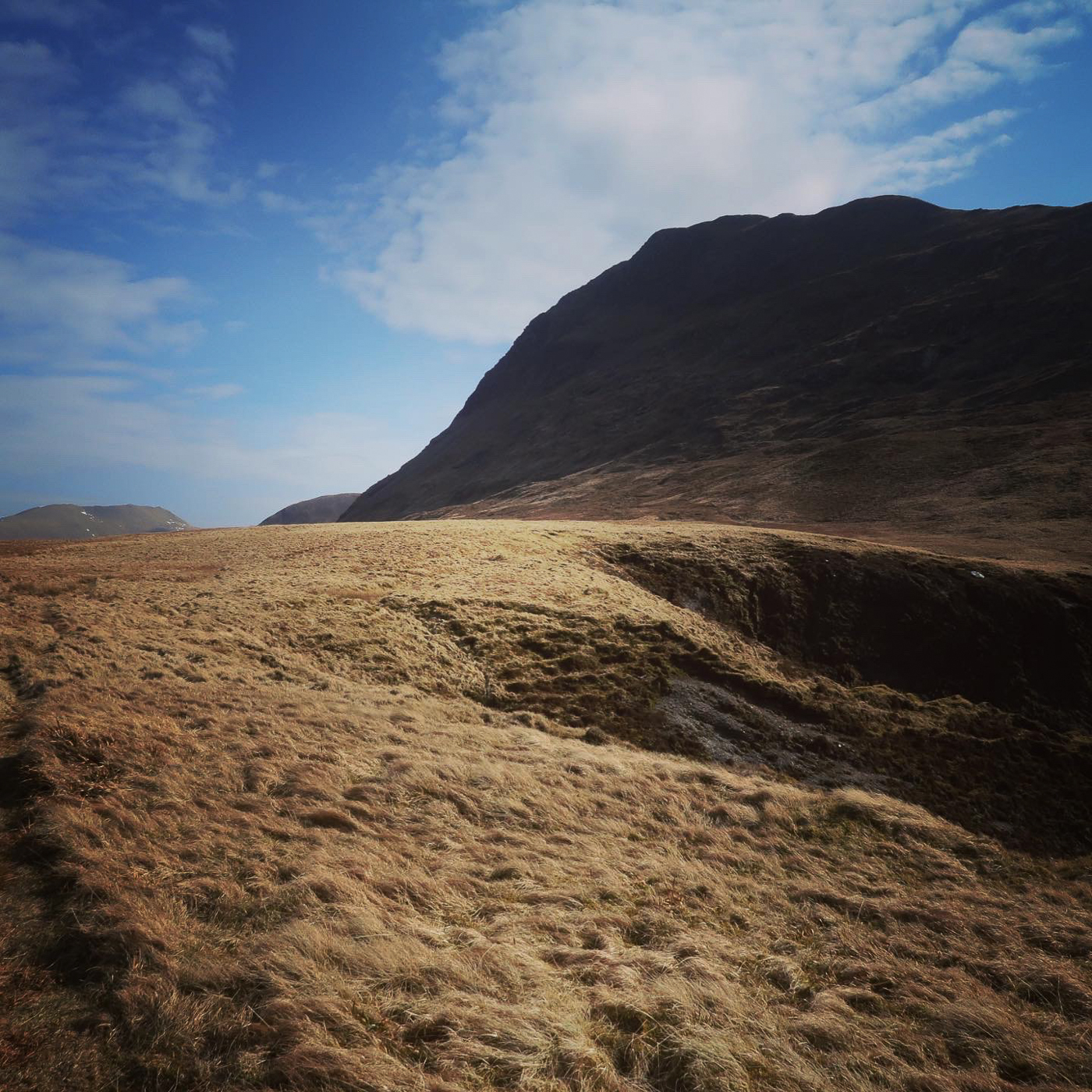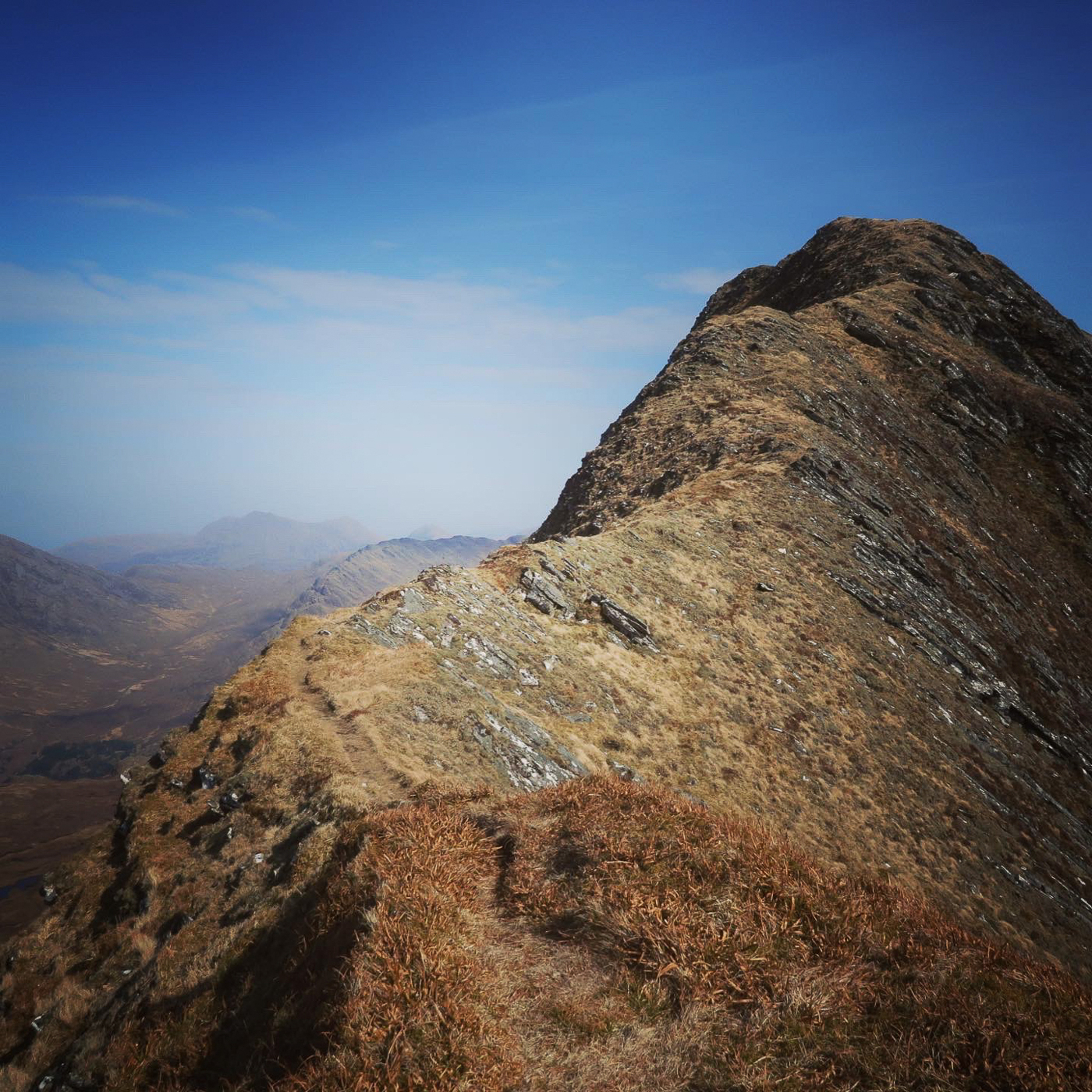 After a wonderful few days away in the van I headed for Knoydart by ferry, a quick visit to see Kenny. My legs were pretty knackered after 3 hill days and a day skiing but the weather stayed fine and the hill Joe and I abandoned due to bad weather and wrong clothes back in September was calling me. So I just had to go for it. What an amazing hill it was – definitely my most interesting solo hill to date. The ridge was superb. My legs even survived 200m descent of the most hummocky grass ever!!