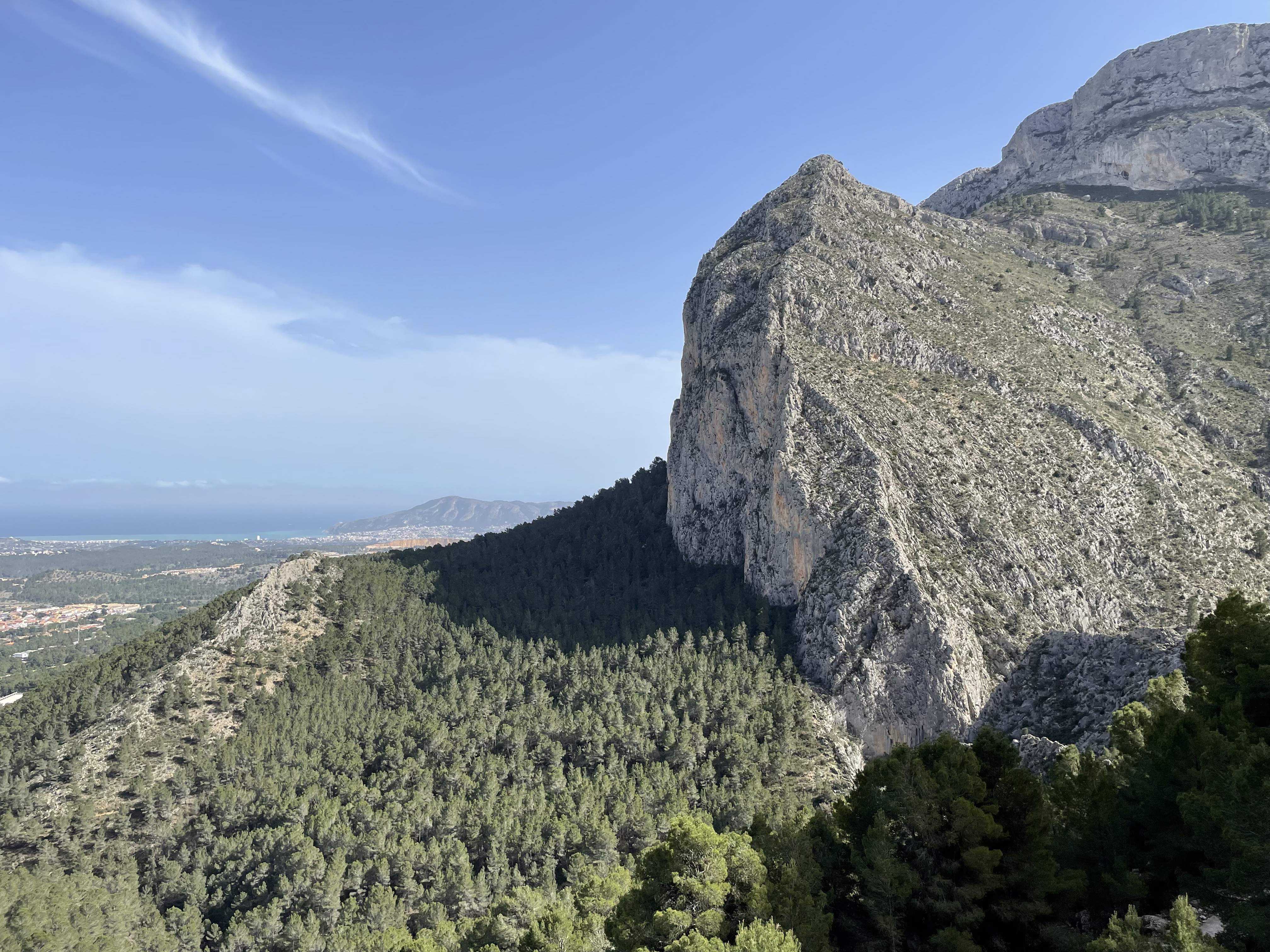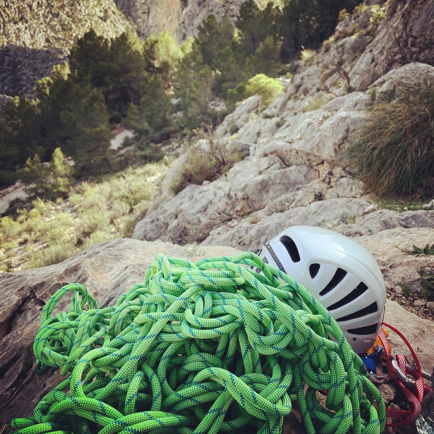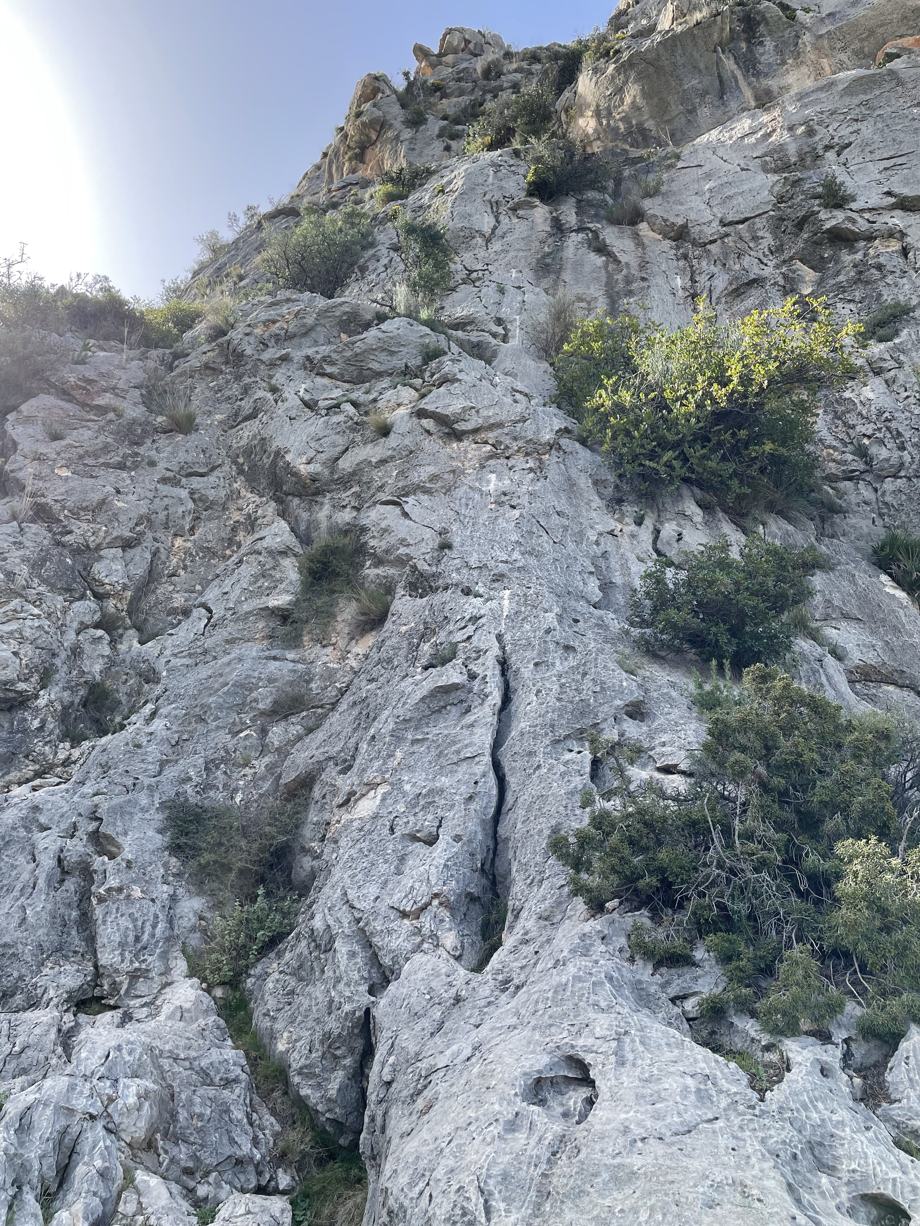 I arrived on a late flight so by the time that Chris and I got to the apartment it was nearly 2am on Monday morning. So we did really well to get out and have a climb at all. My first sport route outdoors. The sun was hot! We just did one single pitch route which was excellent but a little harder than I was expecting. At the top in order to lower down the procedure is:- At the top there is a ring. Clip into the ring with a sling. Untie. Thread the climbing rope through the ring and retie. Then save to be lowered down.