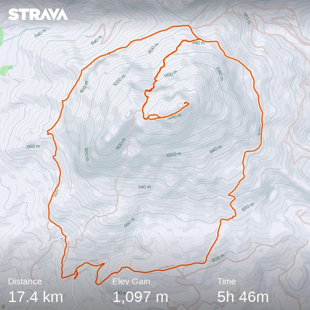 D: 17.49km. El: 1097. T: 5hrs 45mins ( 8 hrs 25 mins )