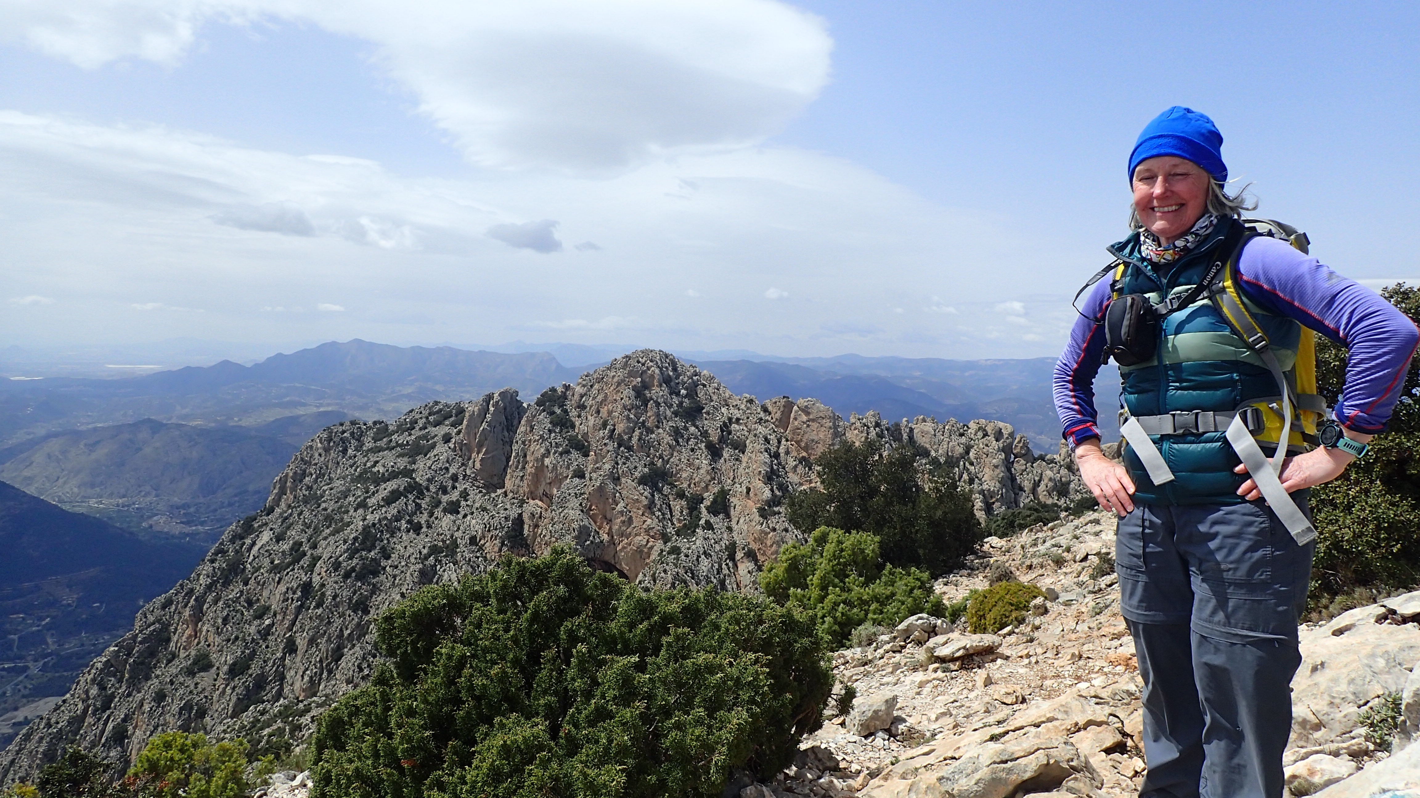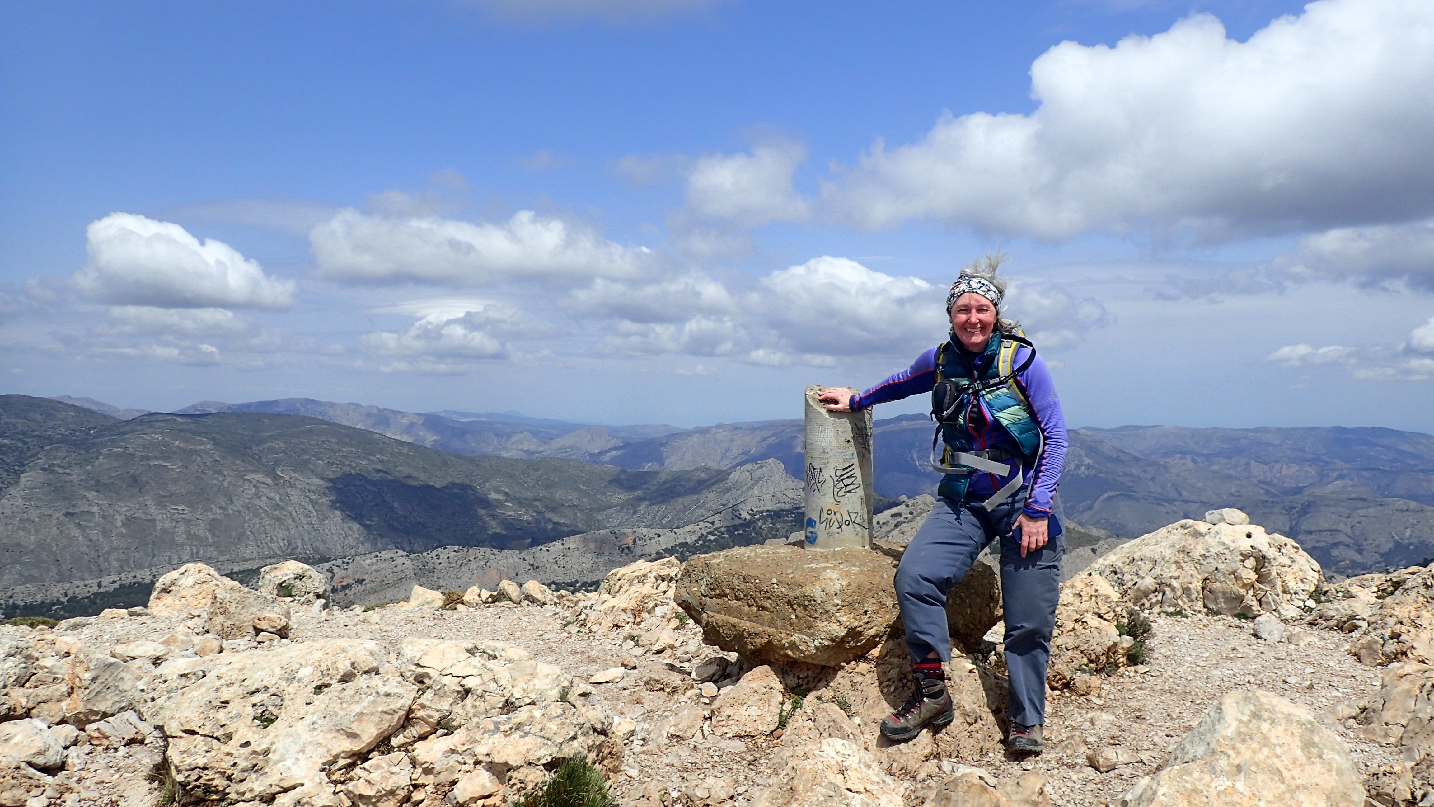Today we decided to have a walk up the Puig Campana. Which is the big hill we can see from our apartment. It was quite windy and we did wonder if we would be able to get all the way to the top. But we did. It was the longest and most elevation I have done this year. We were very weary when I got back to chris’ van.