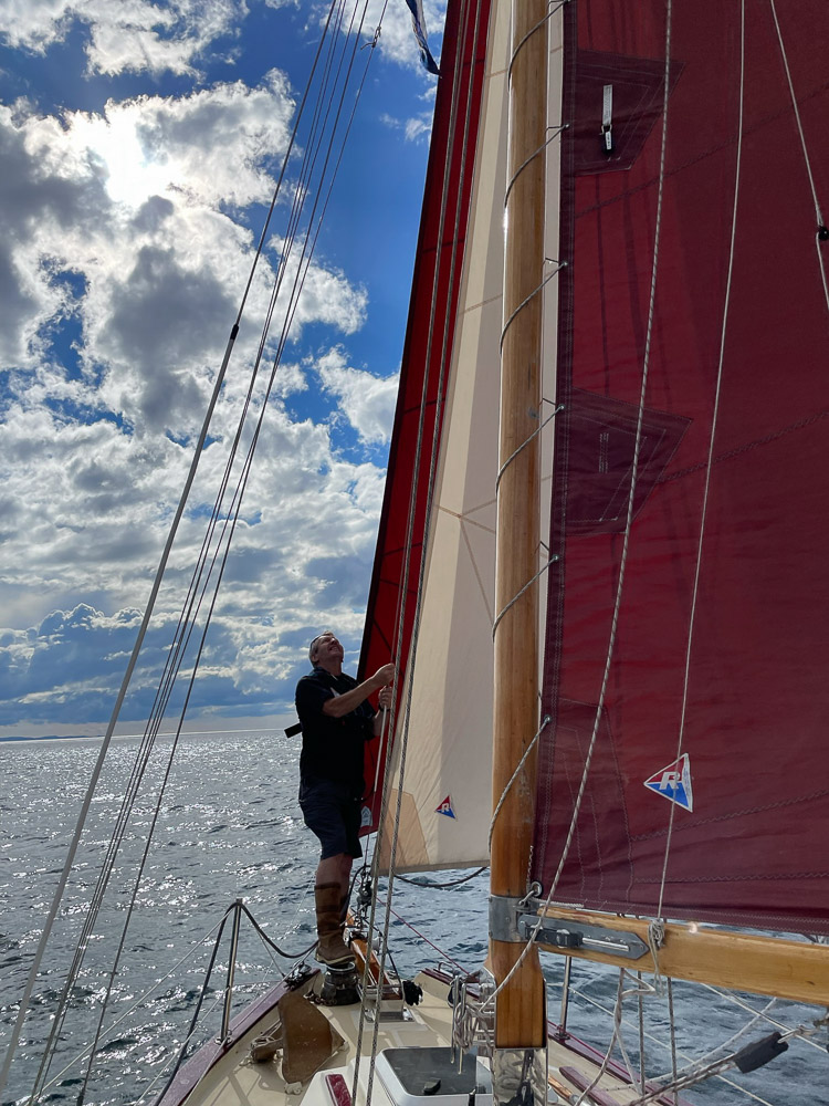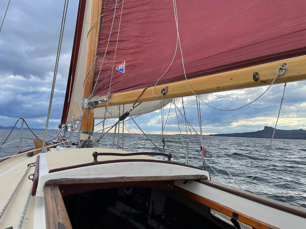 After a lot of faffing with the van – taking it to the Linnie marina, joe arriving by train we were ready to take Peggy on her last sail of the year from Mallaig to Linnie marina. The day started lovely and sunny with a nice wind for sailing, we saw a pop of dolphins. The weather got a bit rainy and blowy as we headed into Sanna Bay….I did get a bit sick!!