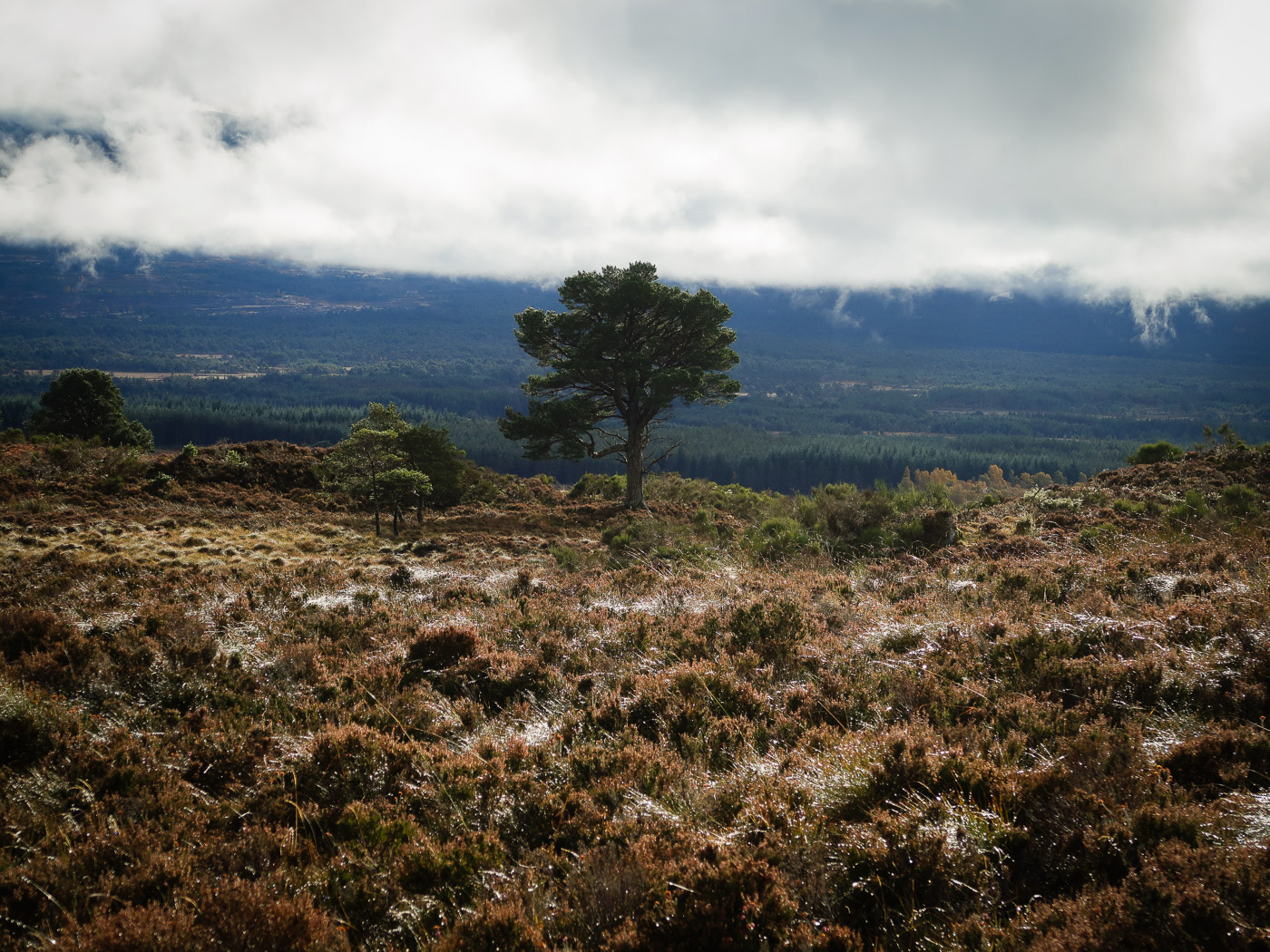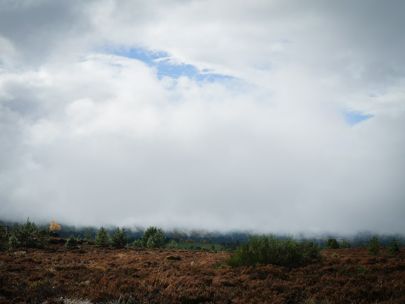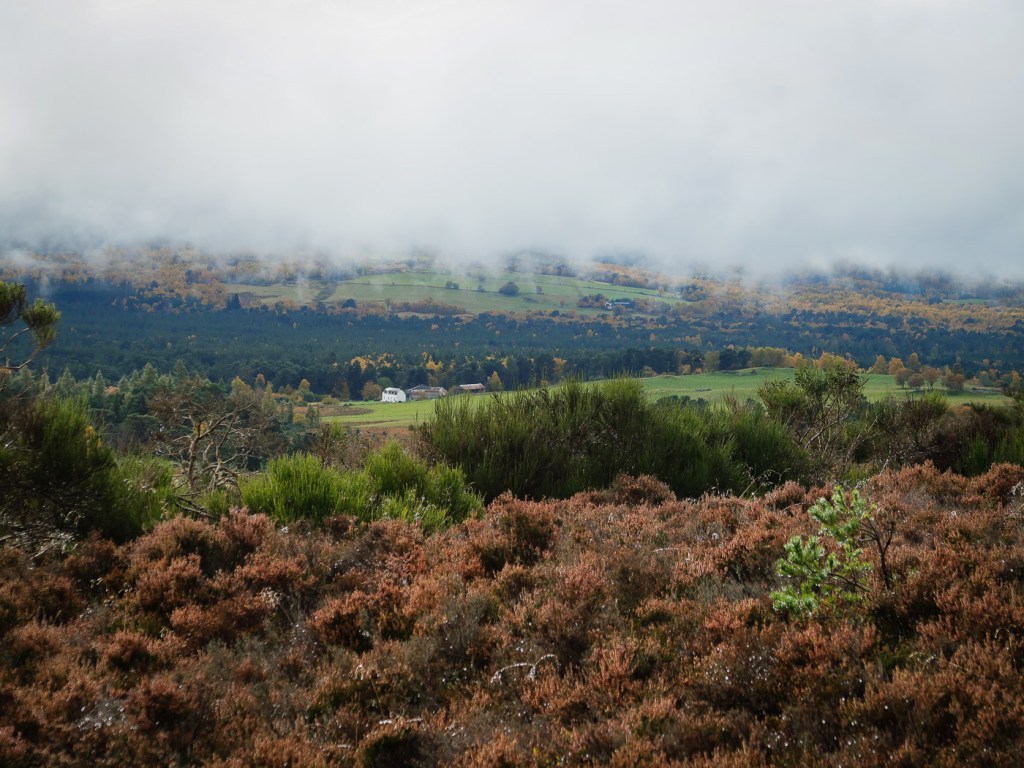 A hill I have often looked at and thought I would like to go up. It was a lot more interesting than we thought it might be. We walked part wat up on forest tracks and then across heathery junipery broomy boggy land, climbed a few fences had a bit of drizzly rain. The sun then came out for us as we got to the top. To get down more fences – some with a gate, boggy forest and a sheep field. An Excellent day and I got some interesting IMC photos of birch trees in the sun.