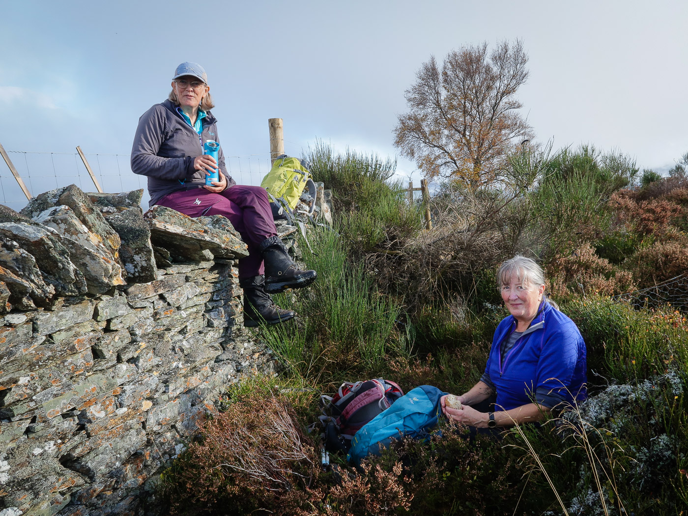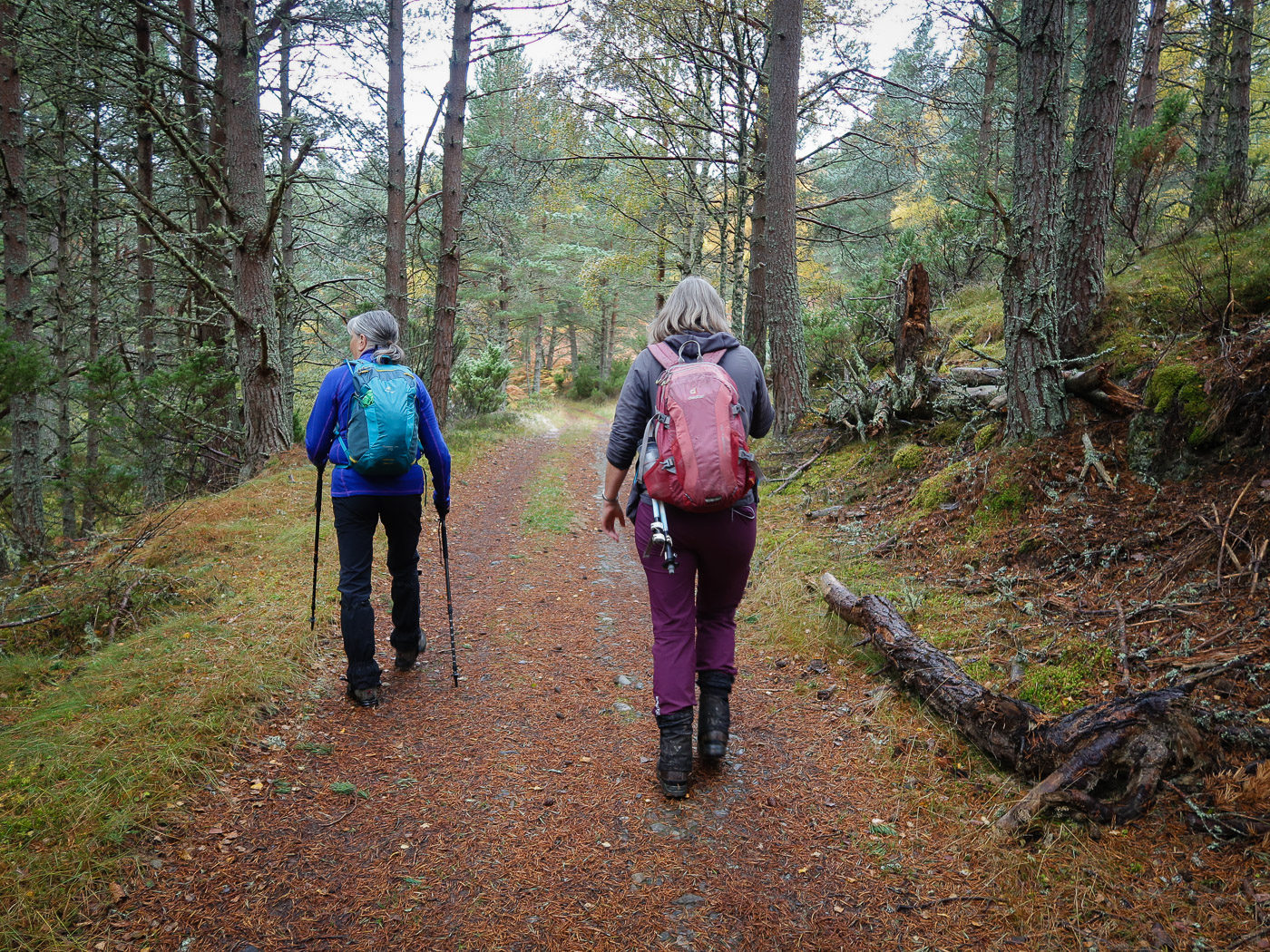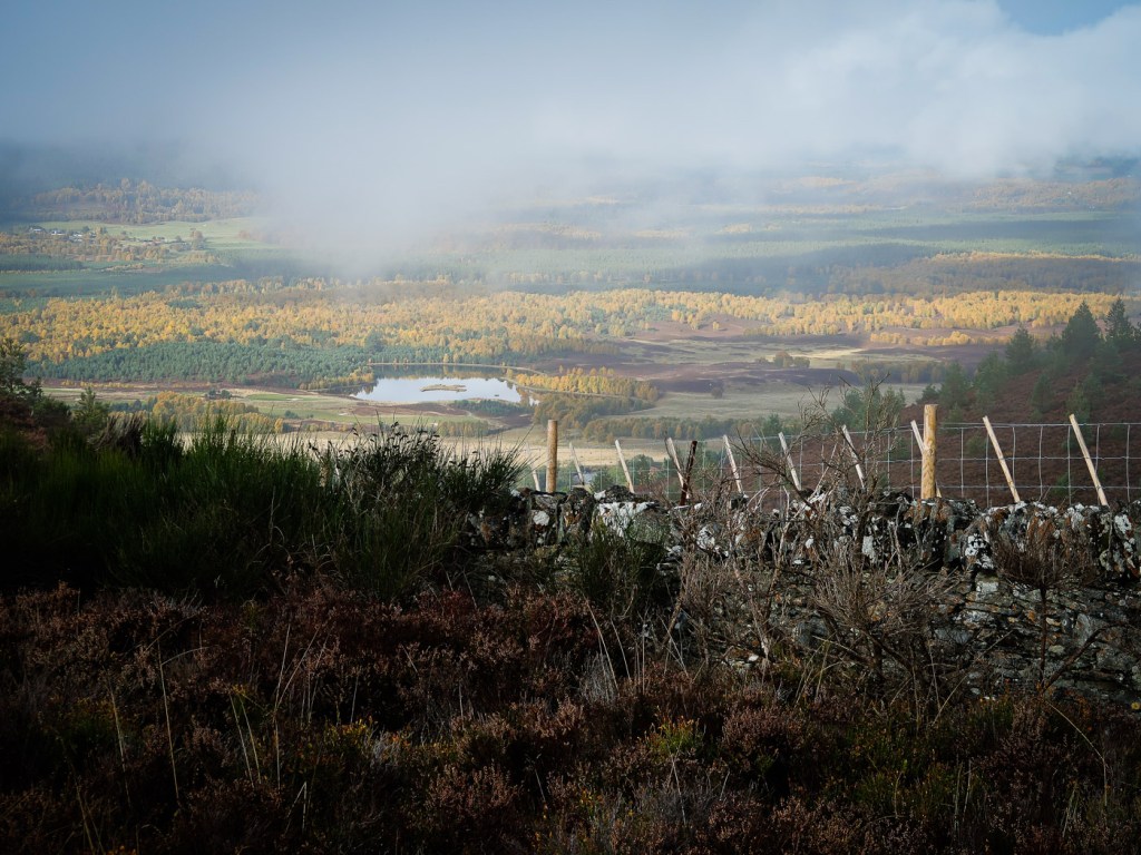 A hill I have often looked at and thought I would like to go up. It was a lot more interesting than we thought it might be. We walked part wat up on forest tracks and then across heathery junipery broomy boggy land, climbed a few fences had a bit of drizzly rain. The sun then came out for us as we got to the top. To get down more fences – some with a gate, boggy forest and a sheep field. An Excellent day and I got some interesting IMC photos of birch trees in the sun.