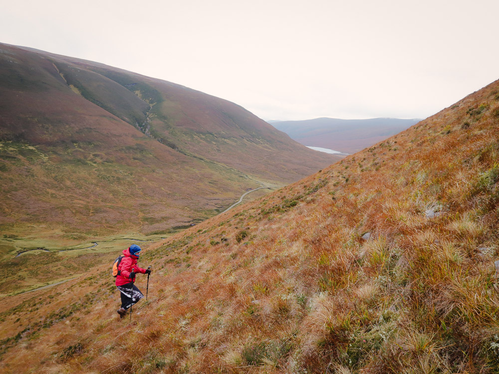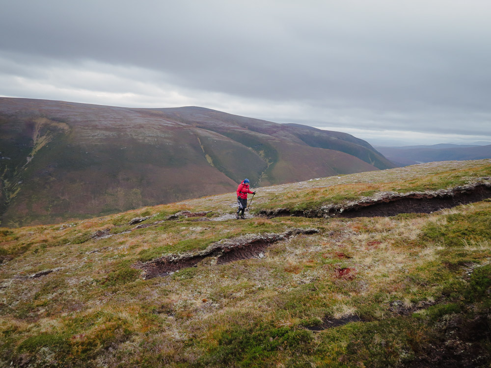 Very steep up hill then some lovely peathags and some steep traversing to a track – lovely…….