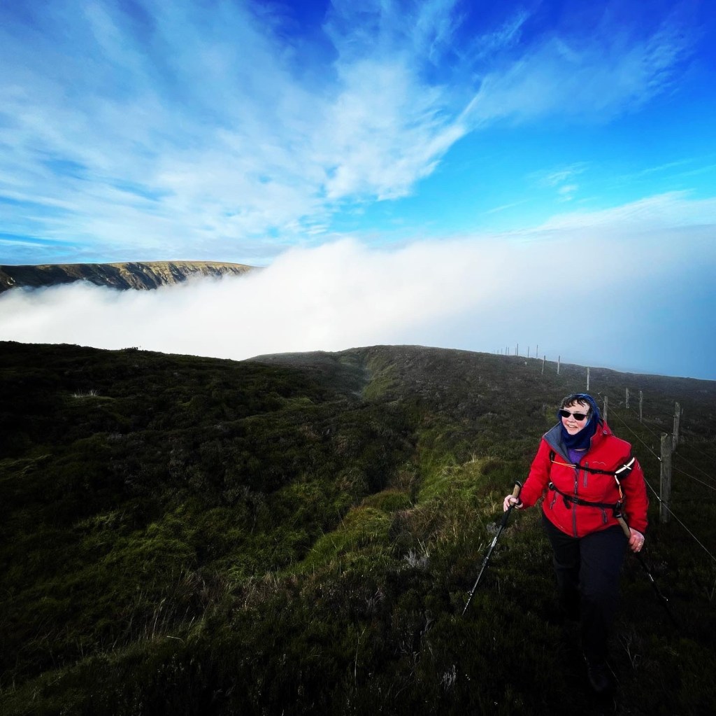 After a night in the van parked up at the Birks of Aberfeldy car park with Dot and Anne we headed down to the start of the walk. It was a lot and i mean a lot mistier than we were expecting! Parking on the road was more difficult than we expected too. Once we found a spot we were accosted by a game keeper who didn’t want us to walk but couldn’t stop us. They were stalking the next day and he seemed to think we would scatter the deer into another county. He wanted us to just walk to the loch which we did but then we nipped up the hill. We did change our plans as we had planned a circuit. We didn’t see any deer and he didn’t even know which hill we were going up before he tried to stop us. Glad we went it cleared as we got higher up. A great day.