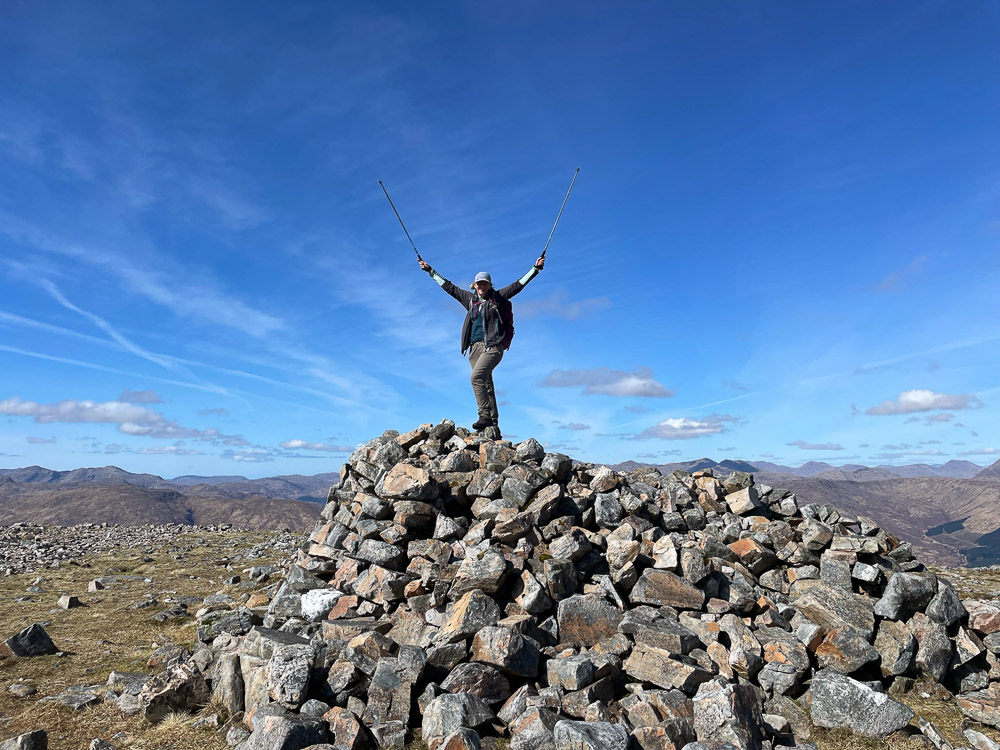 Anne Marie and I were on our way to the Ladies meet at Strontain due to the Corran Ferry being out of action we had a long drive round via Glenfinnian so what better way to break it up but a wee jaunt up this hill. We had a track almost to the ridge and then a long upward walk along the ridge to the top. The top was surprisingly craggy on the other side. We retraced our steps back to the van. A glorious sunny day……I think I caught the sun a little