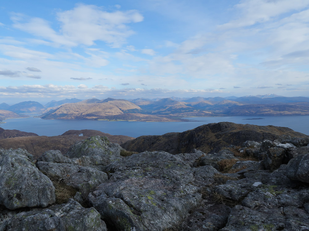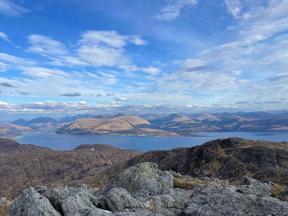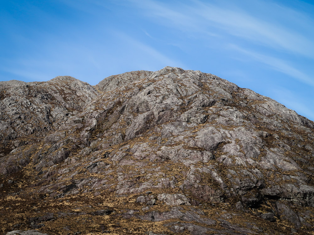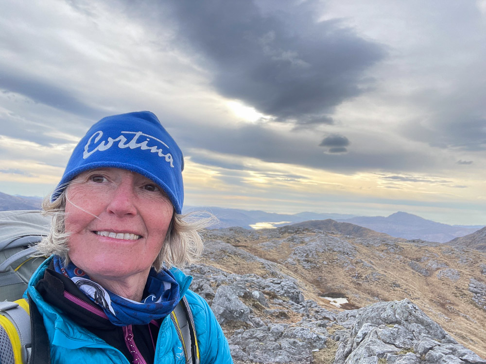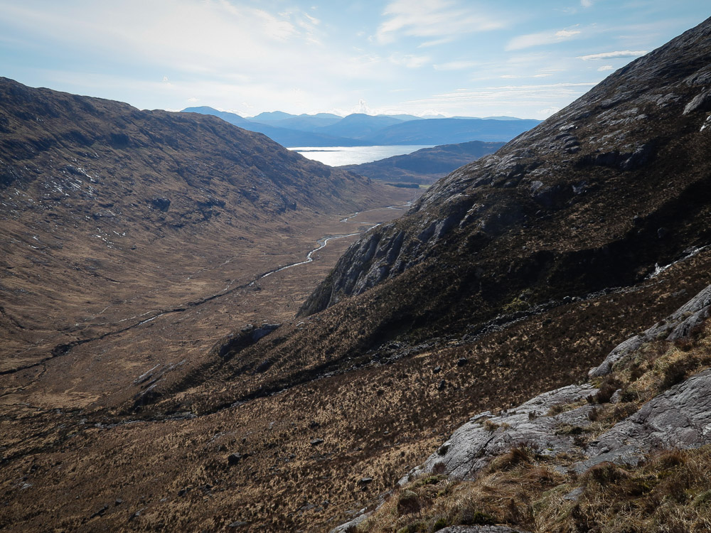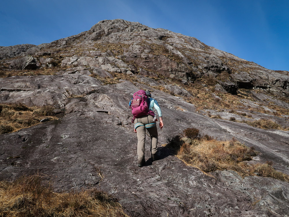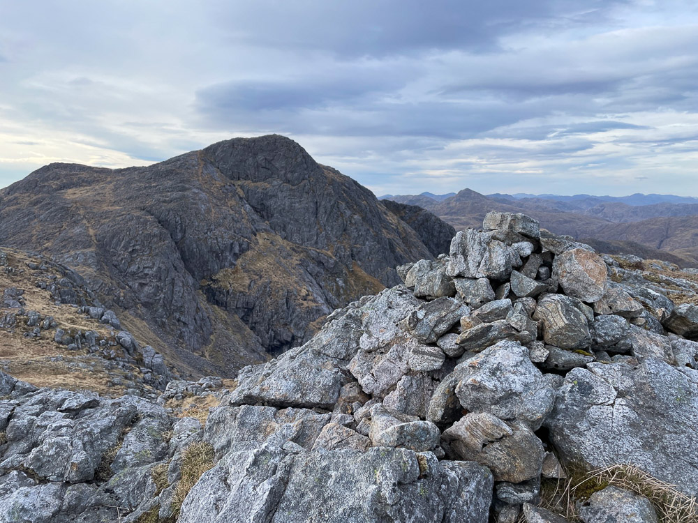 It was a totally stupendous day. the scramble was brilliant, followed by an interesting traverse round to the climb. The start of the climb was scrappy but the ridge was excellent. by the time we got to the ridge it was getting blowy and cold – also a little late so we didn’t hang about. A big boots climb! it was a long walk down……but back to the van before we needed our head torches and back to the hut before the ladies had finished their main courses. I then found out from peak hunter that this was the hill that Joe and Sam climbed in the mist when we were staying in Mallaig with the Americans