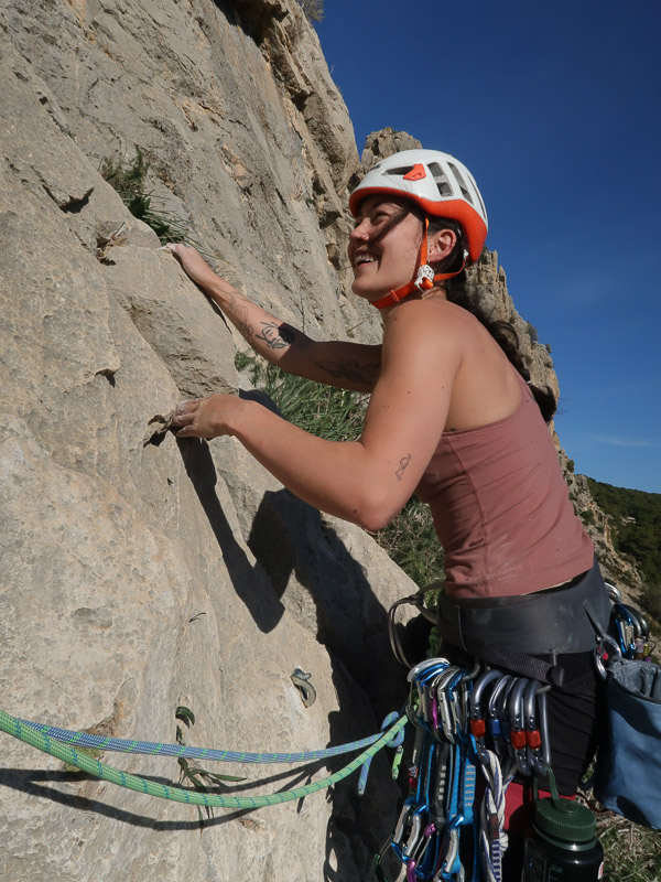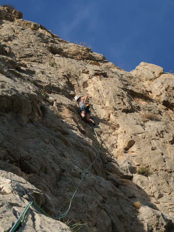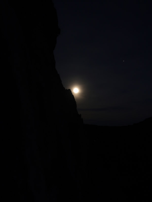 I did wonder if I had bitten off more than I could chew with this one! a 4 pitch route graded at 6a with a 4 pitch ab to finish but although I was tired I was climbing well and up for it. We got the the bottom of the route but were delayed as there were two people on the route who turned out to be going slow and wanted us to wait while they abseiled down…..not sure why but we did. Went up the first pitch of Bombay sapphire while we waited. It was a hard route and we ended up getting up any which way!!! I don’t know how Emma managed the last two pitches they were so hard. I lead the first. We abseiled down by the light of the full moon. It was a truly glorious day. Tomorrow I rest.