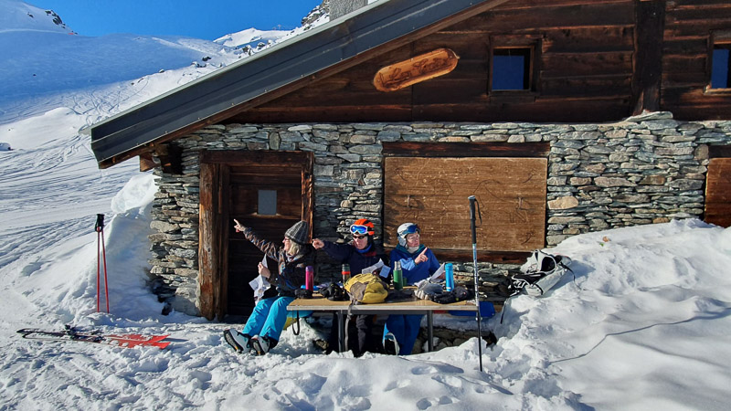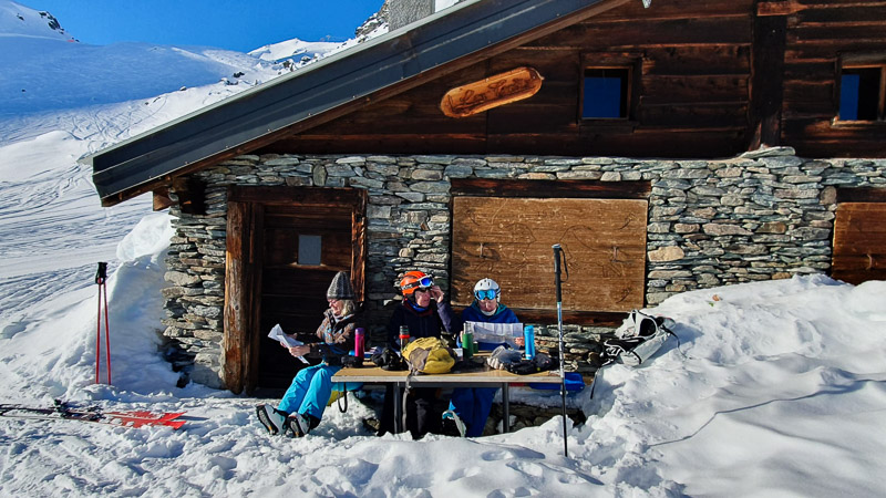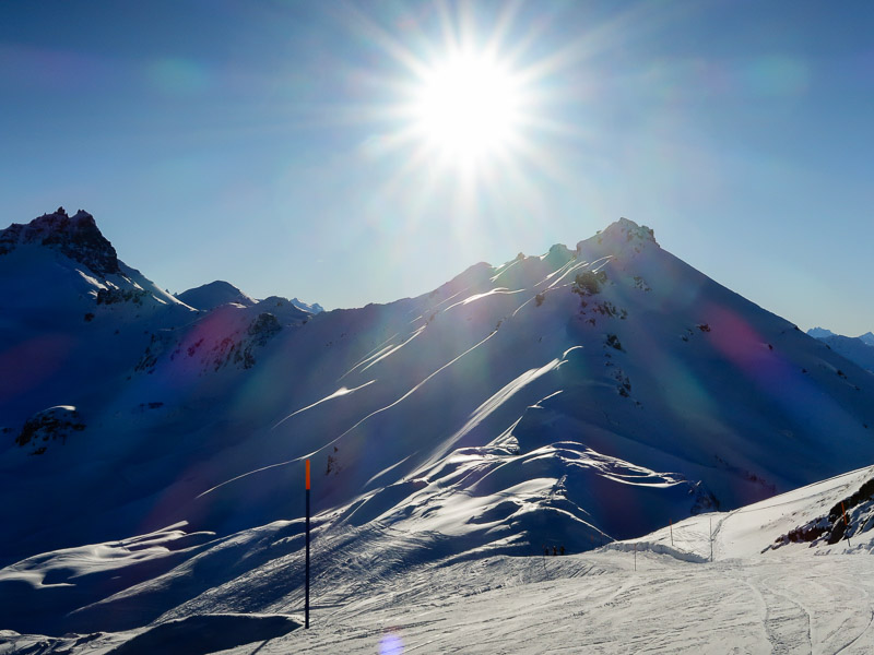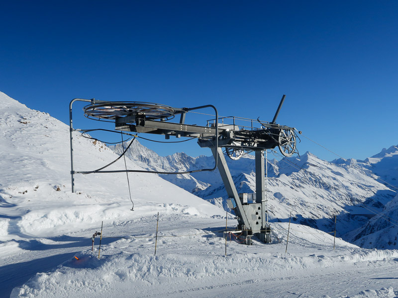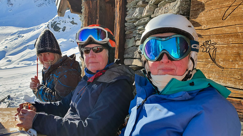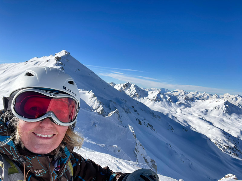 The first day we headed to the nearest lift up to Grimentz. It was a wonderful blue bird day , no wind. I was a little apprehensive about how my new skis and boots would be but they are shaping up to be lovely. We stuck to blues with an odd red to get our ski legs going.