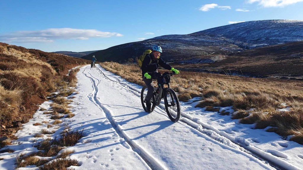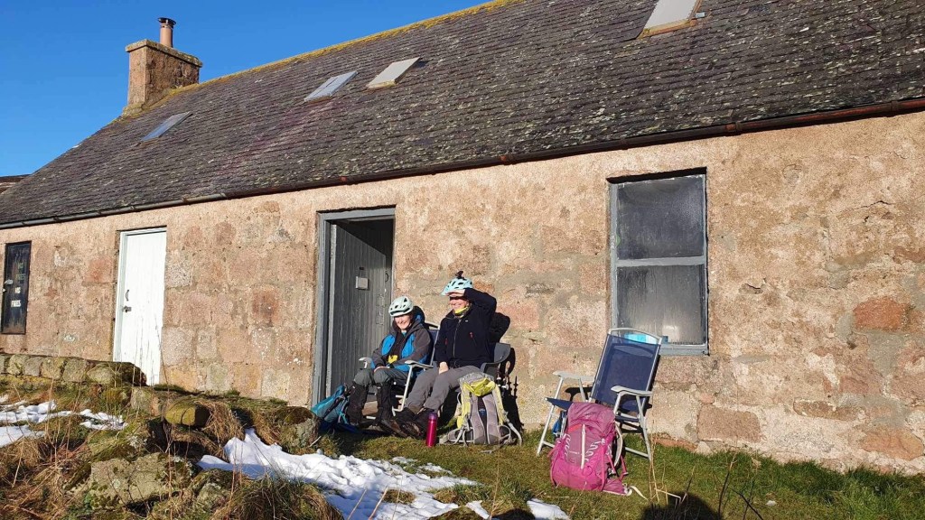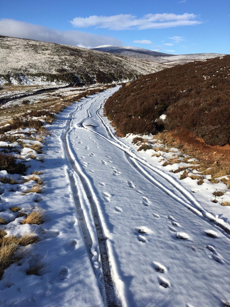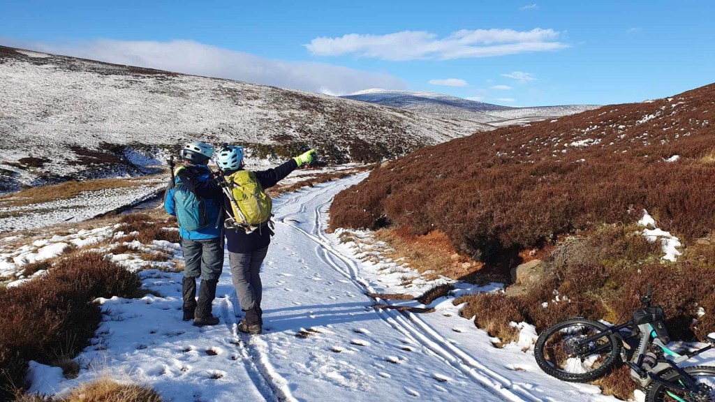 Our intentions today were a bike and hike up Mount Beatock. It was always going to be ambitious but with the added difficulty of snowy tracks we were defeated. It was ok up to the Charr Bothy where we had lunch but after that the crunchy snow got harder and we decided to save it for another day. We returned to the bothy for the rest of our lunch and headed back to the vans for tea and cake.