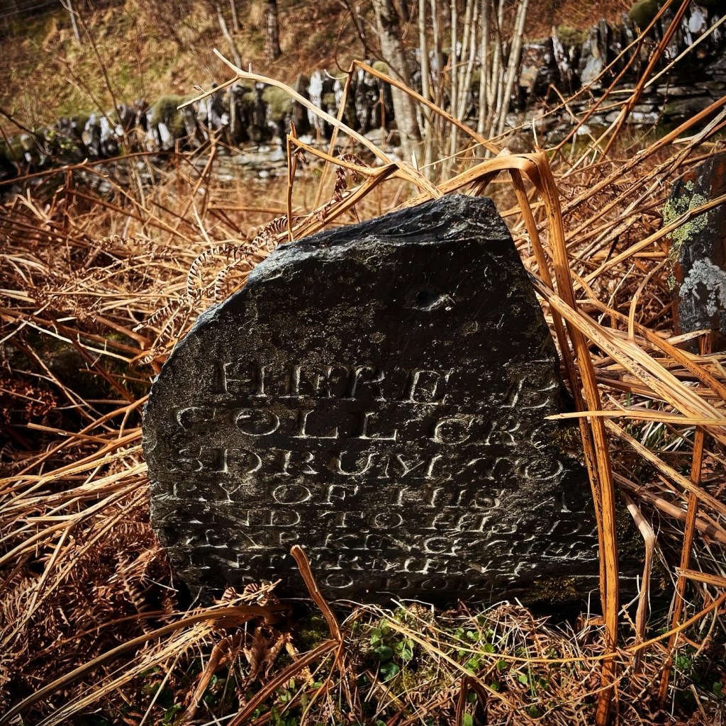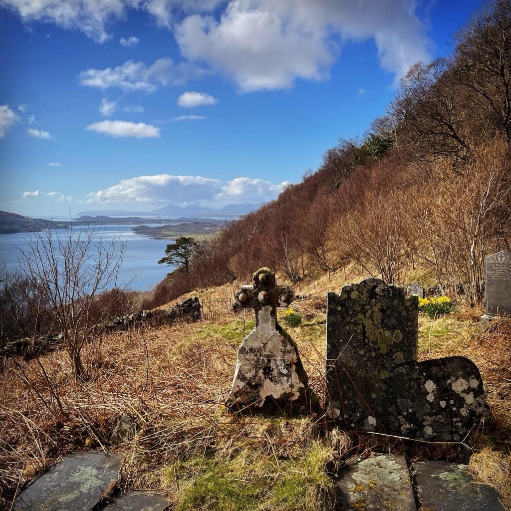 I decided not to follow the route in the Hugh’s book because I wanted to visit the old burial ground on the way up the hill. The burial ground was very lovely but oh dear what followed next! Very steep scrub. Then very steep hillside but what lovely views of the higher hills all around. I had picked a lower hill as my energy levels were pretty low after a few days working on Peggy and living in the van. My choice of route for the decent was probably worse than the accent.