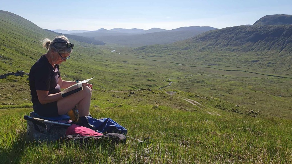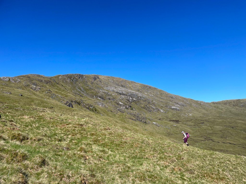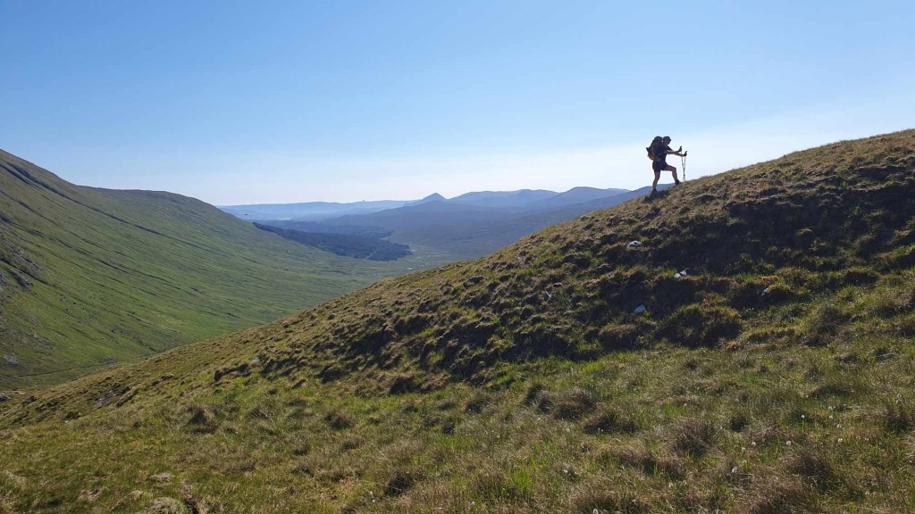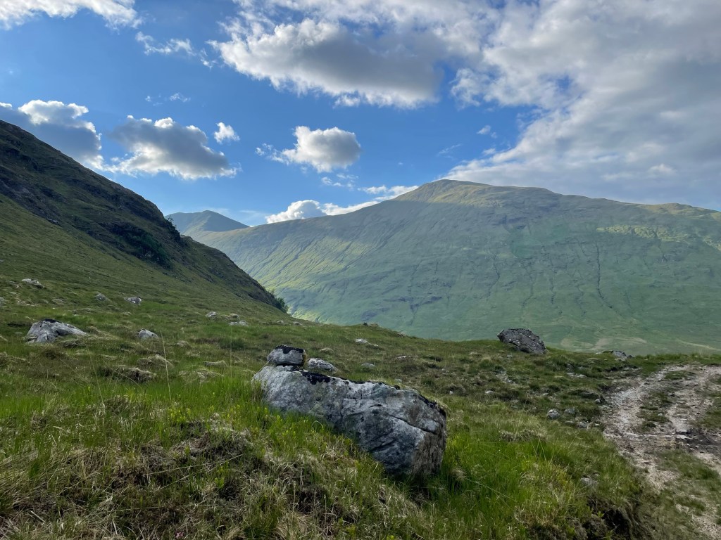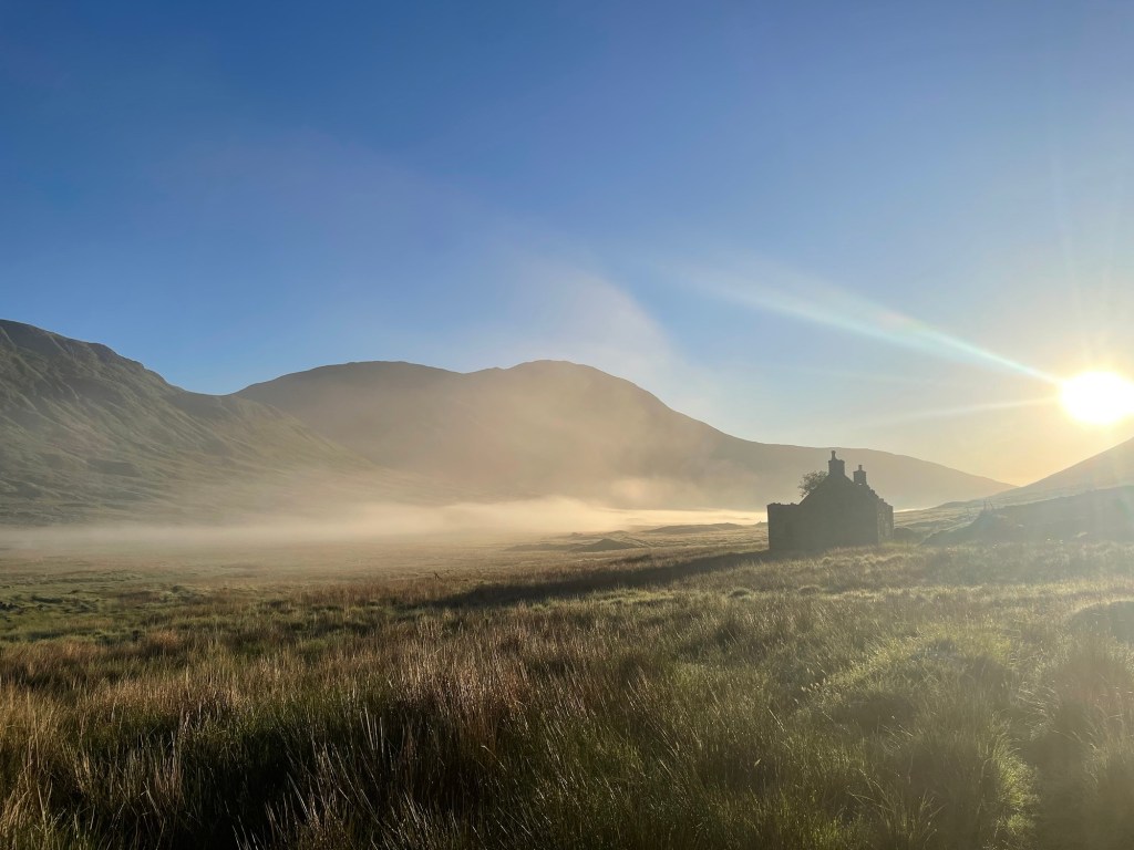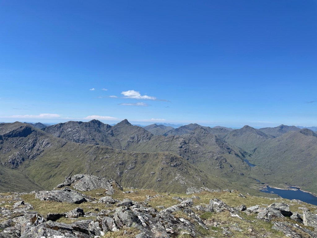 This trip had been planned for a while. The Munro is one of my ‘bottom five’ and so the first bottom five I have been up. After a very nice ladies meet at the Glenfinnan sleeping car, Anne Marie and I spent a night in an idyllic park up by the river. Of course I had to have a dip. After a slow start we drove round to end of loch Argaig and set off at about 4.30 for kinbreak bothy. A fairly hard walk in after the efforts of the last few days but we made it! And there we no one else there. I pleasantly night in the bothy and we woke to an amazing day. Mist in the valley and then a blue bird day. Not too hot as a nice breeze which also kept the midges away. We walked up over the Corbett and then left our sacs in the bealach while we went up Sgurr Mor. Fantastic views. The decent from the Col was very steep and grassy. Then a trudge up to the pass and back down to the track….that was hard work……then a bit of a track walk back to the vans. G&T and food and sleep. A most excellent day. We even got back before it rained