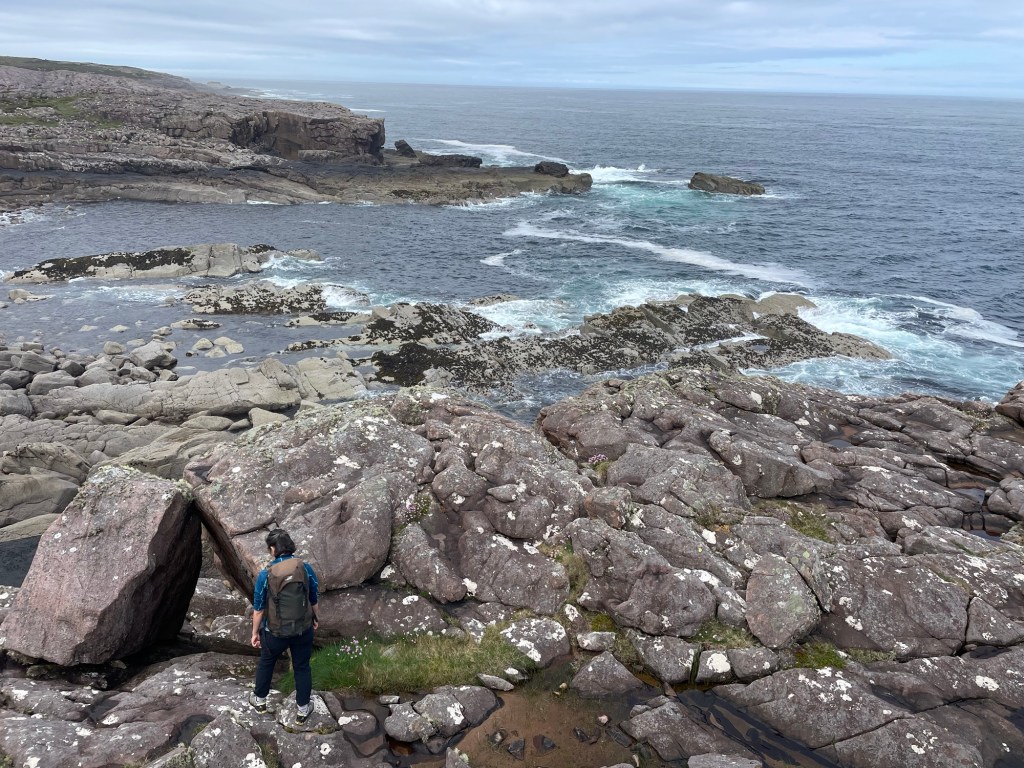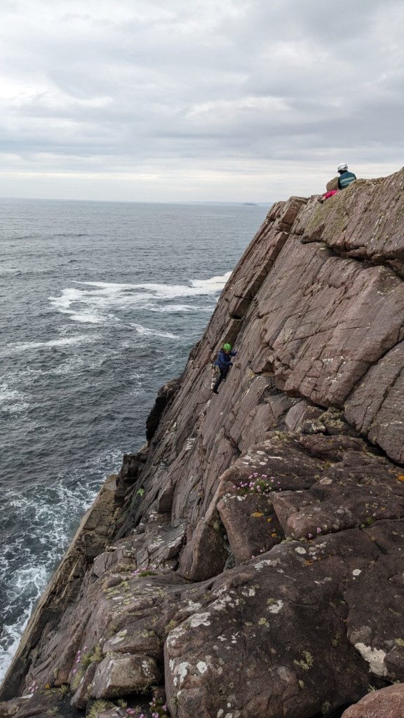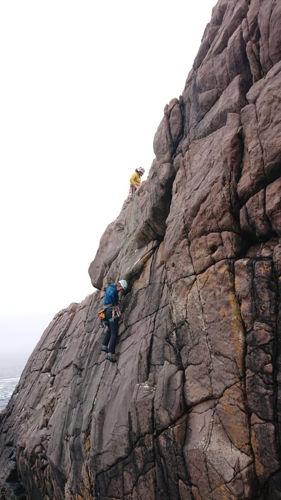 At first we went to jetty butress but it looked very midgy and also quite a few people there all with midge nets on. We thought a coastal crag might get more breeze so we headed to Opinan slabs. A good choice.