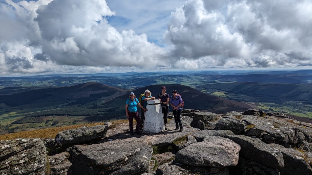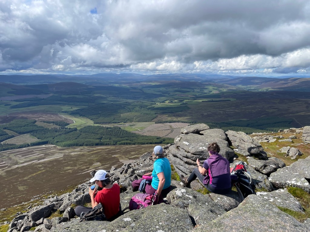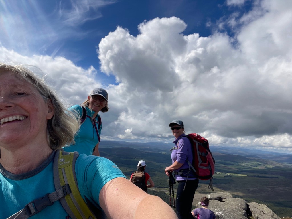 I was going to stay home and sort things out after being away and my first day back -yesterday I went to the climbing wall! I was easily persuaded to go up Ben Rinnes with Alice Christine and Liz as well as Anne Marie. Always good to repeat a hill to prove I am not a bagger ha ha