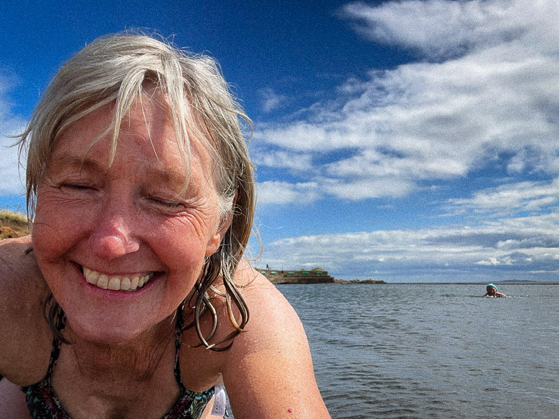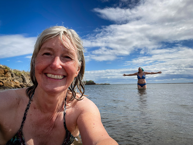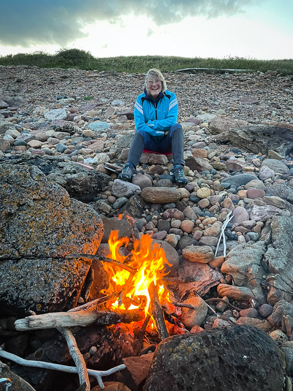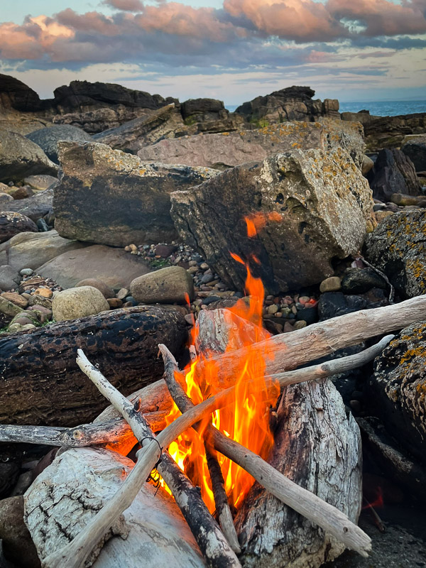 A two swim day, easier riding and a lovely campsite with fire. A race to catch Anne involved a bit of road riding.