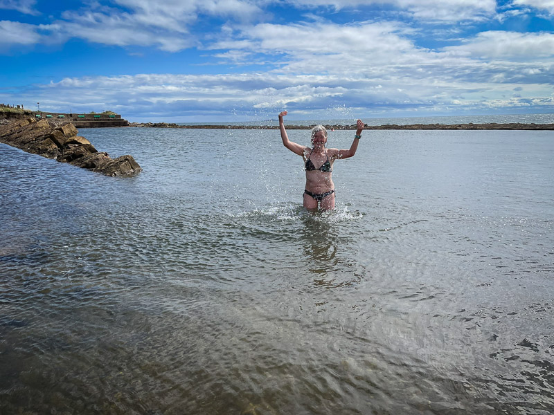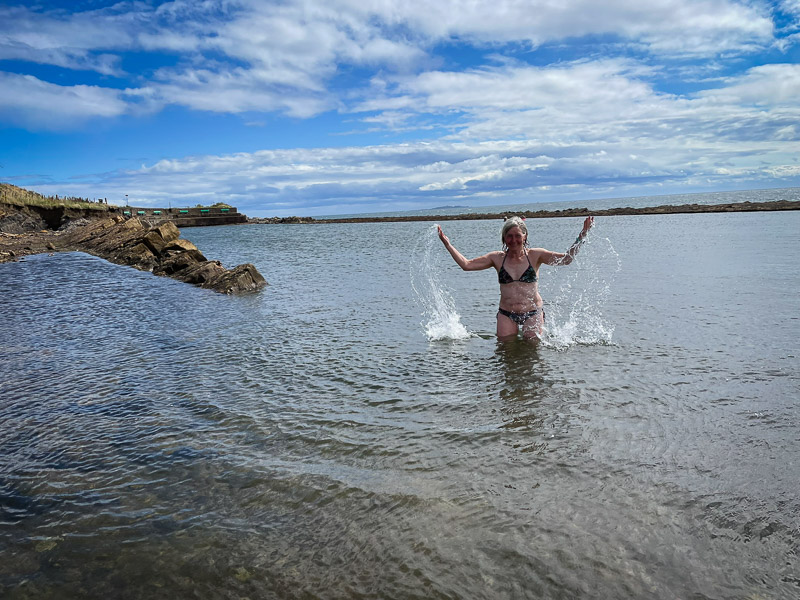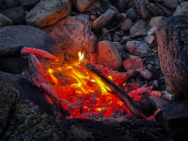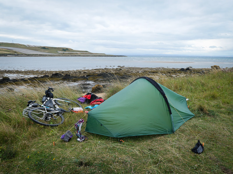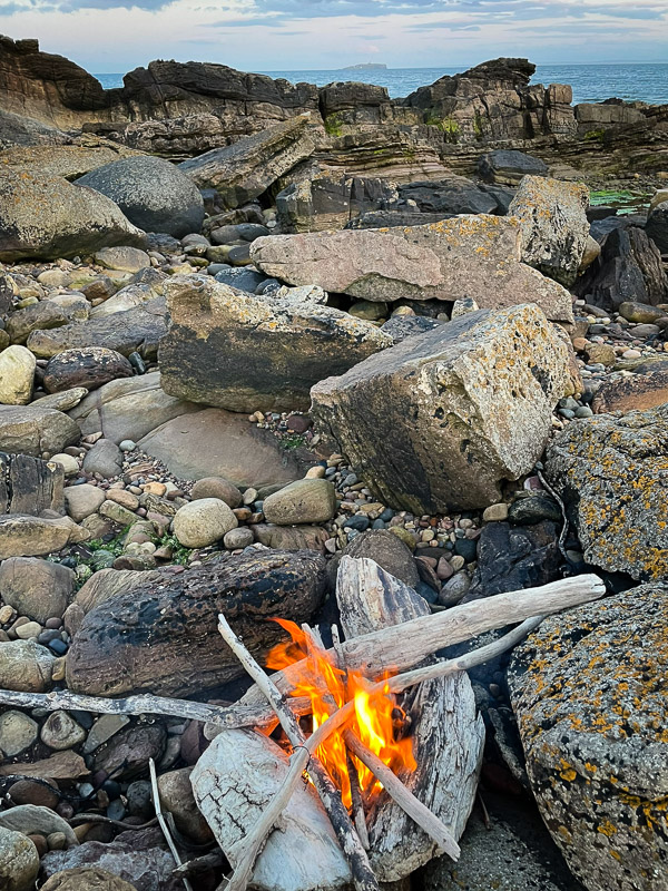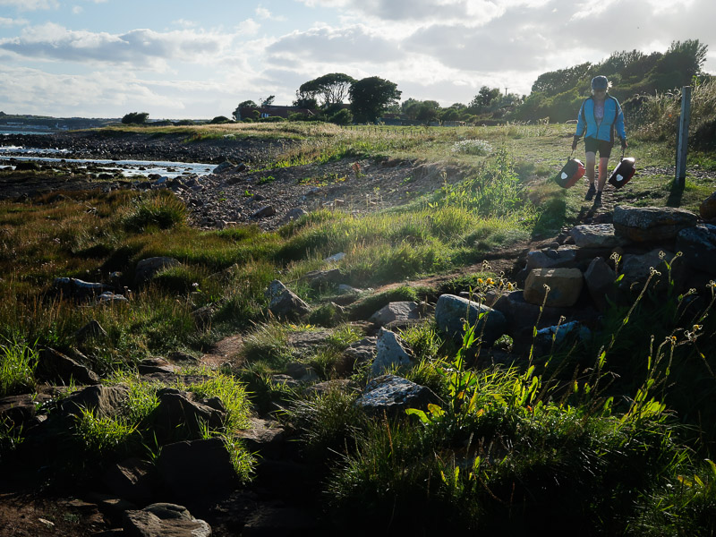 A two swim day, easier riding and a lovely campsite with fire. A race to catch Anne involved a bit of road riding.