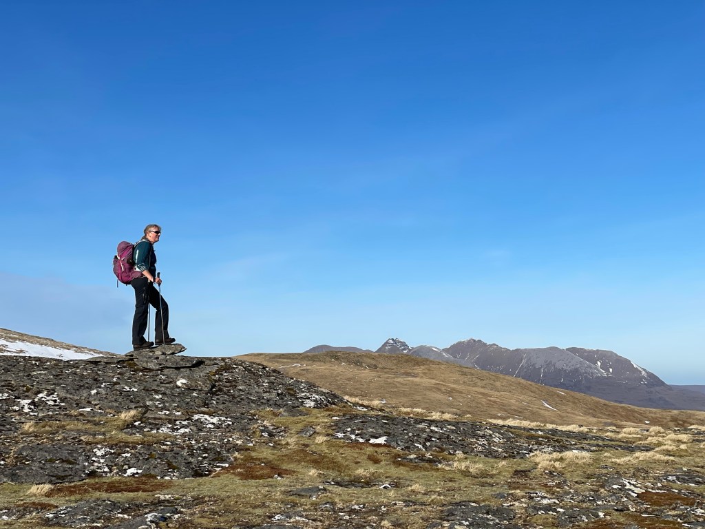 A hill on the way to the meet at Ronnan. We spent the night in the van then set off in the morning and hen drove over to the meet. Lovely day. Cycled to the bothy and walked from there. Good day. Great views. With Anne Marie.