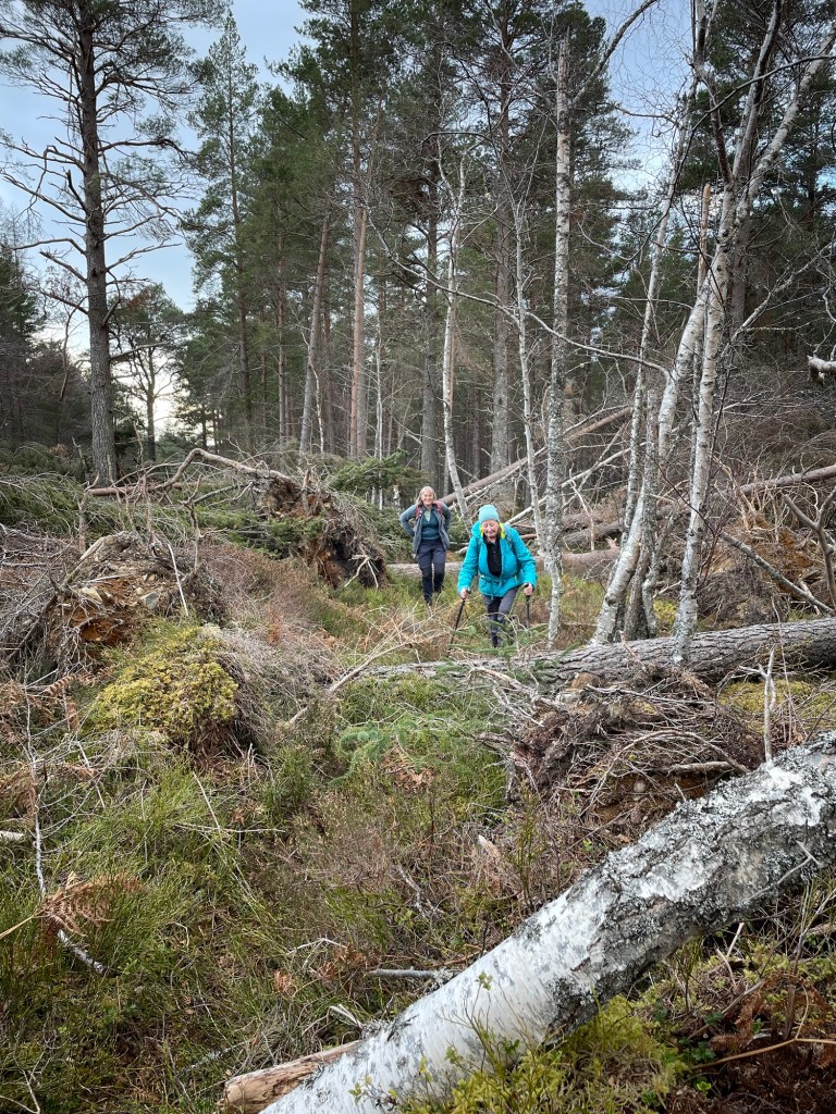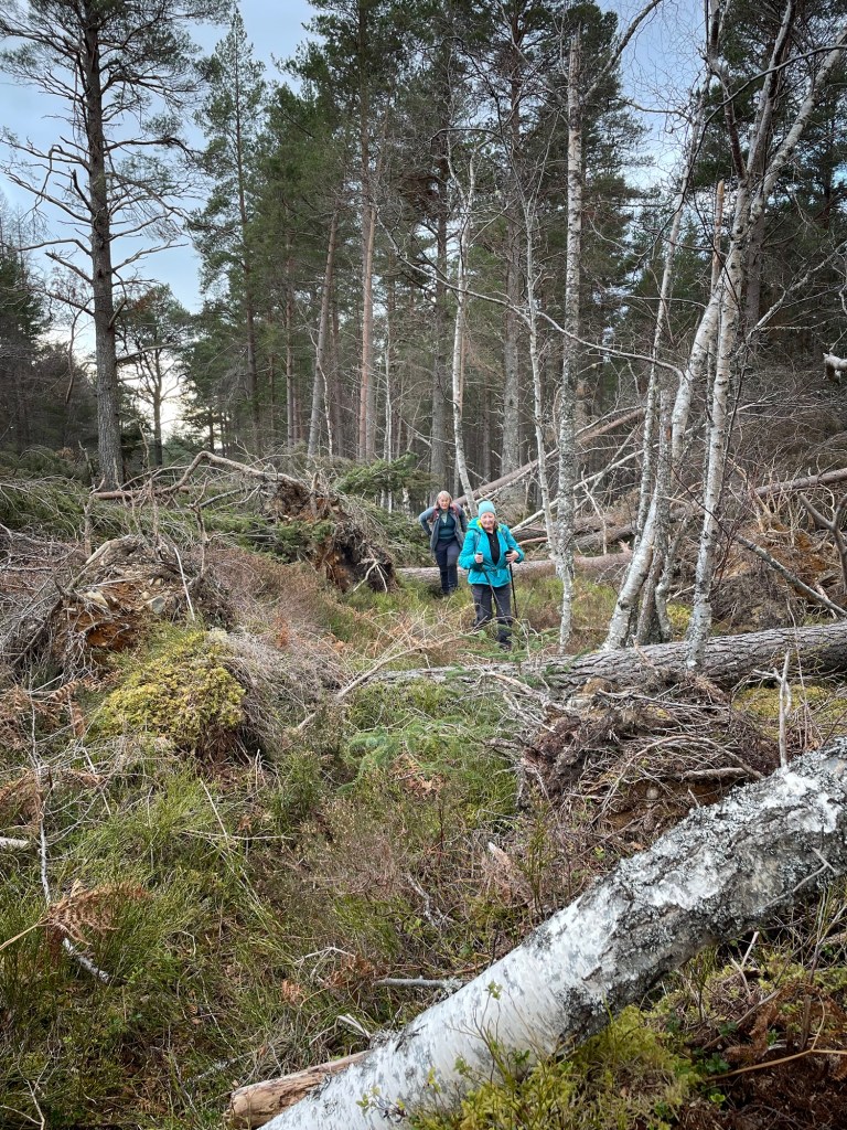 A wee walk with Dot and Anne Marie. Lots of fallen trees blocking the way.