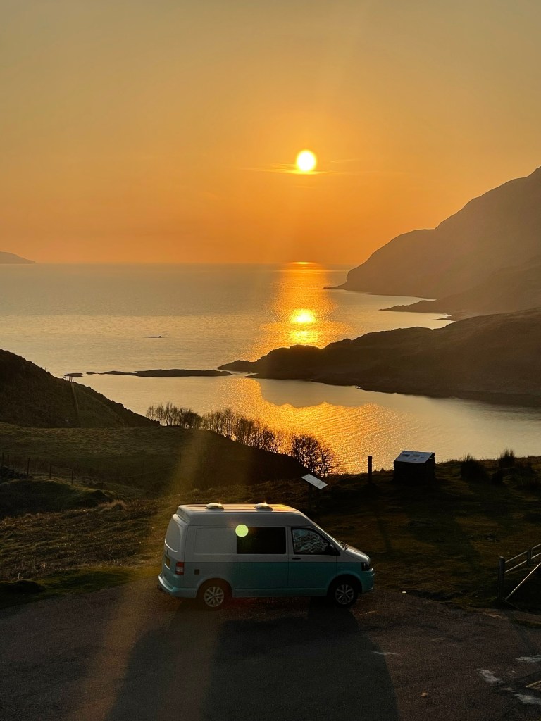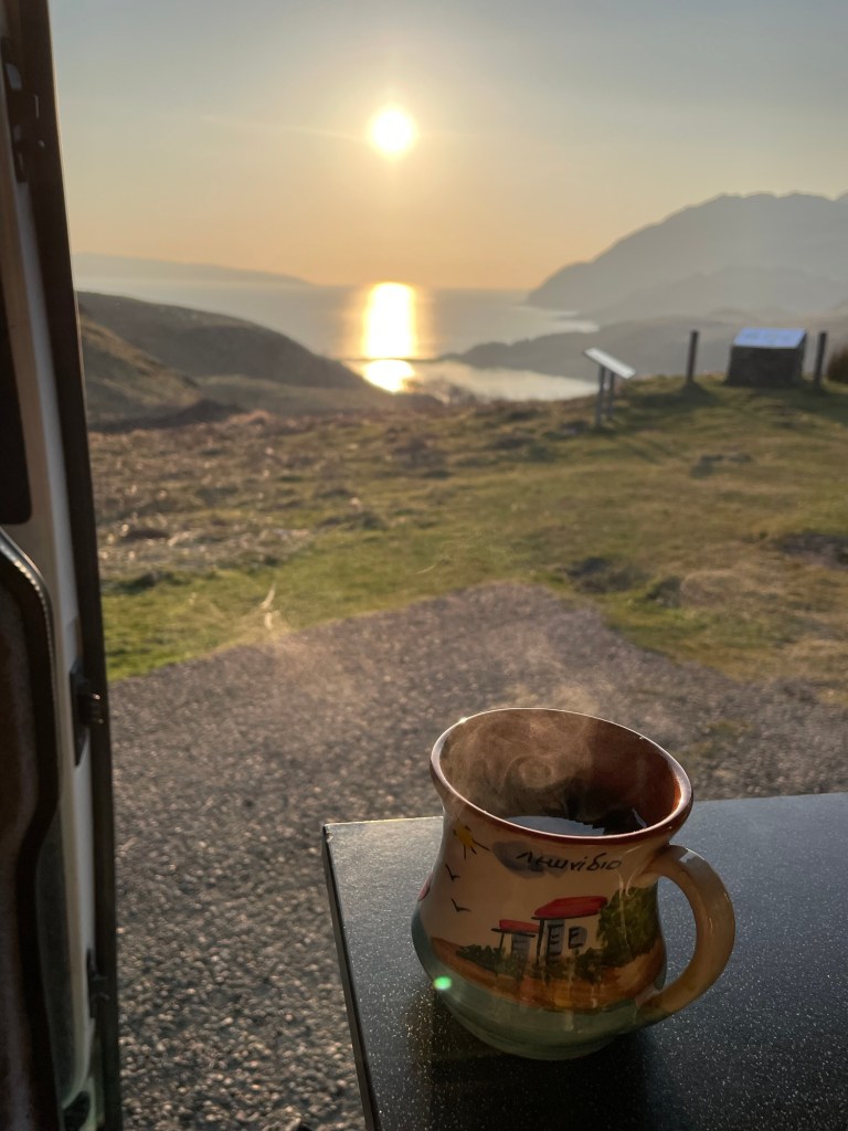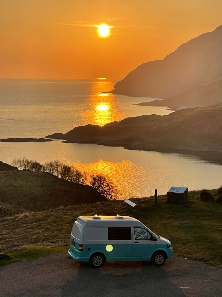 The weather has been amazing this week but I just got a bit overloaded and it took me until Wednesday to get away. Still not right from jabs limes and bugs and other stuff! So I headed to Ardnamurchan in the van after spending the best part of two days sorting it and the house out. Two lovely parking spots and a wee hill. Which was a most excellent hill. I can tell the weather is changing but Sunday we head to Spain for some hot rock climbing.
