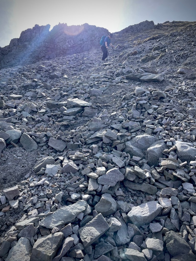 I had to dip deep. It was steep but little in the way of scree. Some boulder fields. An interesting hoard of helpful stuff at the top. I thought I had cracked it but the decent was horrible. A lot of scree. Like loads, I traversed a way round the last run and was glad I did. Only fell once. I have a nice bruise! Well done me!