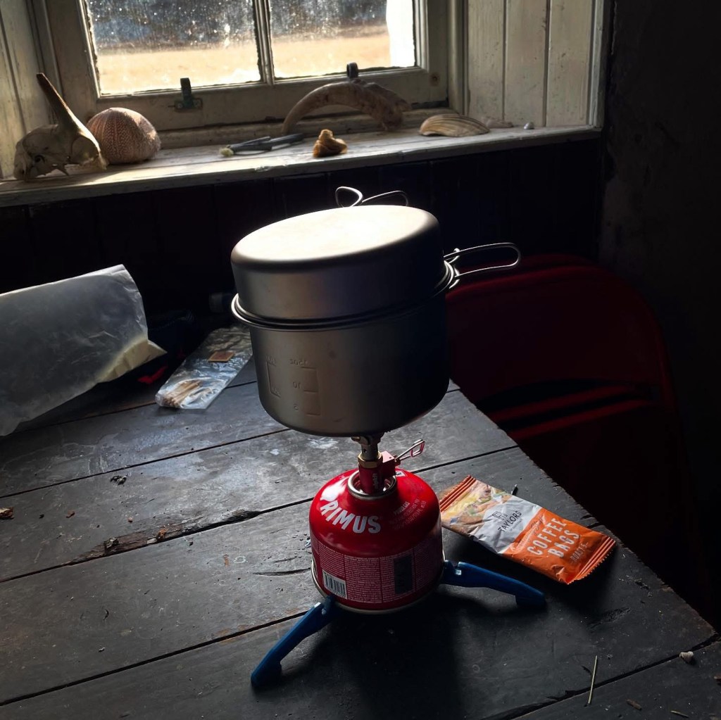 What a beautiful place and a lovely little bay and beach. No one else here we settled in to the lighter room with an excellent fire place. After a walk on the beach to find the cave. We did! And look at the tide coming in we came inside and lit the fire. It got quite cosy and an excellent evening was had. The dehydrated meals. The orange ones we ok and we enjoyed a can and later some Cointreau out of my new flask.