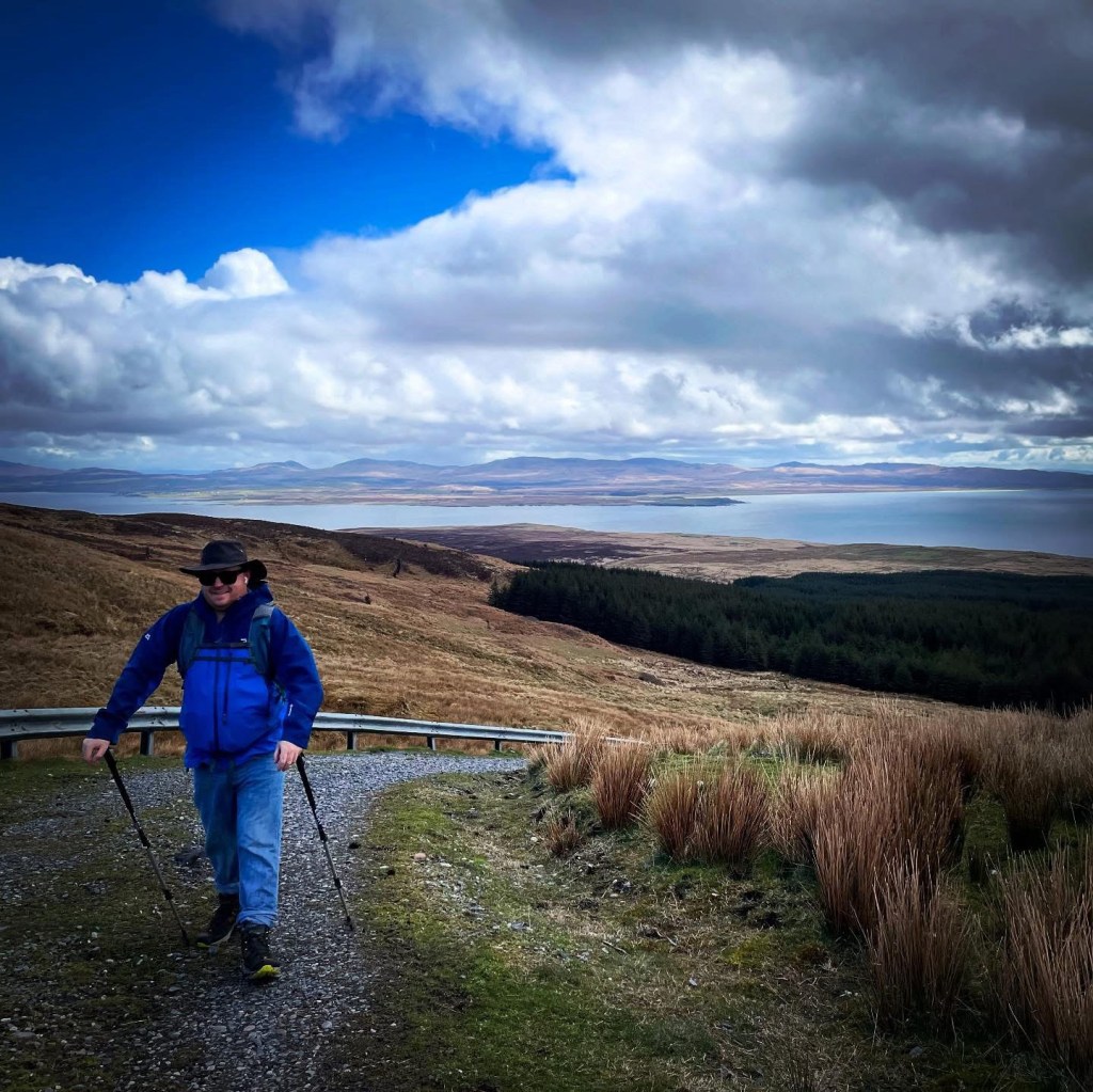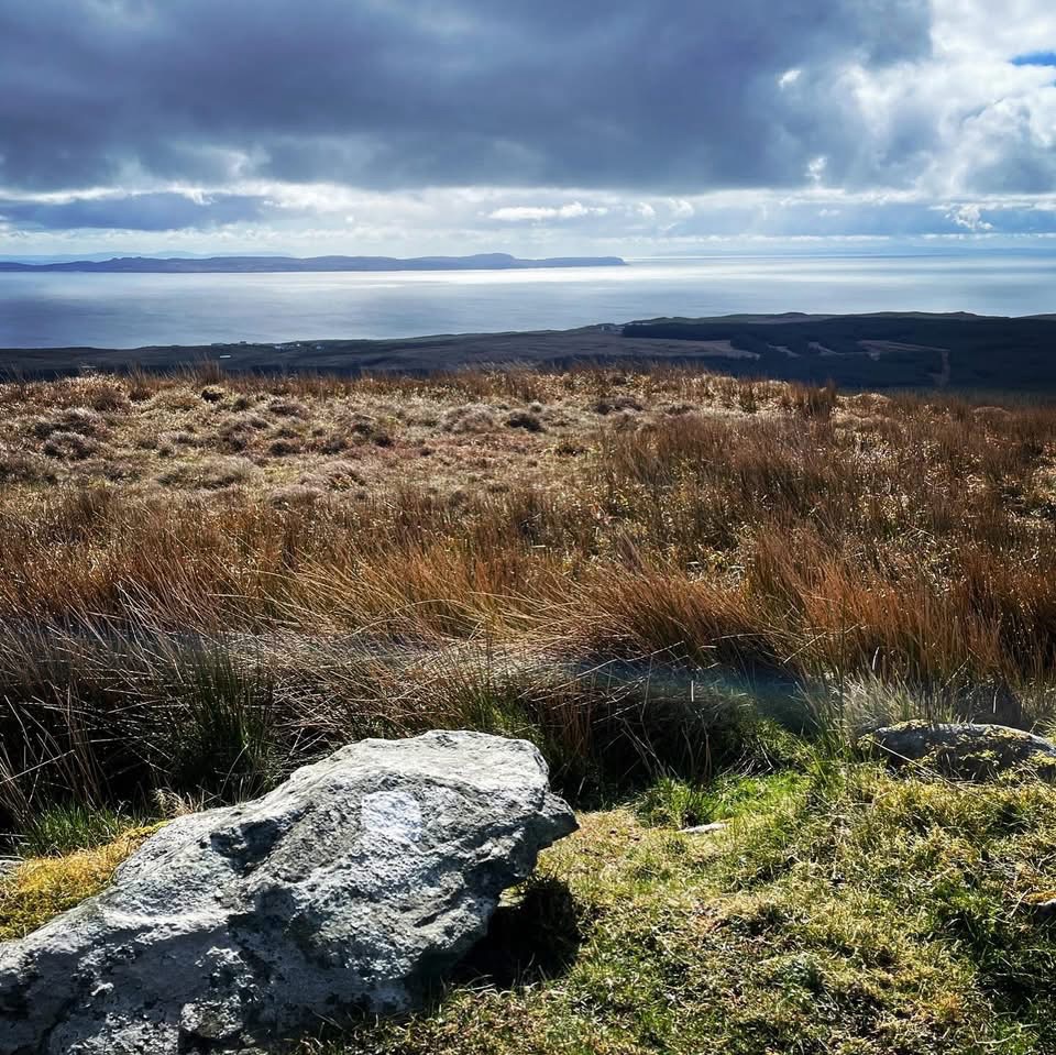 It was our last day and yesterday was wet so we visited distilleries. So it was lovely that today was sunny. Still windy! We are both getting a bit tired it has been a busy holiday but we pushed ourselves to get out and we were rewarded with fantastic views across to Ireland from the top of the hill. We then noticed that there was a chambered cairn in the woods near by to we decided to go and explore and try and find it which we did. It was dense woods with boggy breaks. What fun. Deffo worth it for the lovely 5,000 year old chambered cairn. After a late lunch at the campsite we walked over the rocks to port Charlotte. We saw an otter and had an ice cream. Now chilling in the van looking out over the bay. Saw the otter again