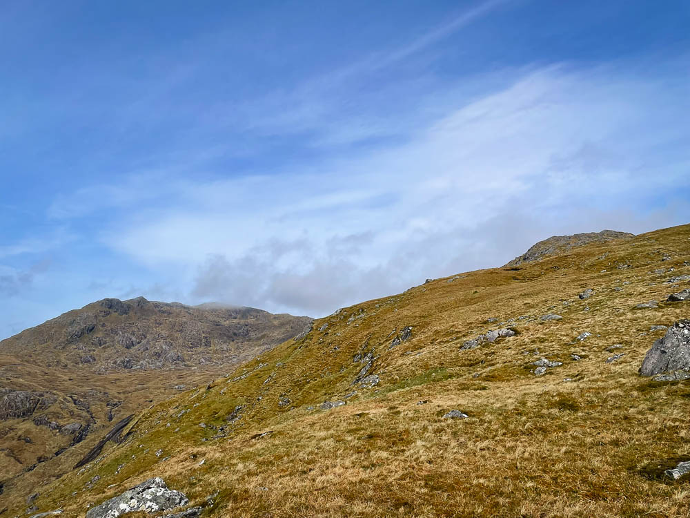 this was a two day trip, my first day was a solo jaunt up a Corbett that i had had my eye on for a while. a glorious day, a lovely horse shoe. I got back to the van and met up with Janet who was going to camp. we had a jolly evening and went to bed in anticipation of another hill tomorrow. There was no signal at the car park and Kenny worried that he hadn’t heard from me since I was half way down the descent call the police. Two officers were dispatched to check up on me. about midnight they knocked on my van to check I was ok!!!!! Took me ages to get back to sleep and it was well into the next day before i got a signal and could talk to Kenny boy!!!!!