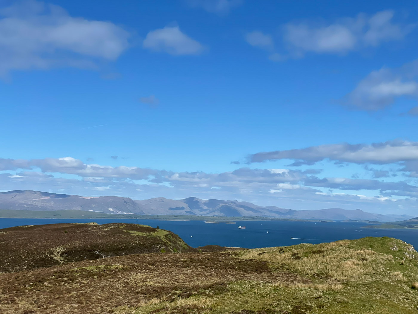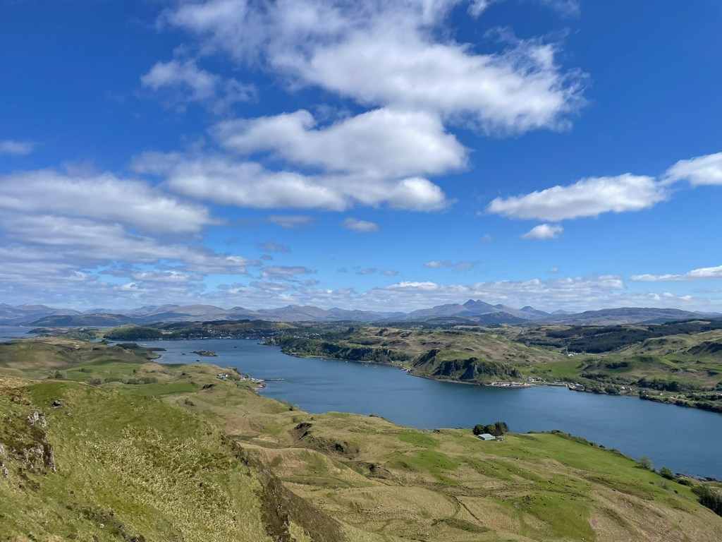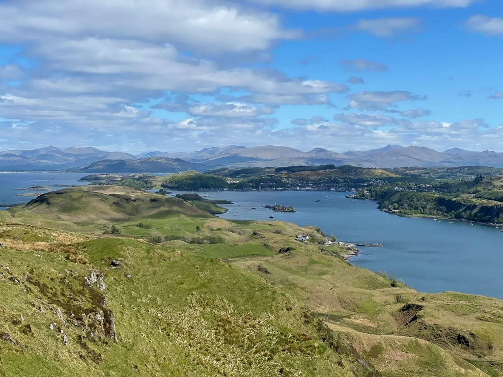 You have to love a wee hill. They often are mountains in miniature and this one was no exception. I took the ferry over to Kerrera to see Kennys new boat and as i had my bike I thought a wee bike hike up the highest point – which happened to be a sub 2000er.