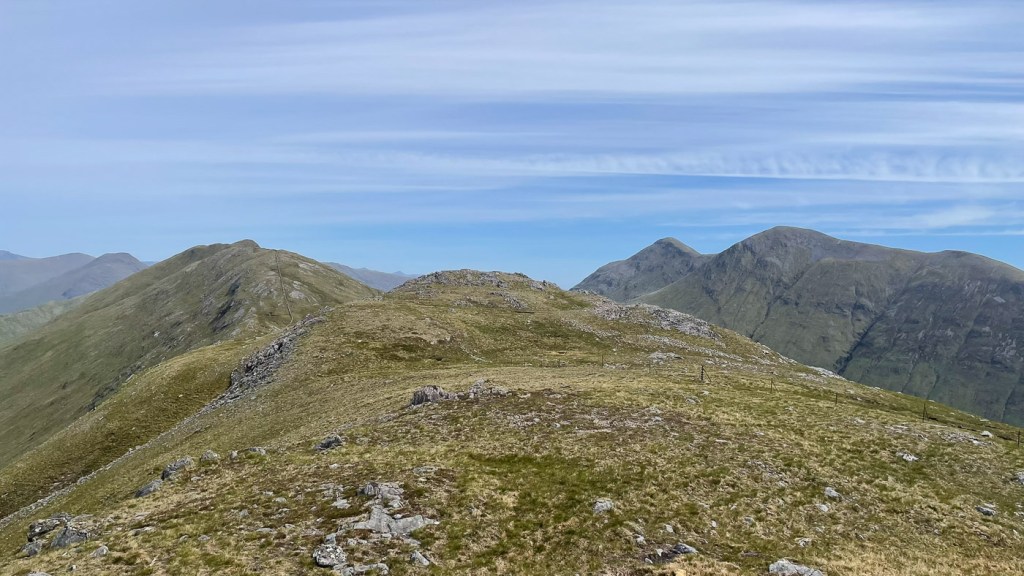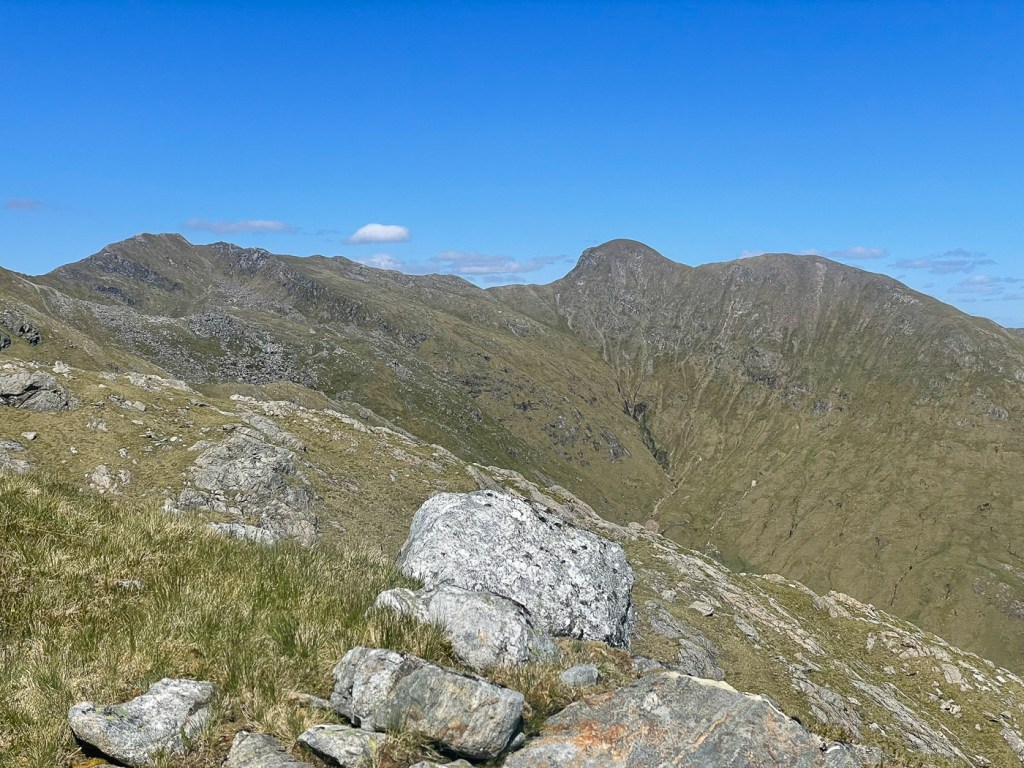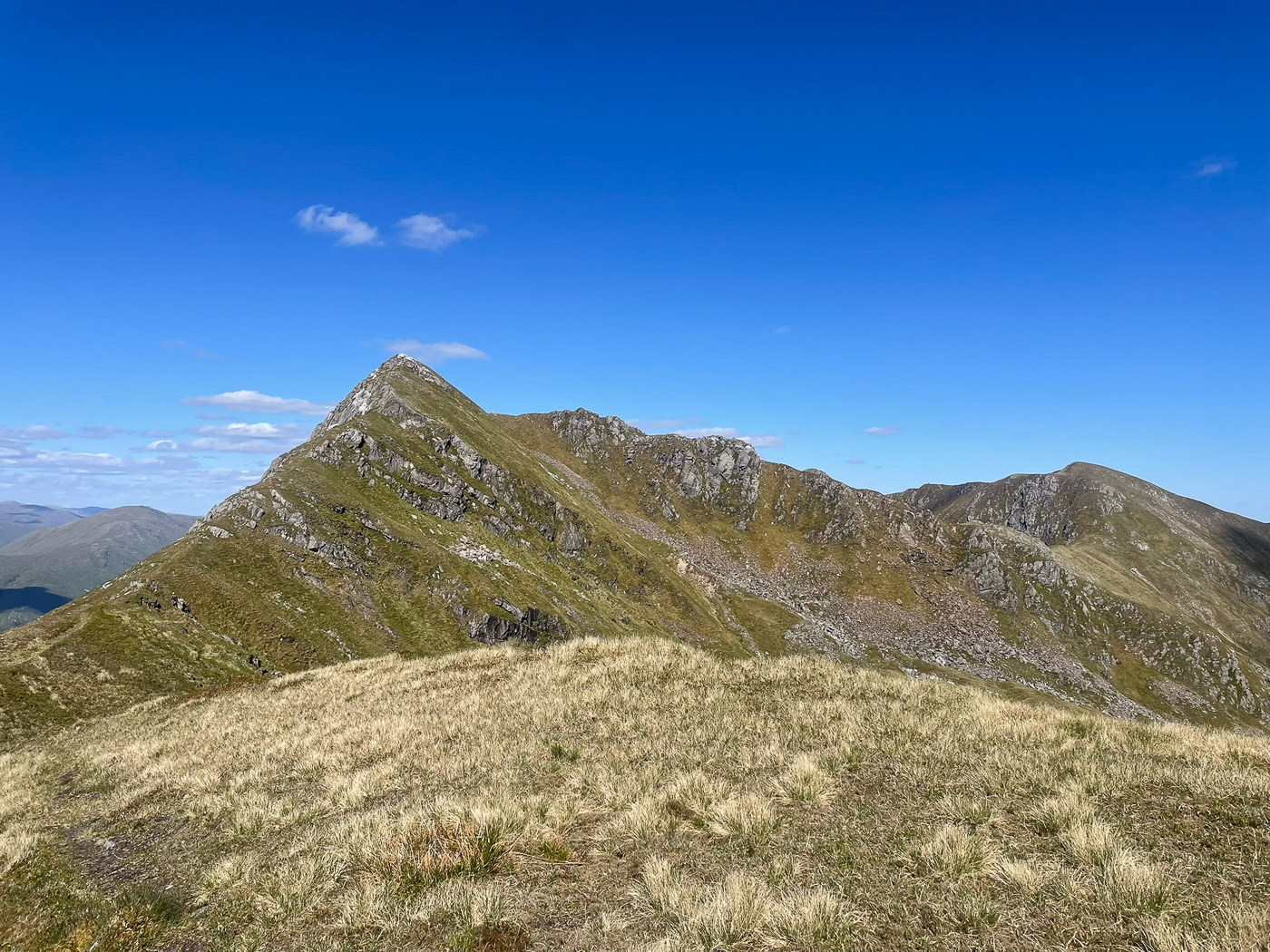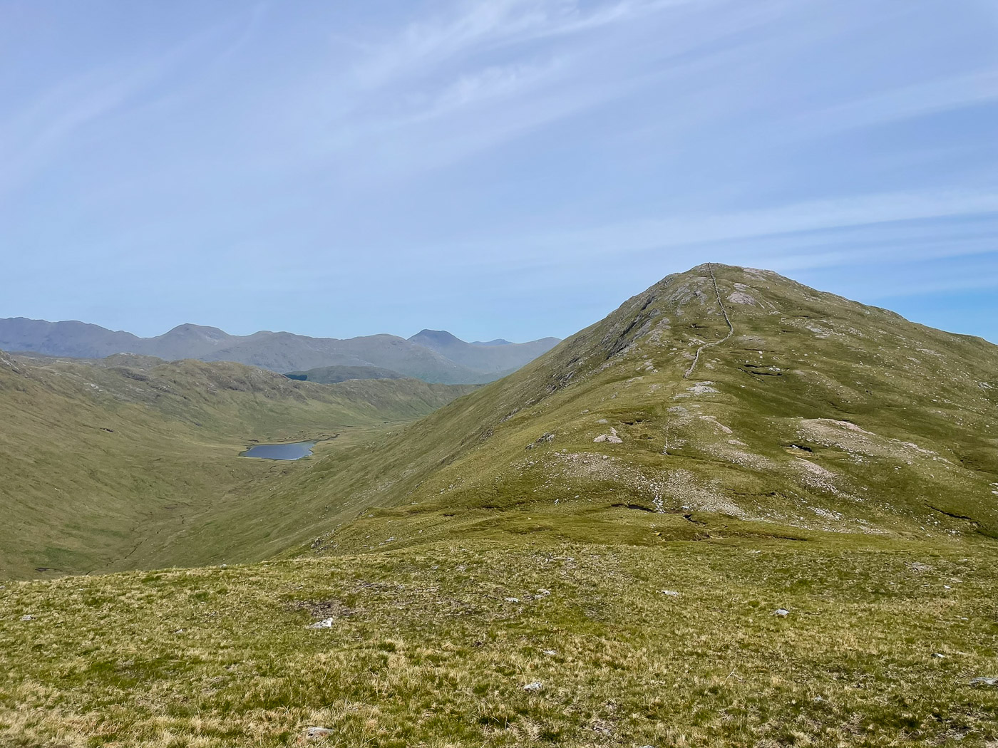 It was a bit of a wound licking week after my bike packing trip got unexpectedly cancelled. I spent a couple of days with kenny in Mallaig and then thought that I should pull myself together and do something. I had all the bike packing gear with me so decided on a wee trip up gleann Dubh lighe. there was a bothy if it got midgey and two fine hills either side of the glen. I set off not too early but with enough time to go up streap first and then make camp. Streap was a wonderful ridge and a bit day. When i got back to the bike I had no energy left to get back to the bothy luckily there was a breeze and so no midge. I put up the tent ate and slept. I wasn’t sure if I would have another hill in me!!