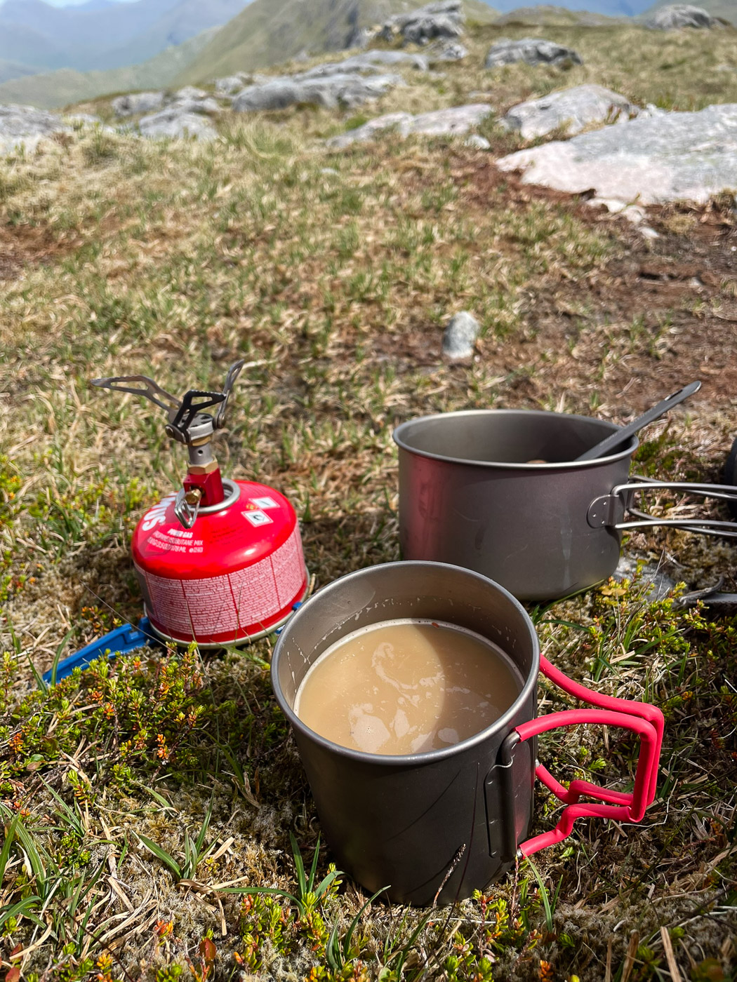 I slept well and decided to go for the second hill. I left the tent to dry as there was a lot of dew on it. It had been surprisingly cold during the night but my new mat bag and could cover combo kept me warm. I took brew kit with me and had morning coffee on the first top. It was a long but enjoyable ridge although on the way back i cut steeply down from the coll to reach an argo track back to the tent. Packed up and rode out a thoughly enjoyable solo trip.