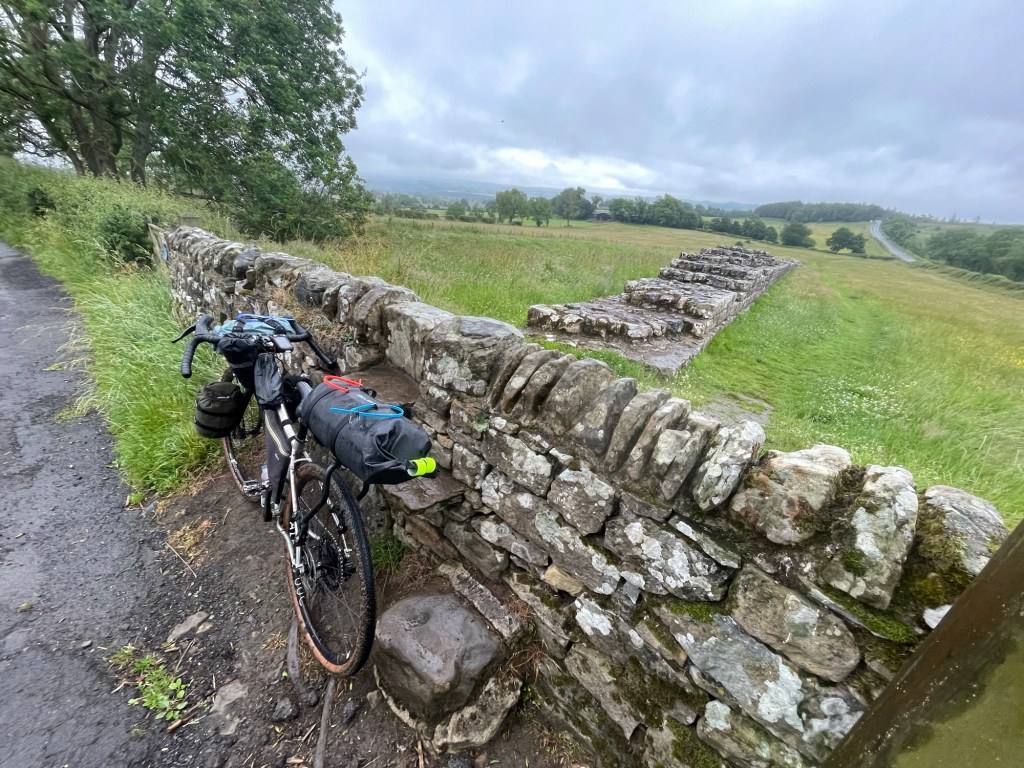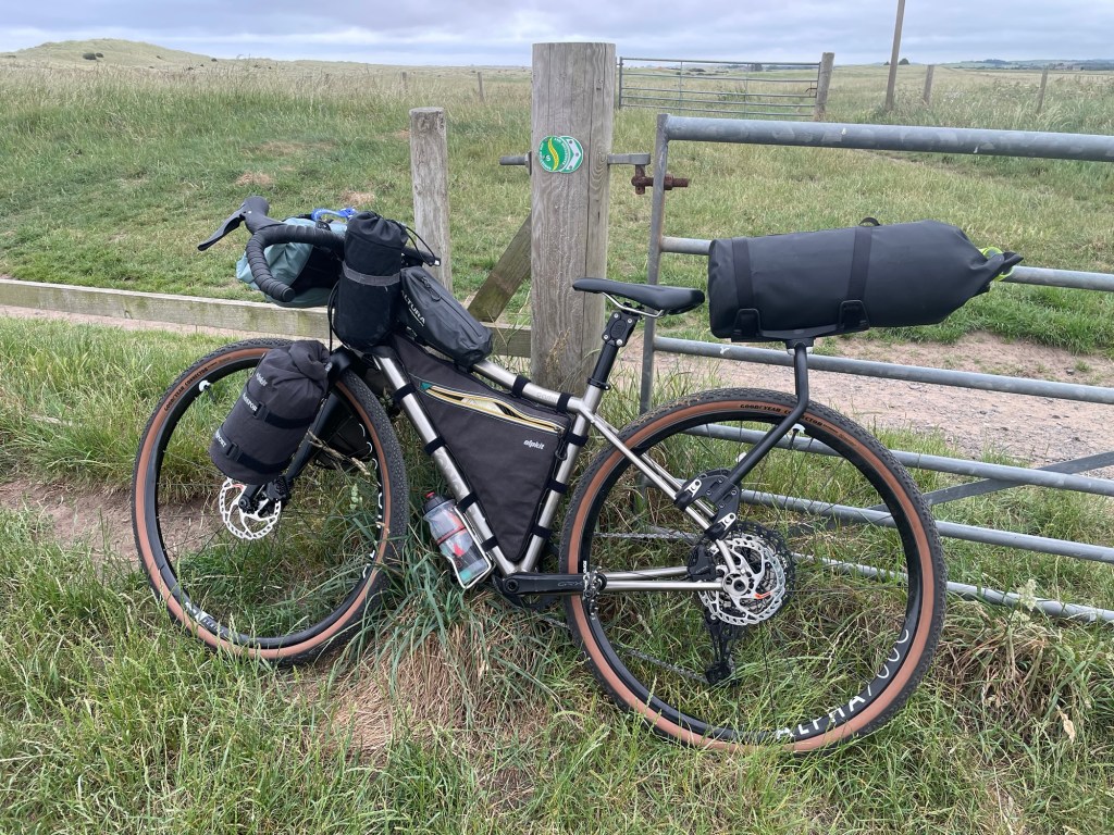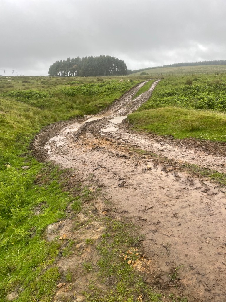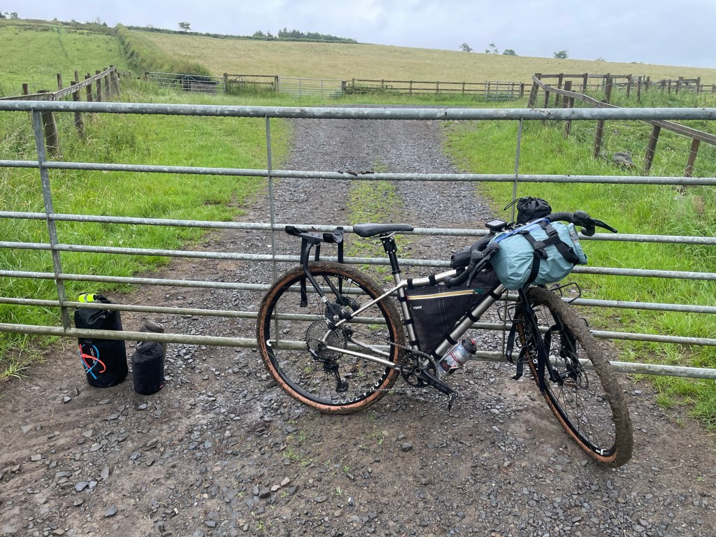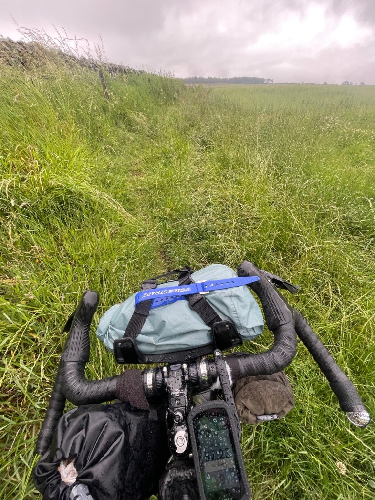 I got in an hour late so not too bad. I stopped at the Lidl to get some provisions. At first it was an ok track but a lot of gates and railway crossings. First problem was a bull in a field. I made a detour. Next was the off road tracks/bridleways. Really mostly not rideable. Locked gates. In the end I was so running out of time that I hit the sustain route 68 and made it to Bellingham for 9pm. Tent up. Indian eaten and a half in the pub. A good nights sleep. Hoping for drier weather tomorrow.