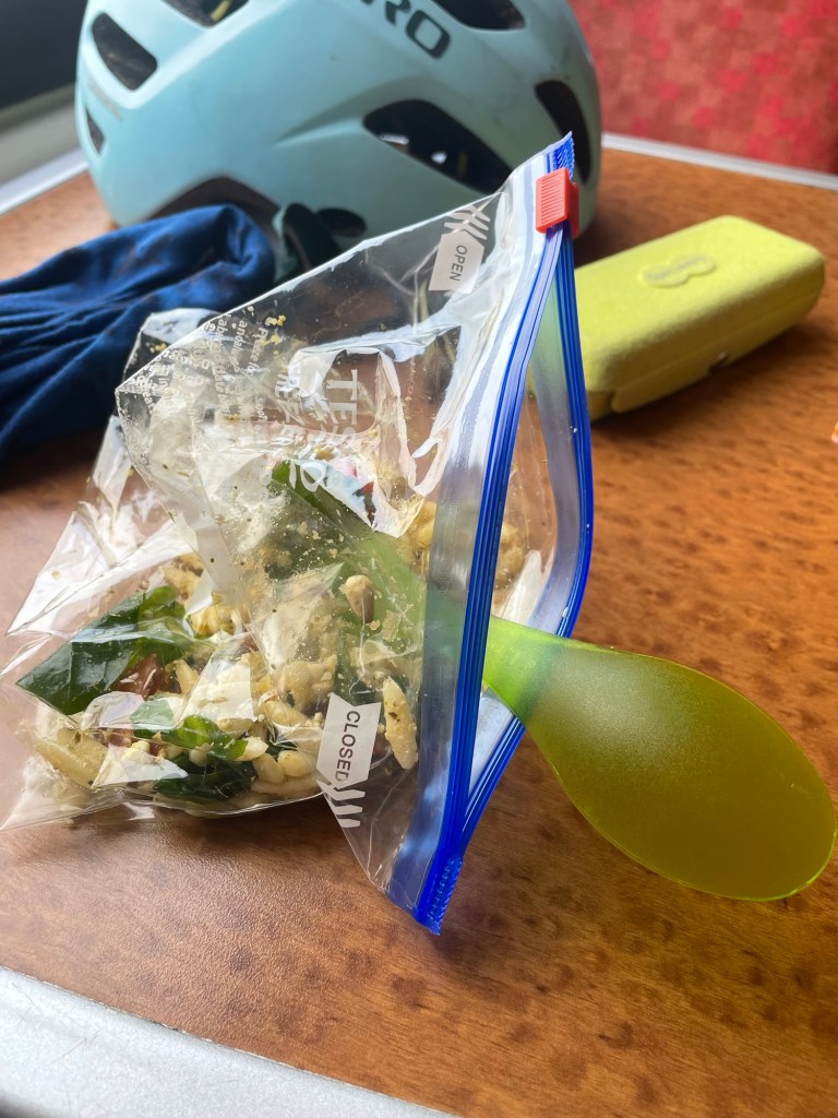 Today started well. I got up early got all sorted and set off at same time as Joe was going to work. I nice drive over. Very quiet good roads. The inn has a big car park. Not quite what I expected but friendly people. I hadn’t been going long when I had to repack my saddle bag. It was sticking into my bum! Anyway good progress was made although now I am on the train in a queue waiting to pass a broken signal. It was going to be tight making it to the campsite tonight. I may end up riding in the dark. Good job I have lights.