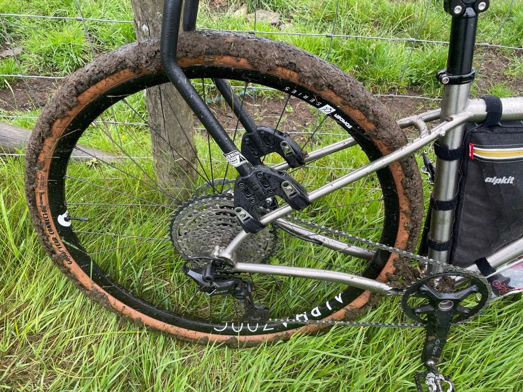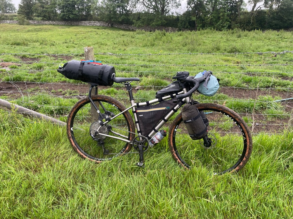 The second half of the ride was a bit more interesting! Rain started. Tracks were not always very rideable. I struggled a bit with the new technology. At the start of the route it was death by gate and level crossing. Eventually abandoned the off road route and finally made the campsite about 9pm. Tent up. Indian meal eaten and a quick drink in the Black Bull Inn. Bed. I slept pretty well.